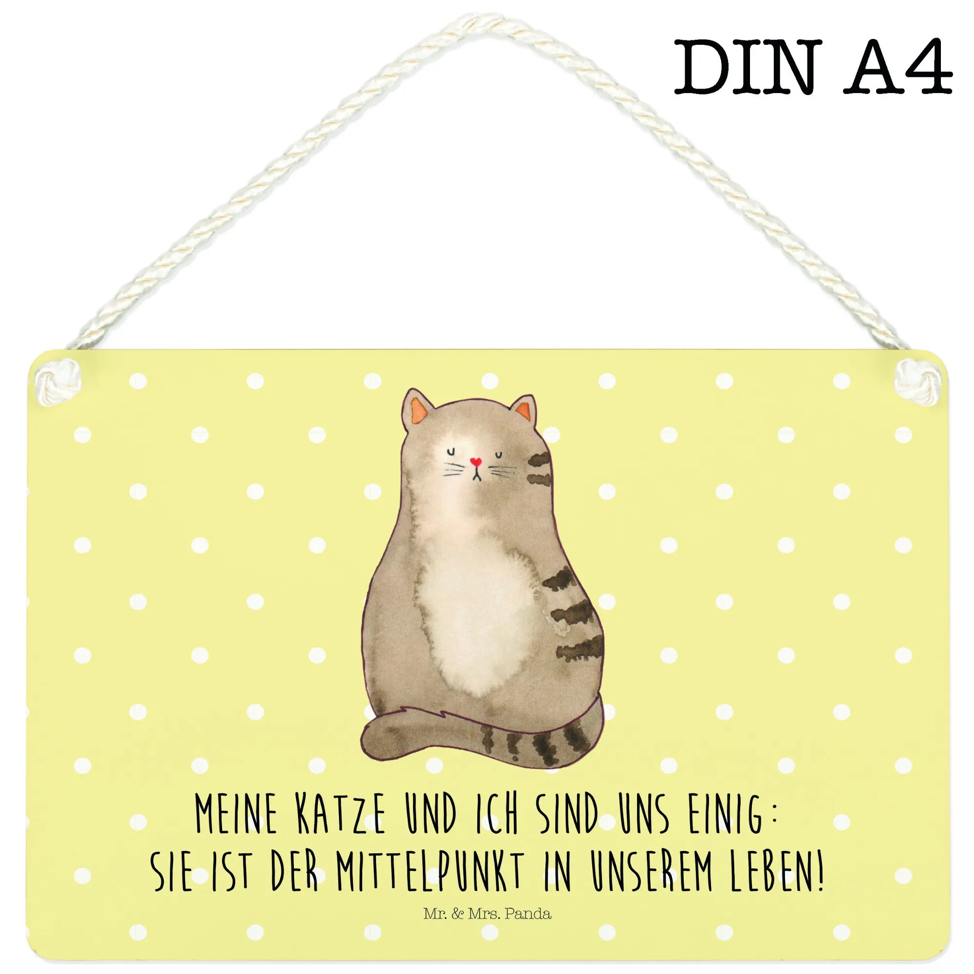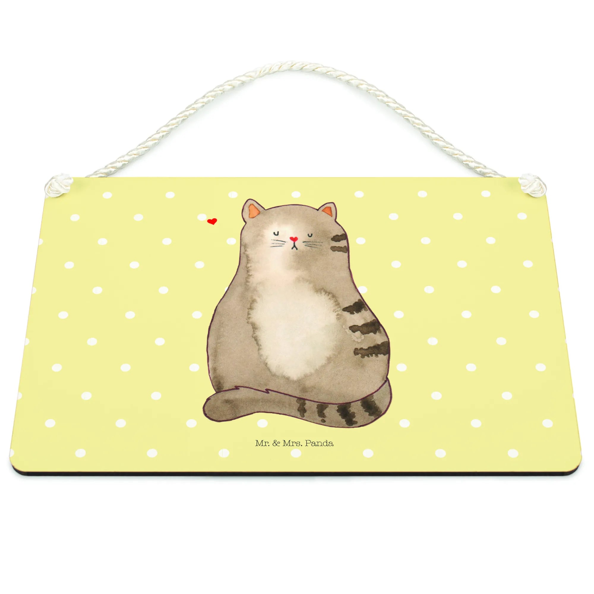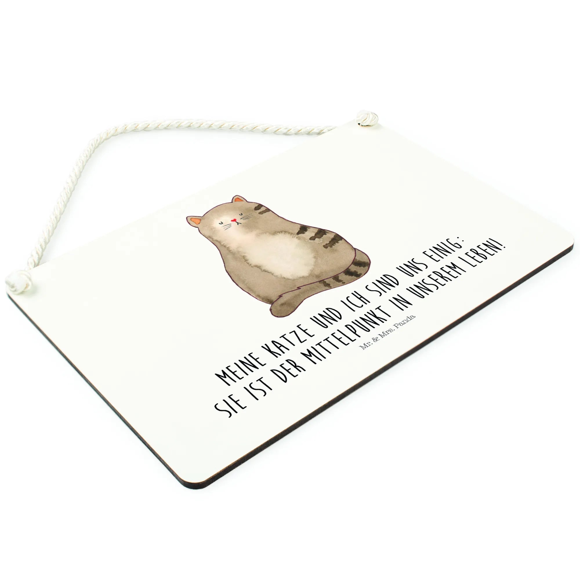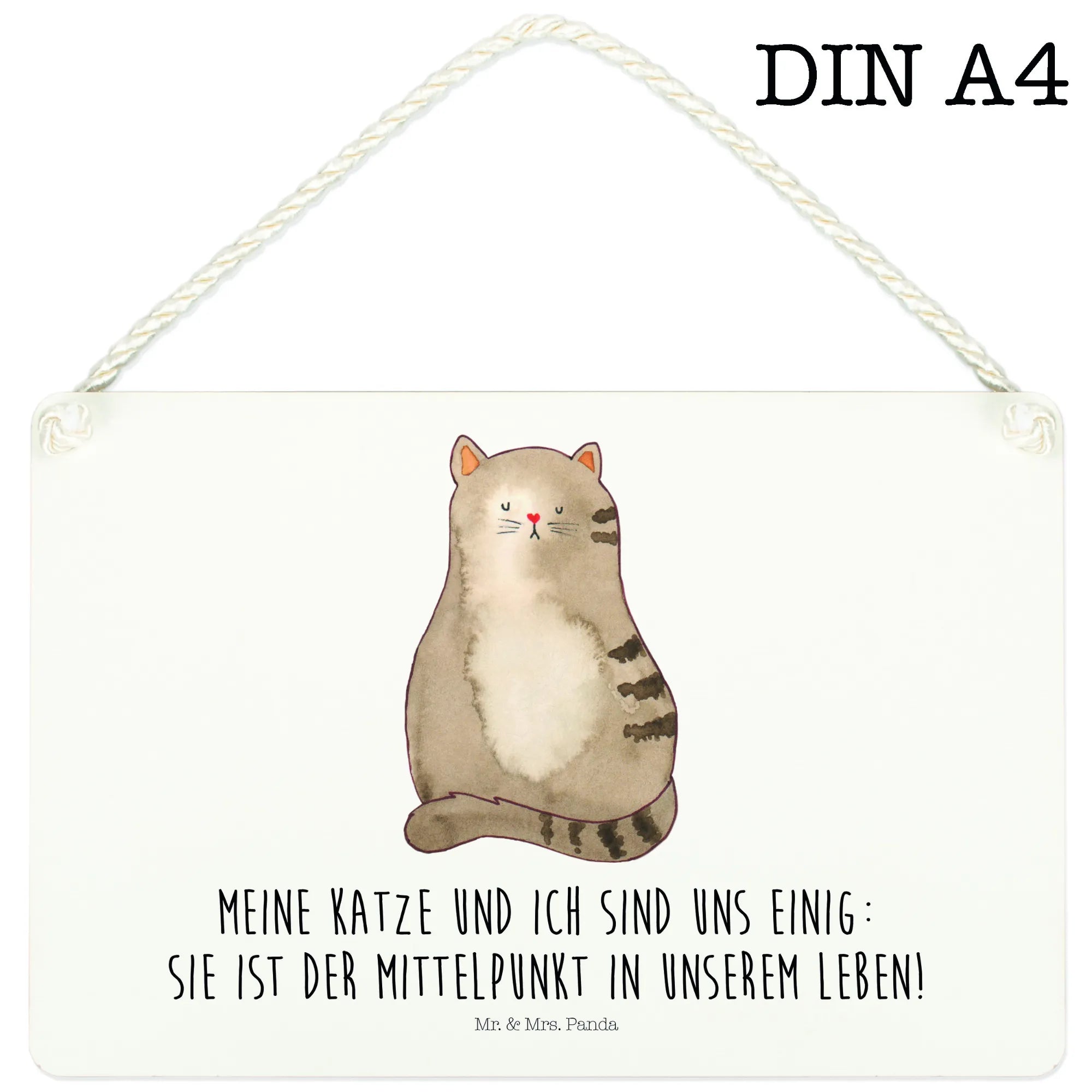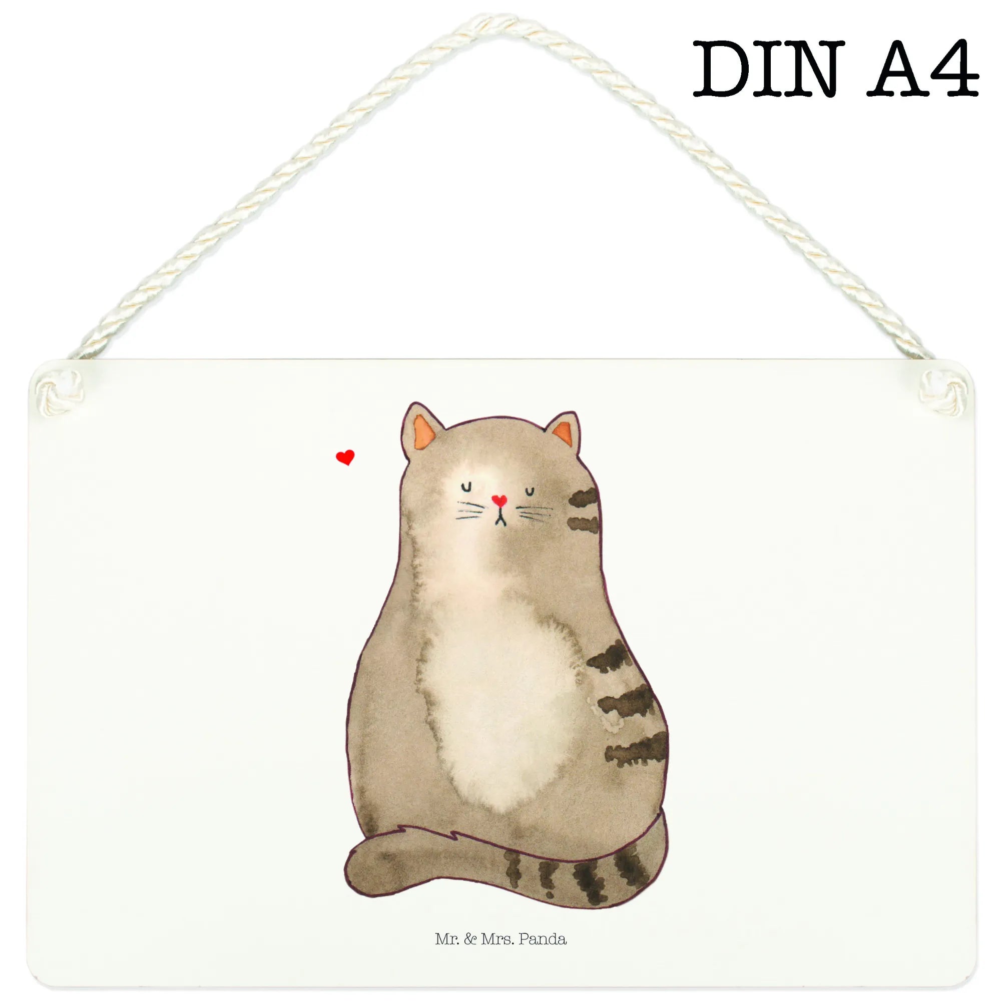Dekoracyjny znak kot siedzenie - z napisem - Biały