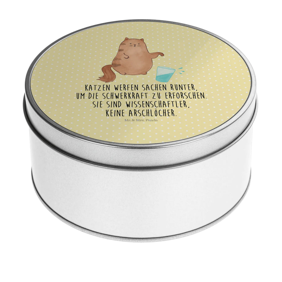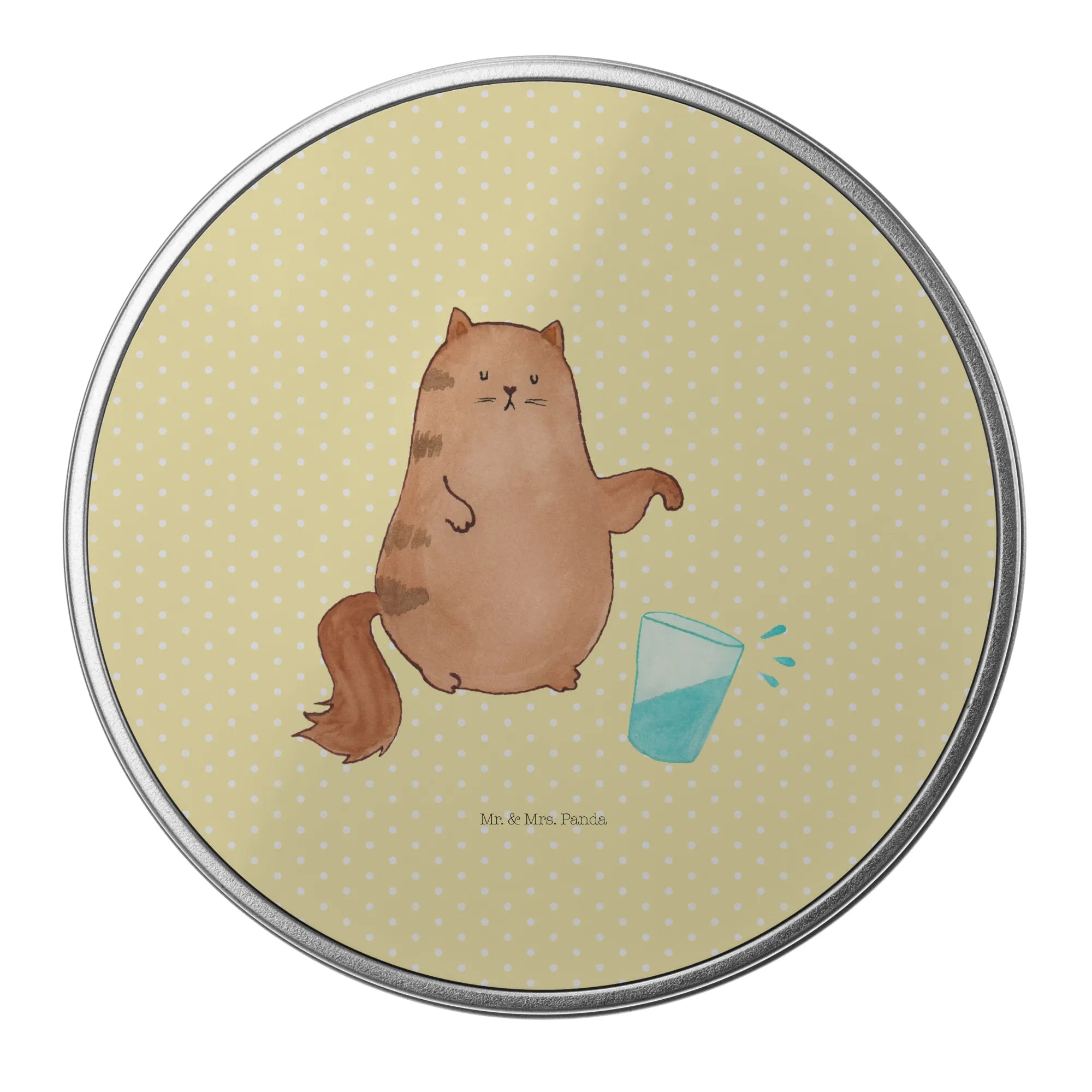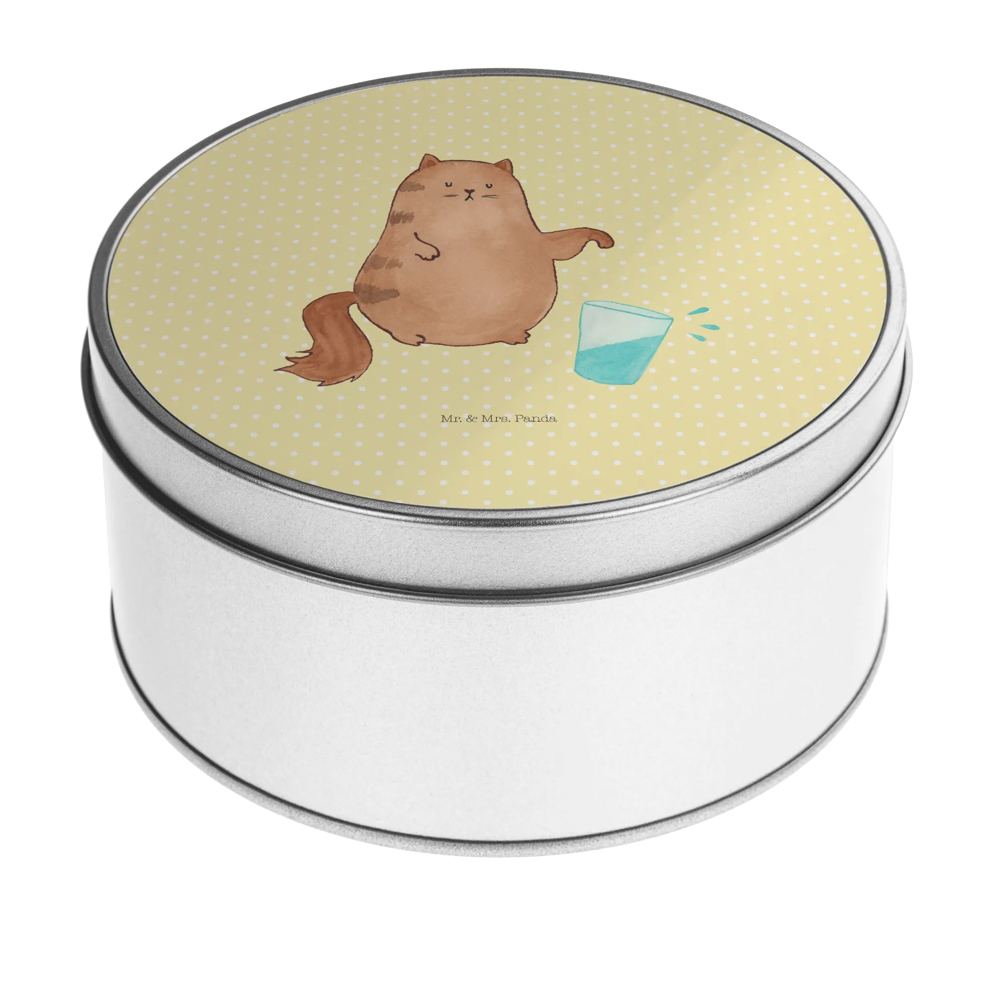 okrągła puszka z blachy kot szklanka wody - z napisem