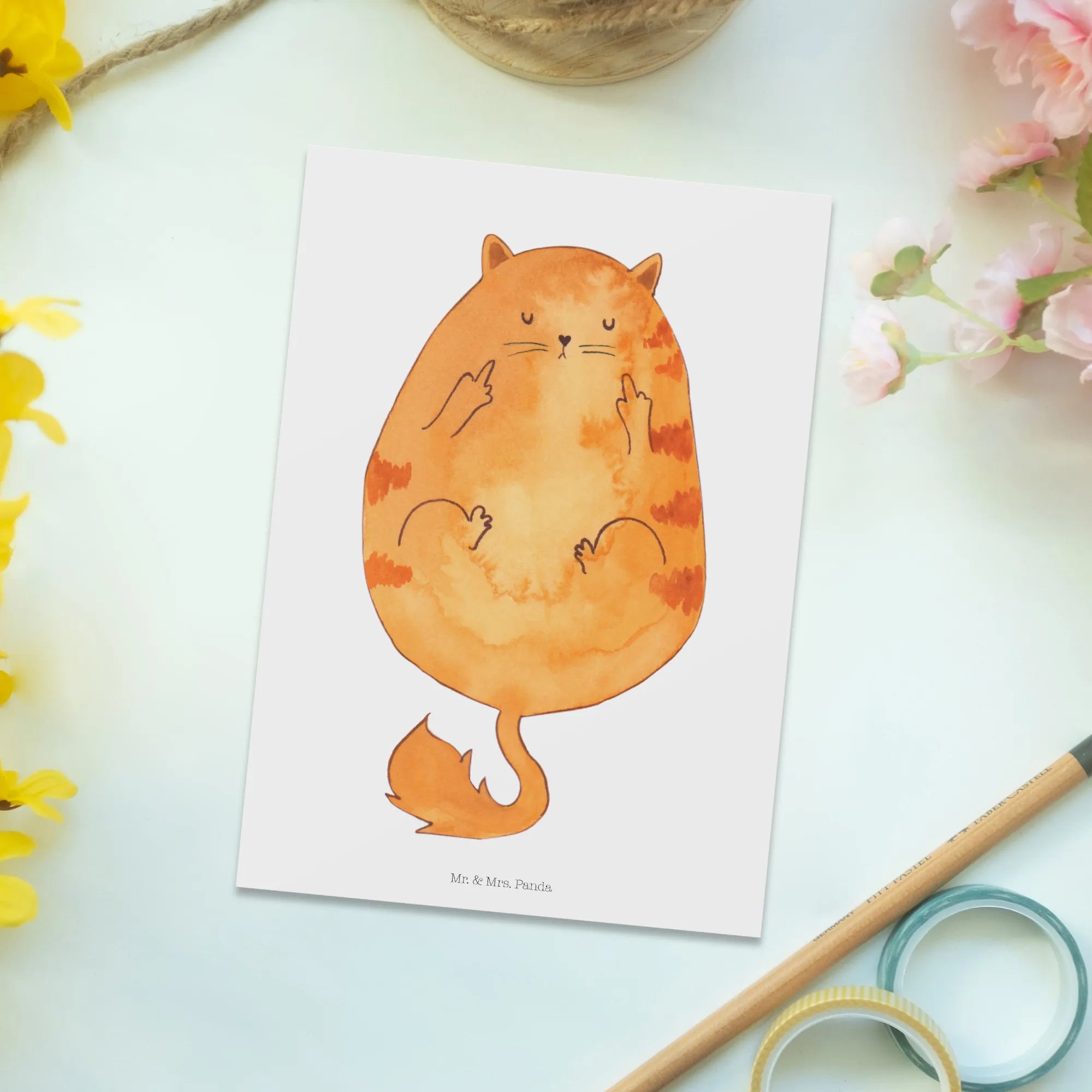 Pocztówka kot środkowy palec - mit Spruch - Weiß