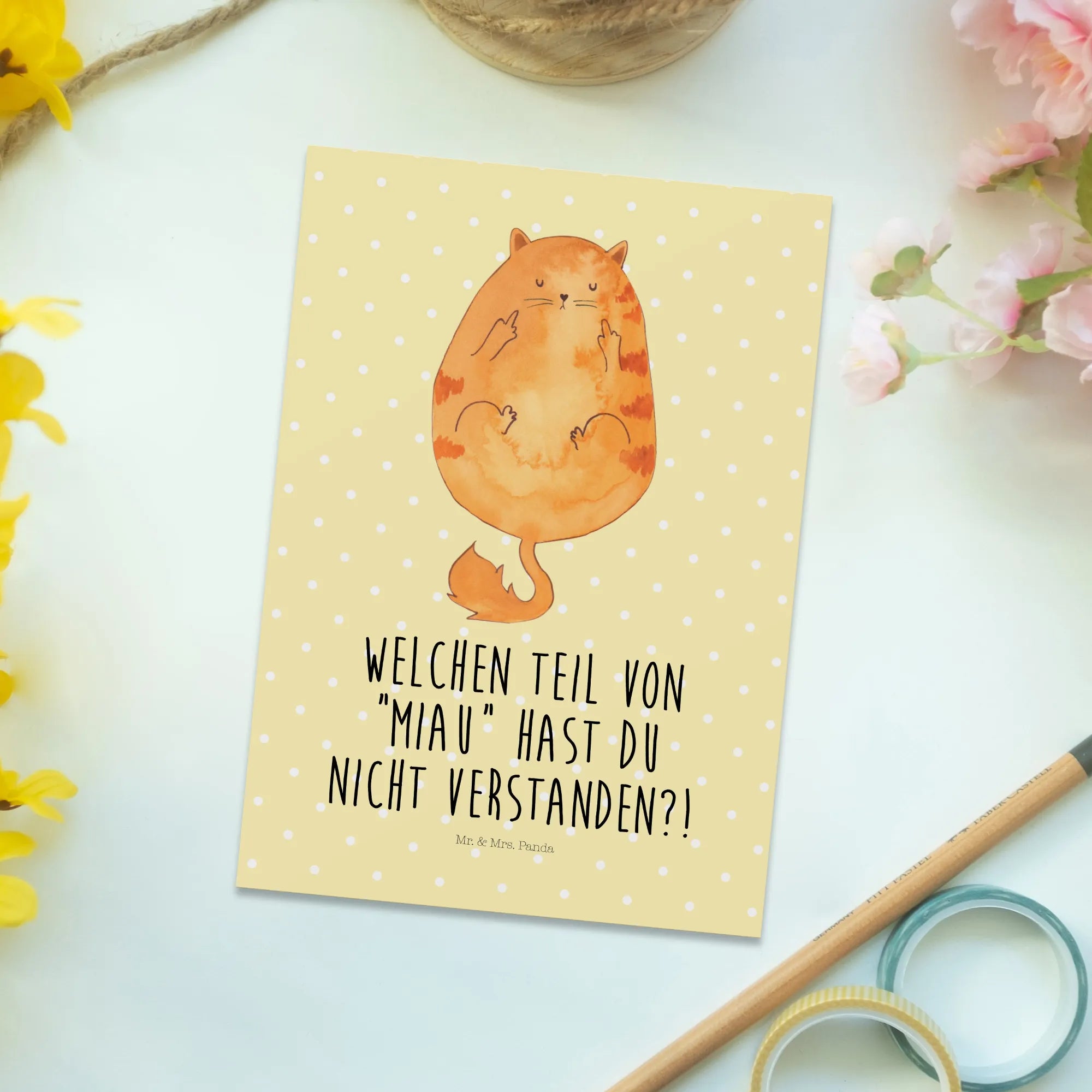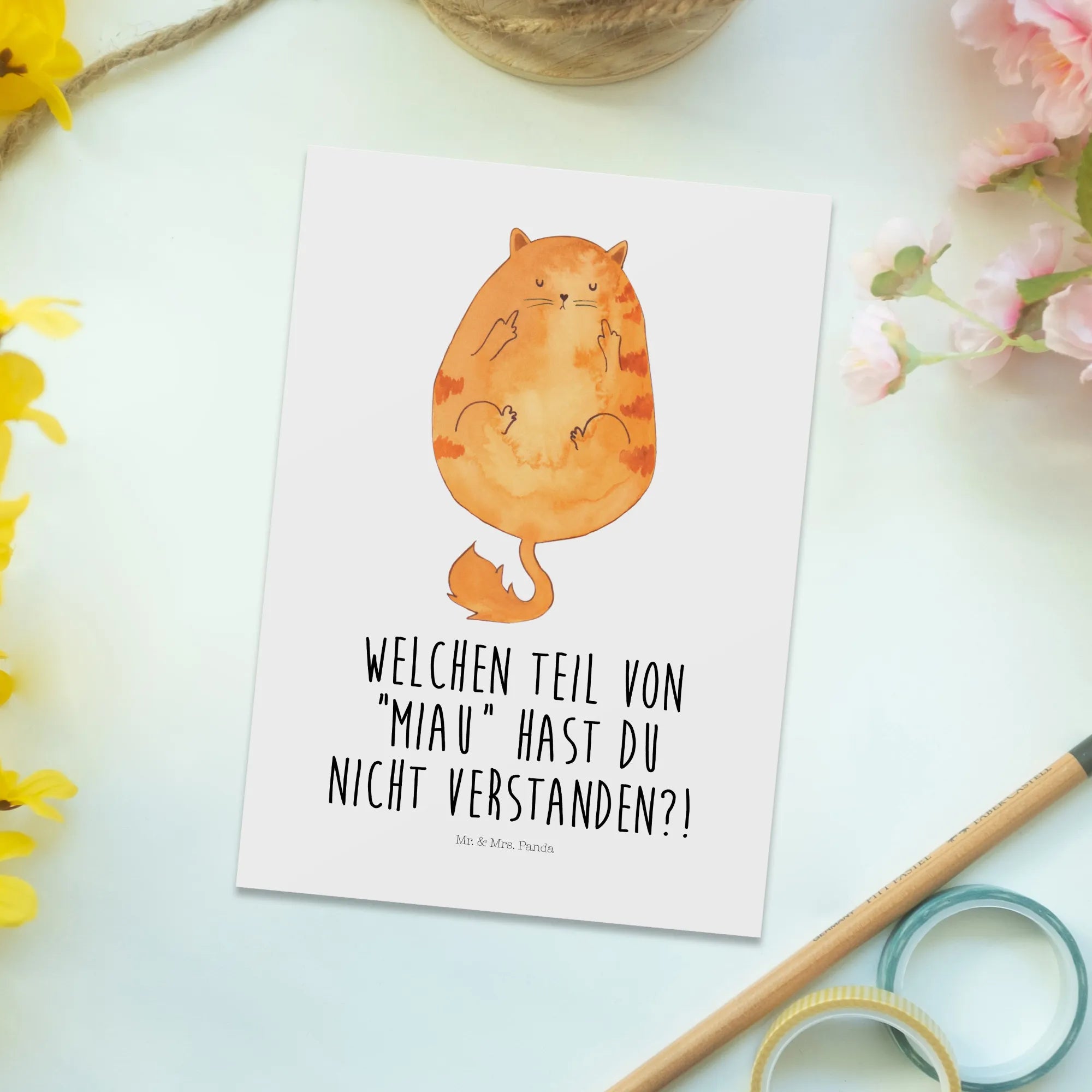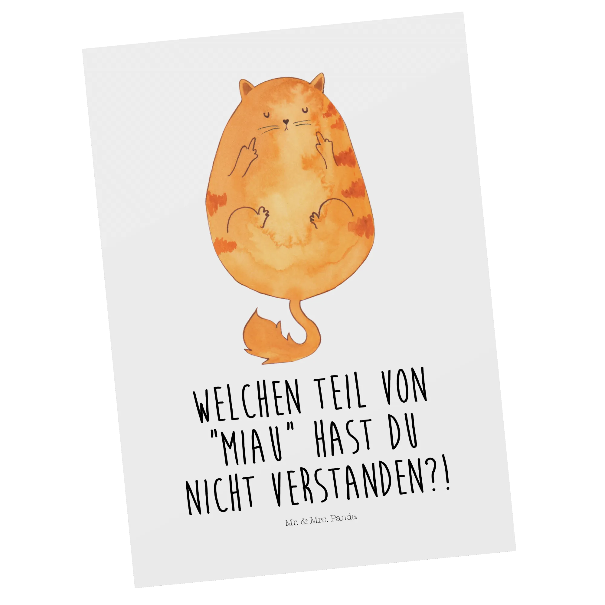 Pocztówka kot środkowy palec - bez napisu - biały