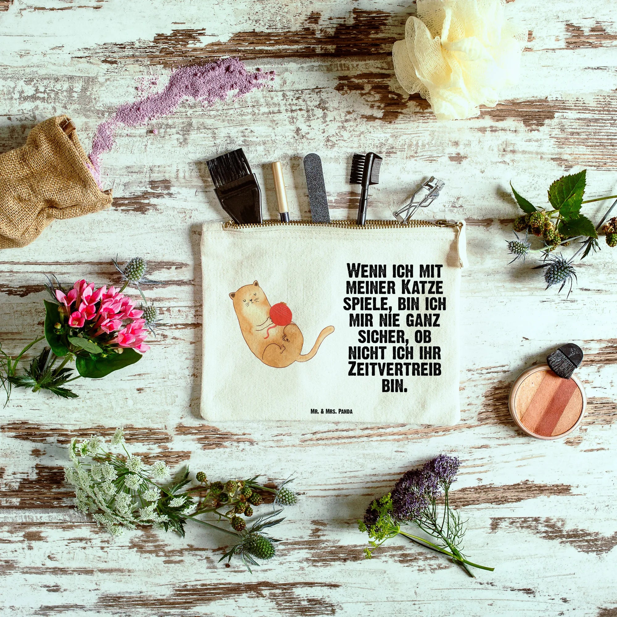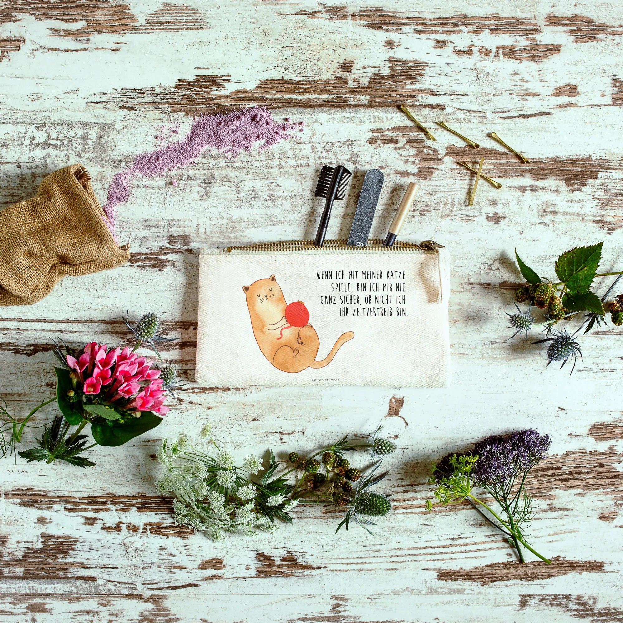 torebka na makijaż kot wełna - Größe S Klein - z napisem