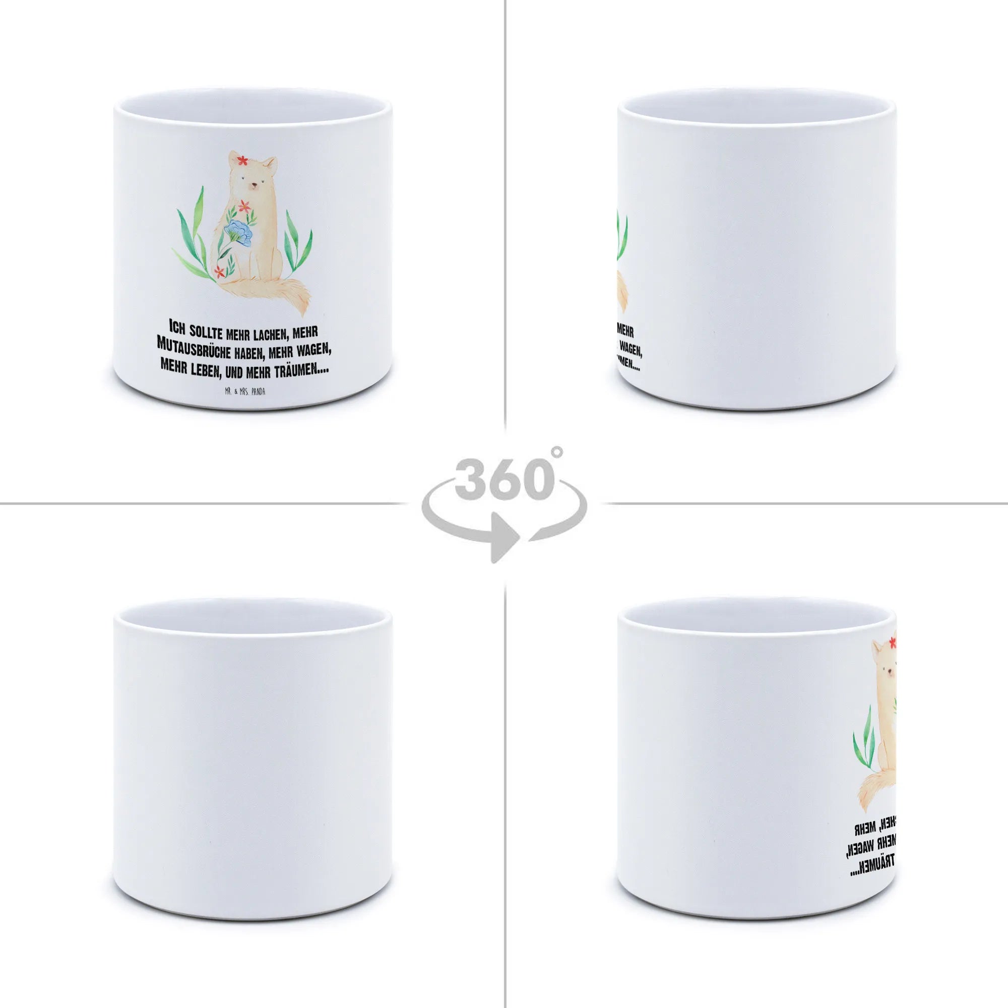 Der spezielle Spruch 'Ich sollte mehr lachen, mehr Mutausbrüche haben, mehr wagen, mehr leben, und mehr träumen...' regt zum Nachdenken an und wird Dich täglich motivieren, das Leben in vollen Zügen zu genießen. Besonders Katzenfreunde werden sich über dieses liebevolle Design freuen, das perfekt für jeden Anlass ist. Verschenke diesen Blumentopf zum Geburtstag, zu Feiertagen oder einfach als kleine Aufmerksamkeit an einen lieben Menschen!