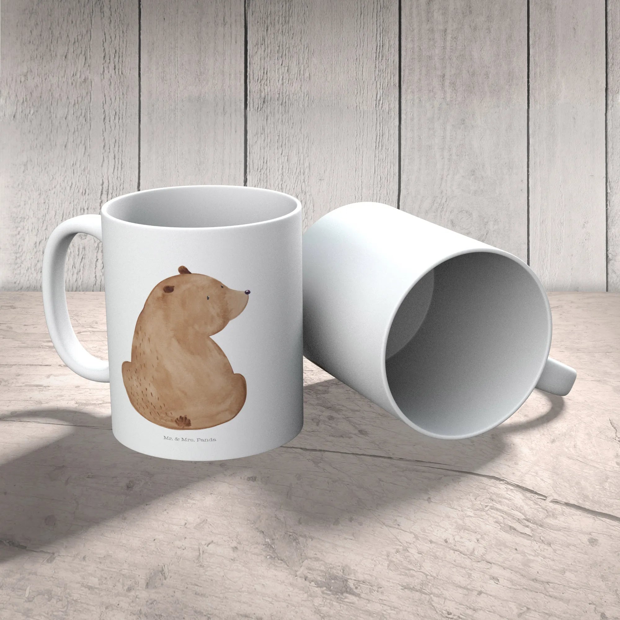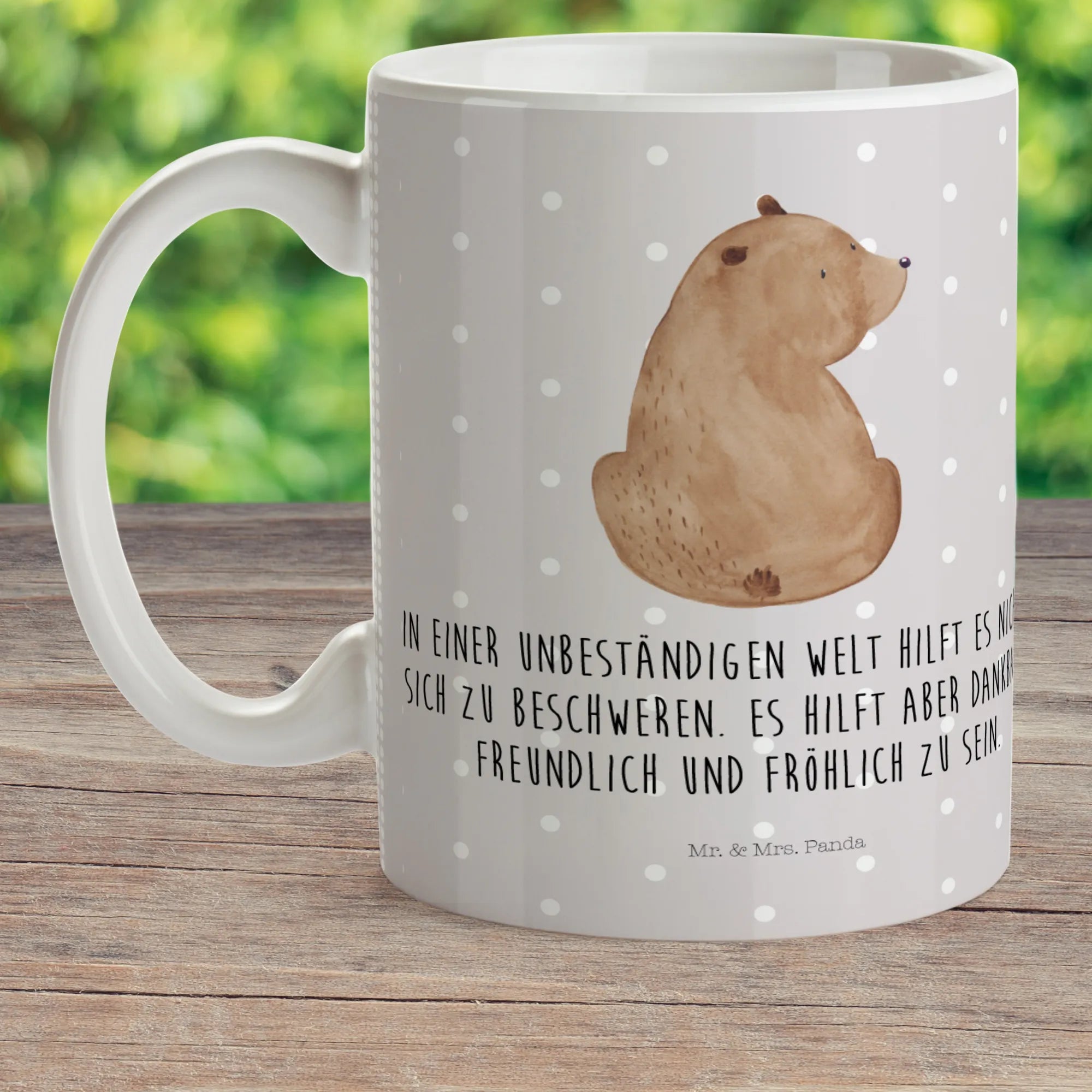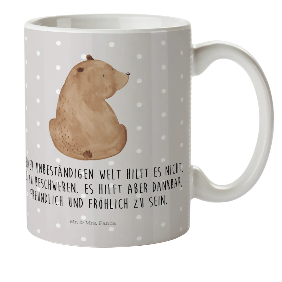 kubek dla dzieci niedźwiedź spojrzenie przez ramię - z napisem - Szary Pastel