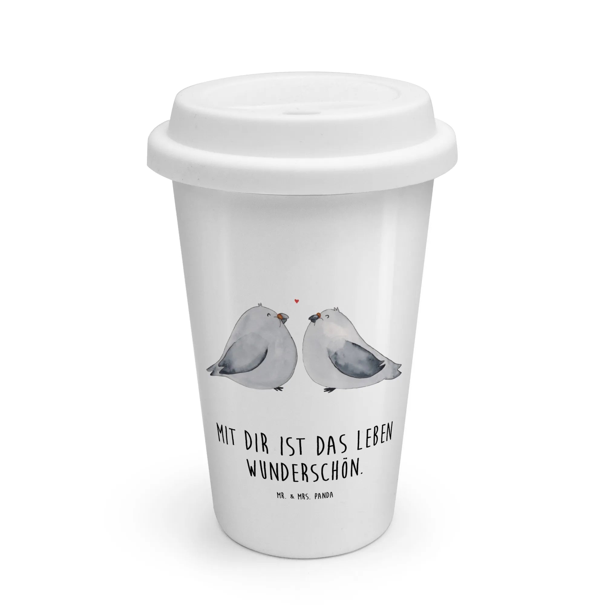 Der wunderschöne To Go Becher Turteltauben Liebe von Mr. & Mrs. Panda ist das perfekte Geschenk für alle Verliebten und Liebhaber! Ob Du Deinen Freund, Deine Freundin, Deinen Ehemann oder Deine Ehefrau überraschen möchtest – dieser hochwertige Thermobecher ist genau das Richtige, um Deine Zuneigung auszudrücken.