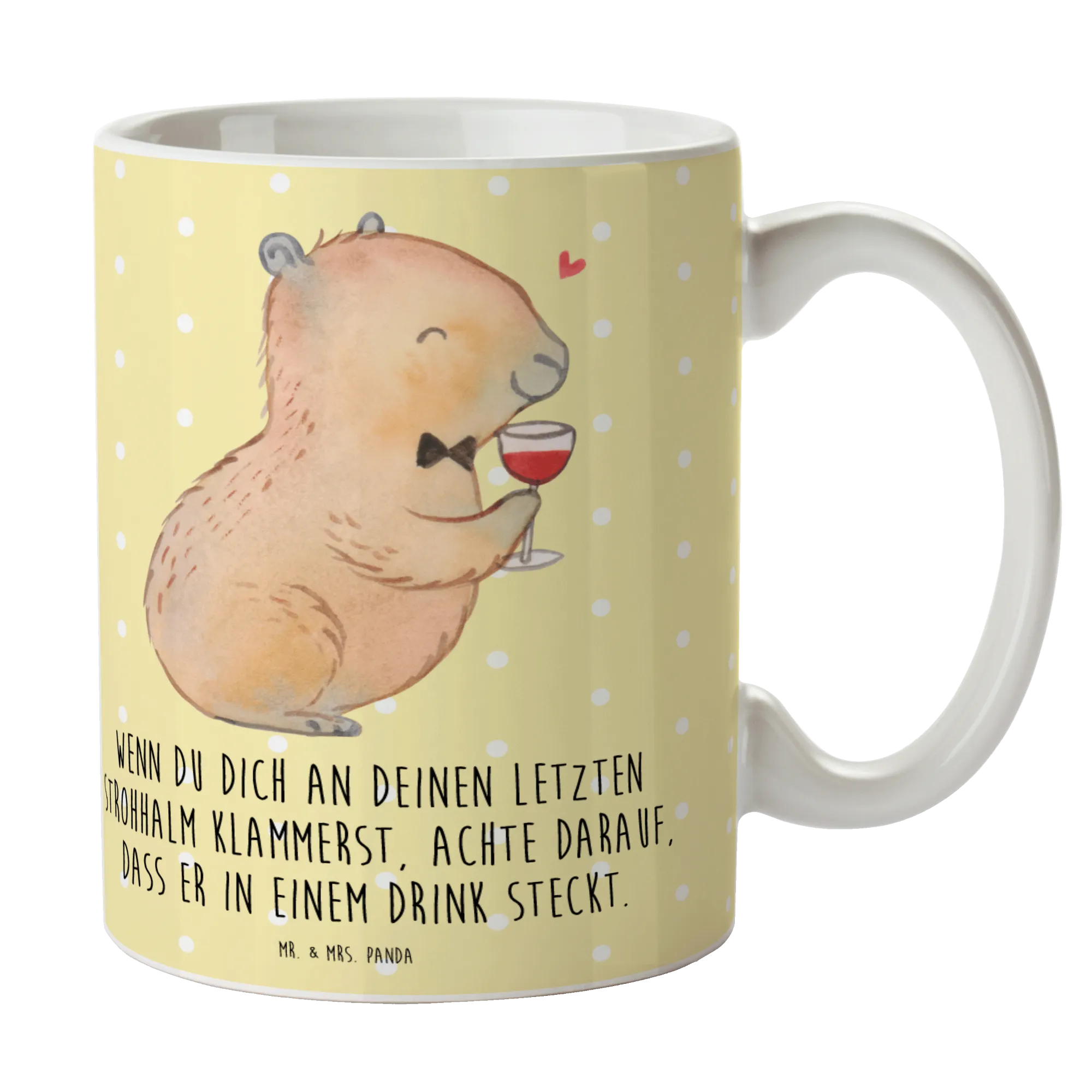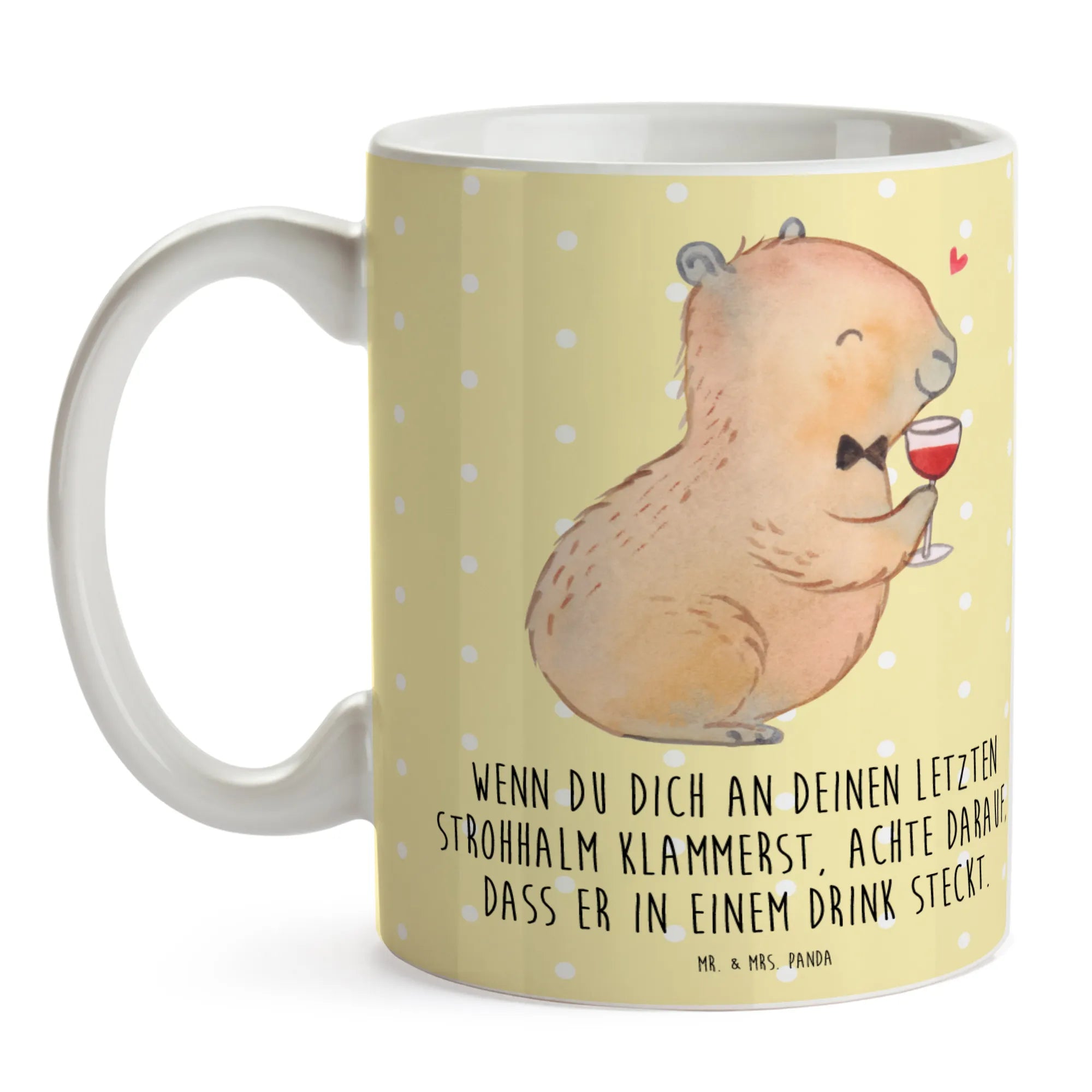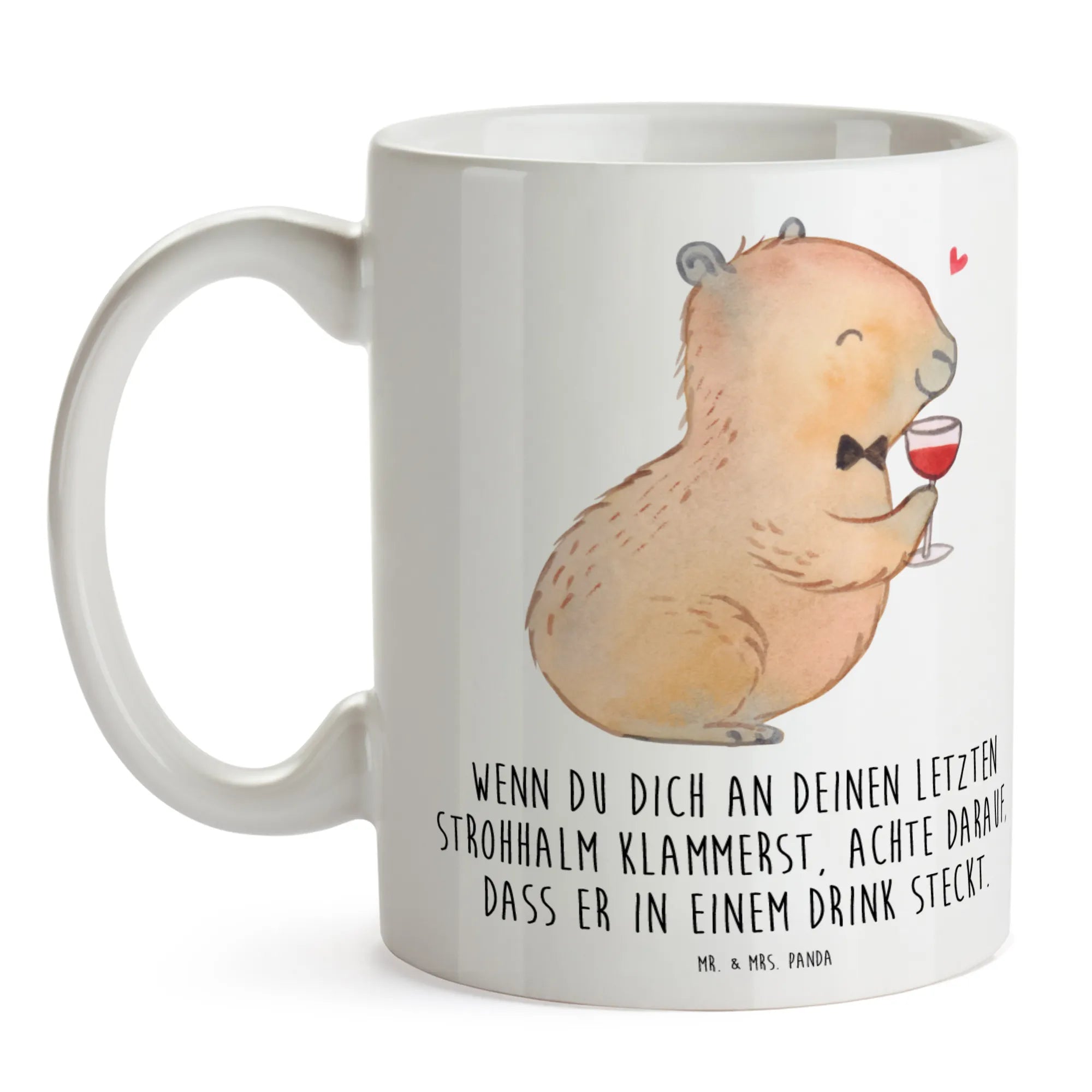 Ein Stück Freude für jeden Tag: Diese Motivtasse ist mehr als nur Kaffebecher oder Frühstückstasse – sie ist ein kleiner Glücksbringer, ein Designobjekt und ein fröhlicher Begleiter. Verschenke einen Moment Wohlgefühl mit der Capybara Wein Tasse von Mr. & Mrs. Panda.