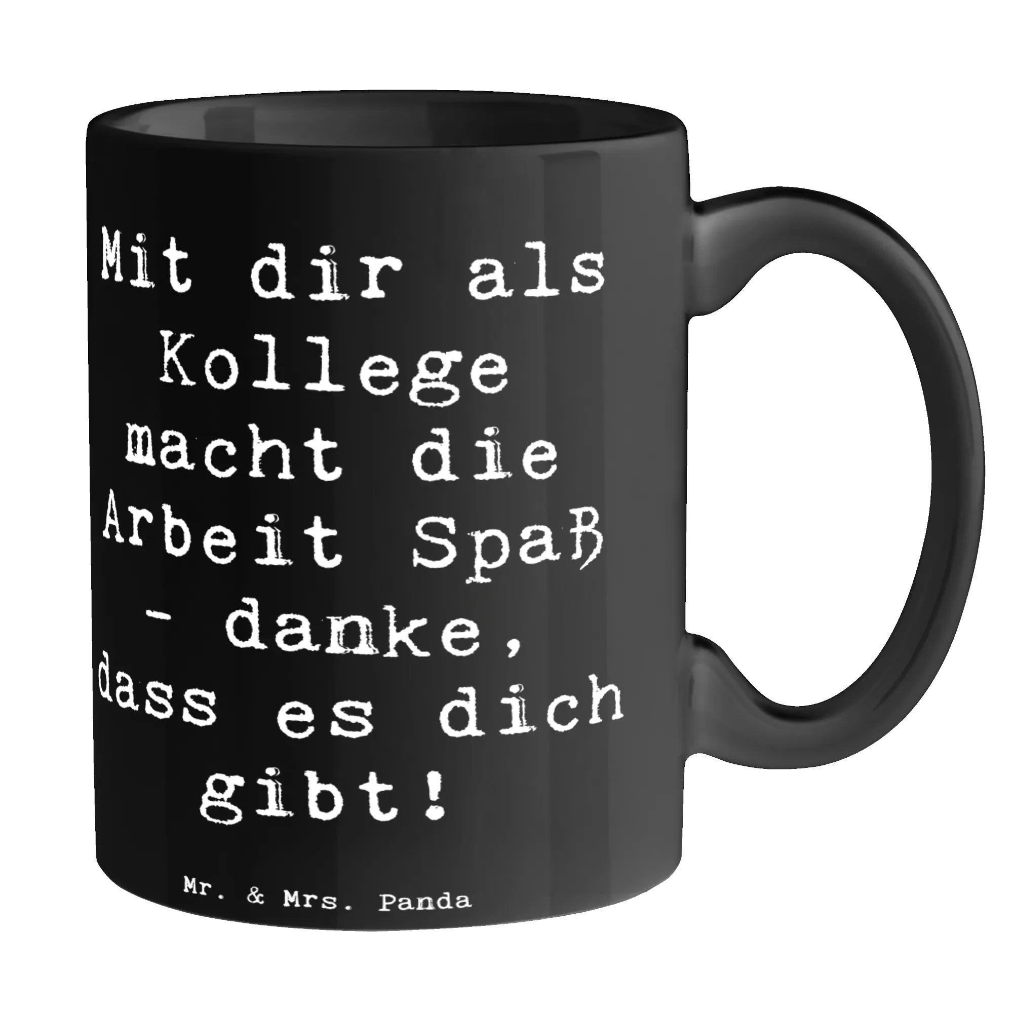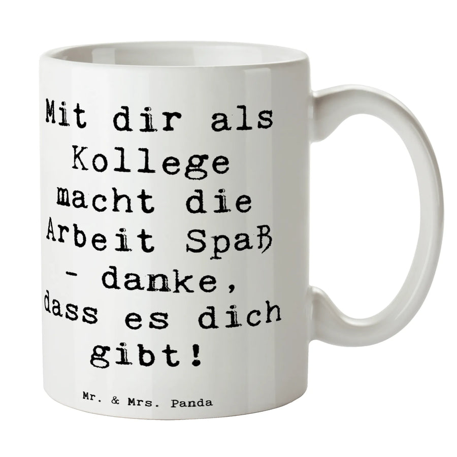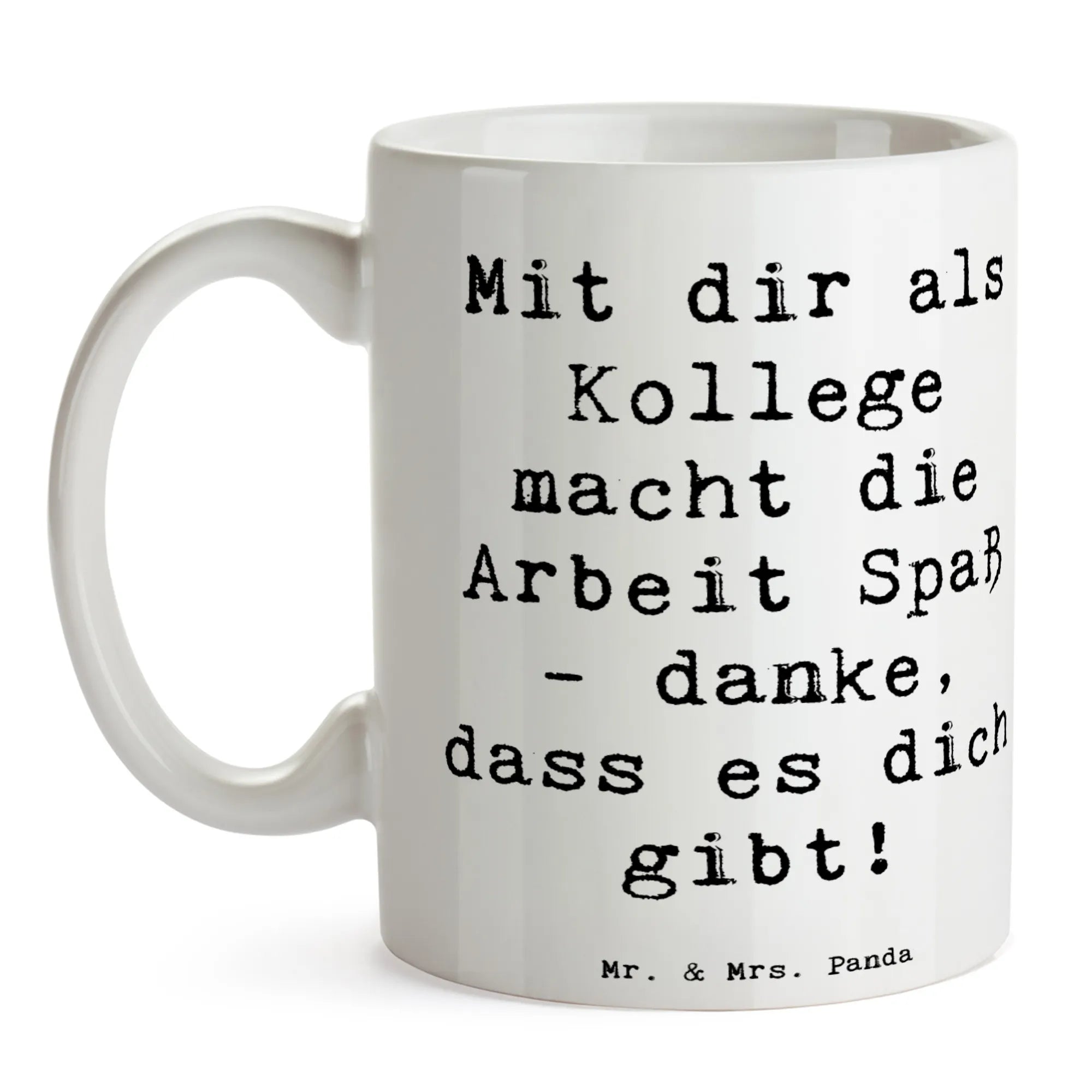 Diese wunderschöne spülmaschinenfeste Keramiktasse von Mr. & Mrs. Panda strahlt nicht nur Qualität aus, sondern vermittelt auch eine herzliche Botschaft: "Mit dir als Kollege macht die Arbeit Spaß - danke, dass es dich gibt!". Ob für den Geburtstag, als kleine Überraschung oder einfach so, um "Danke" zu sagen - diese Tasse wird garantiert für Freude sorgen!