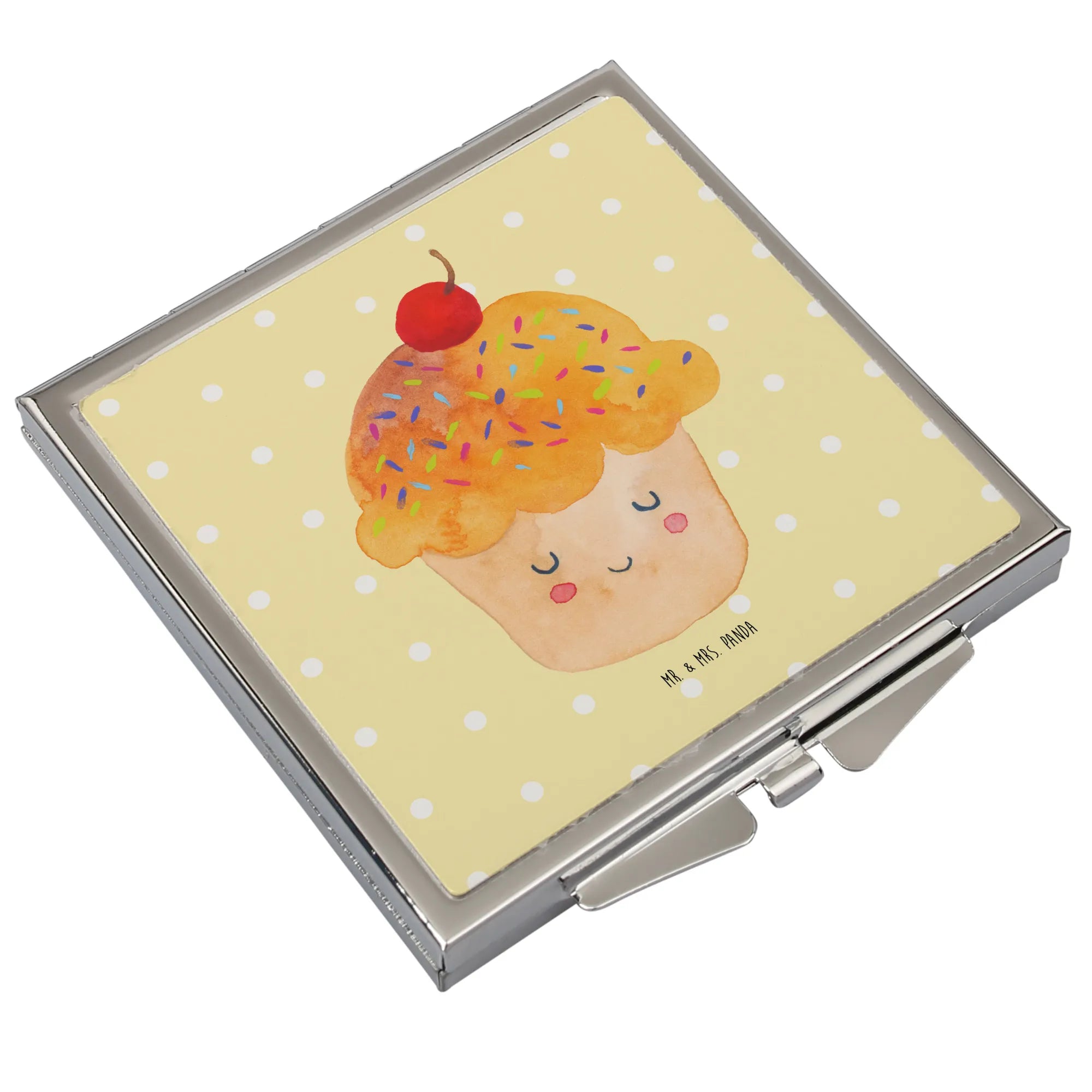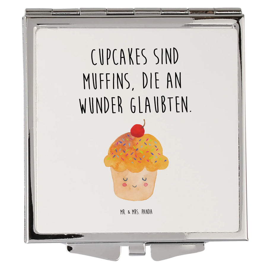Kwadratowe lusterko do torebki Babeczka - z napisem - Biały