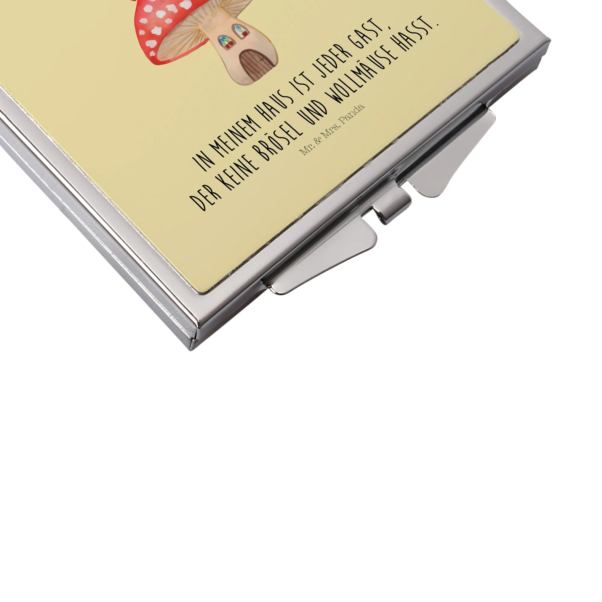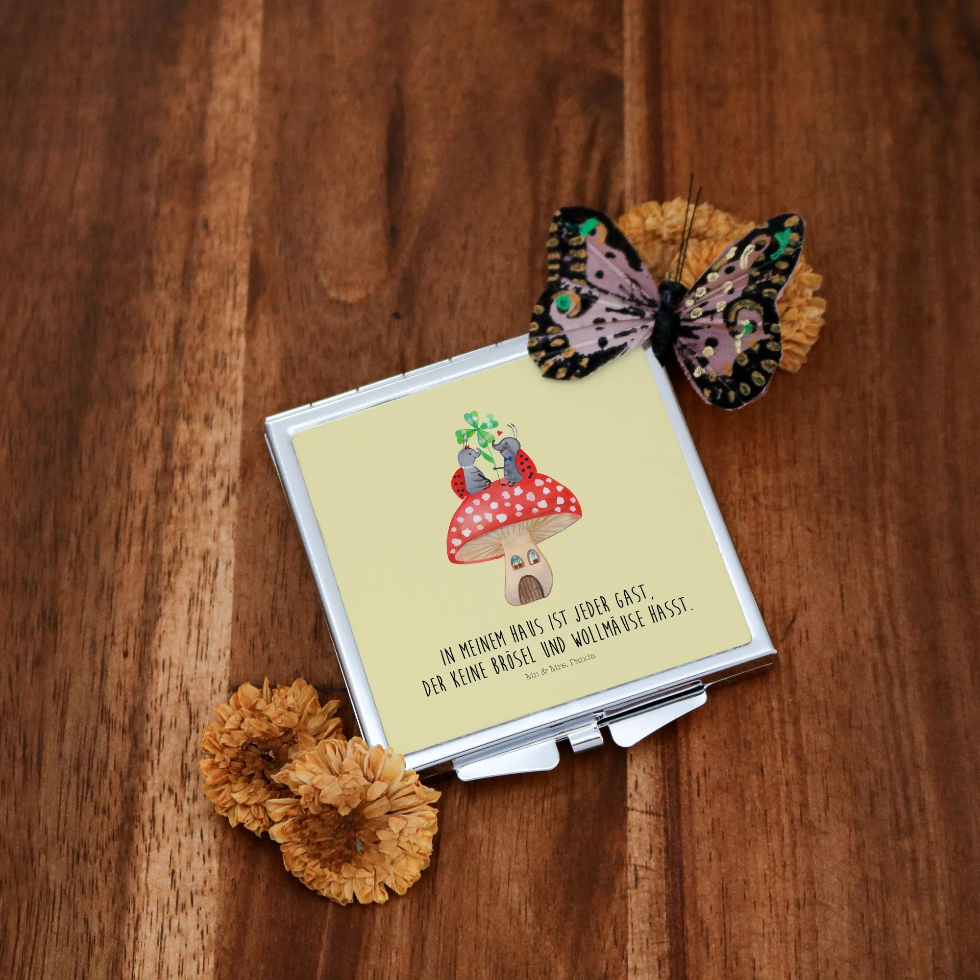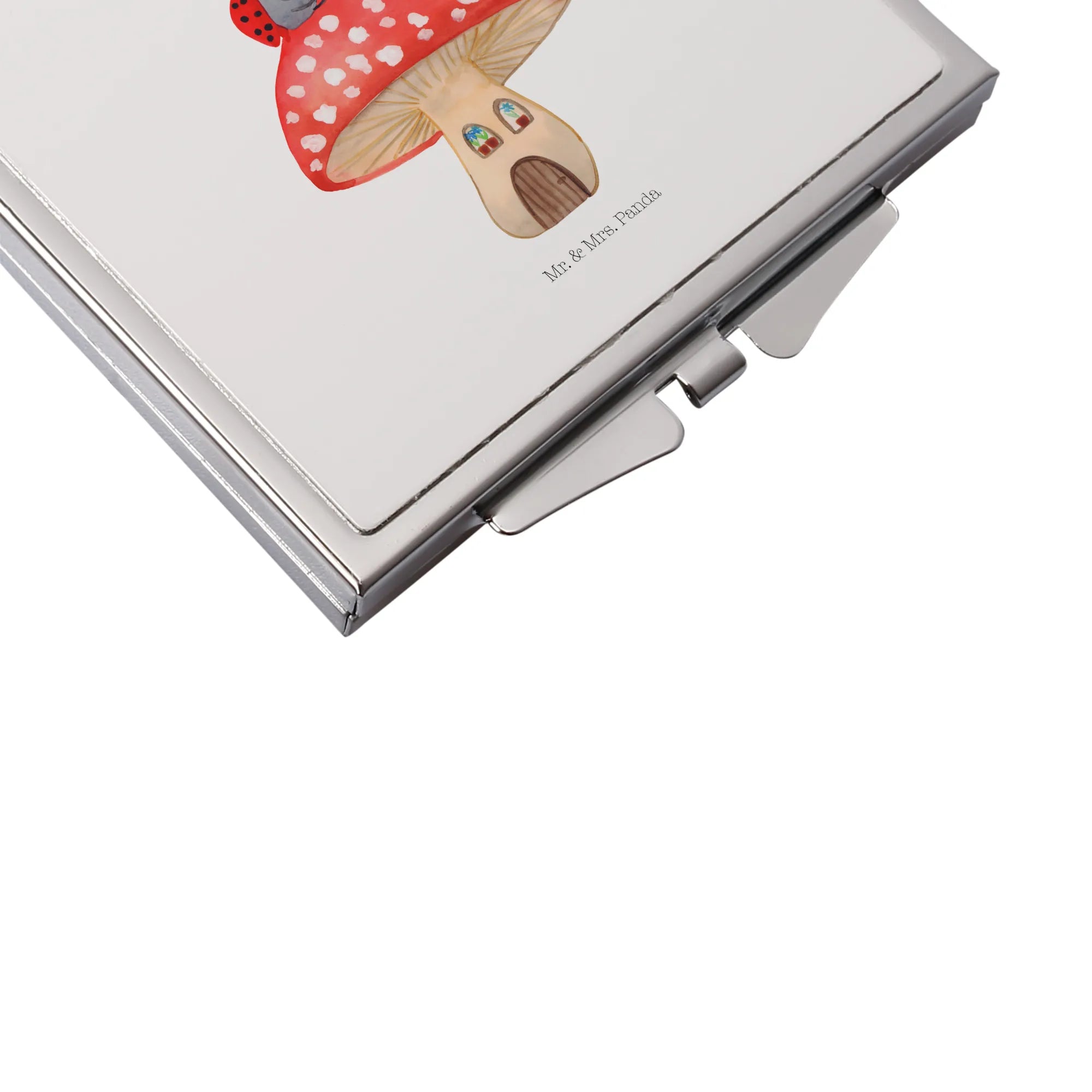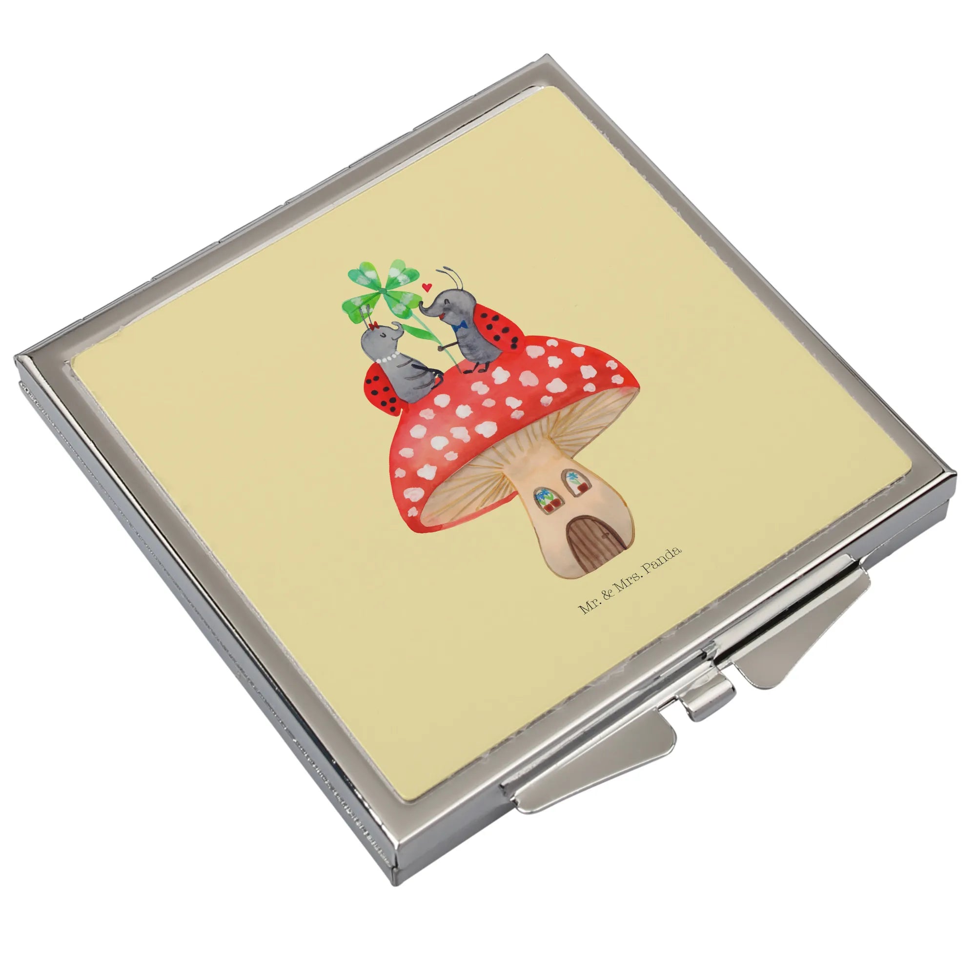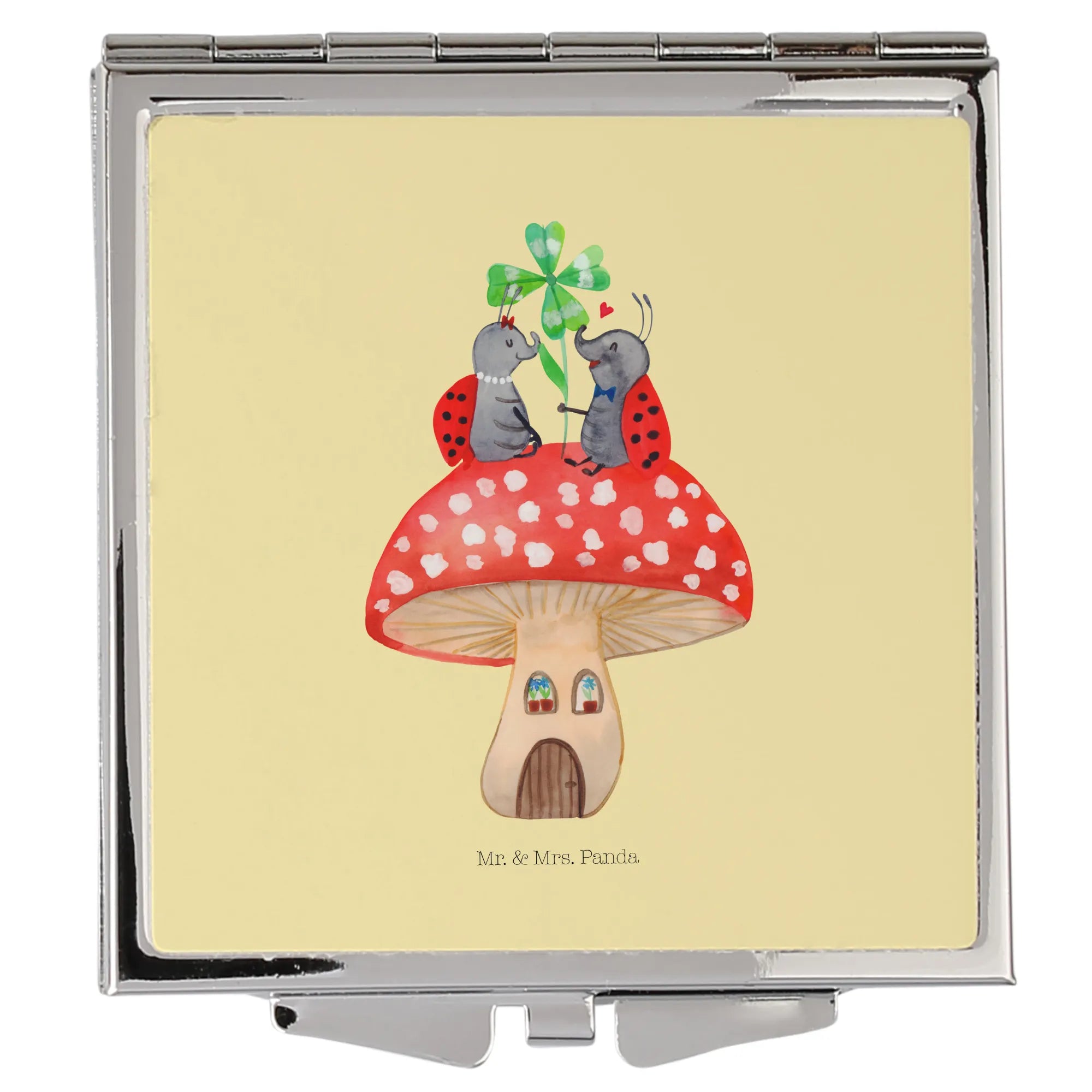 Kwadratowe lusterko do torebki biedronka Muchomor - z napisem - biały