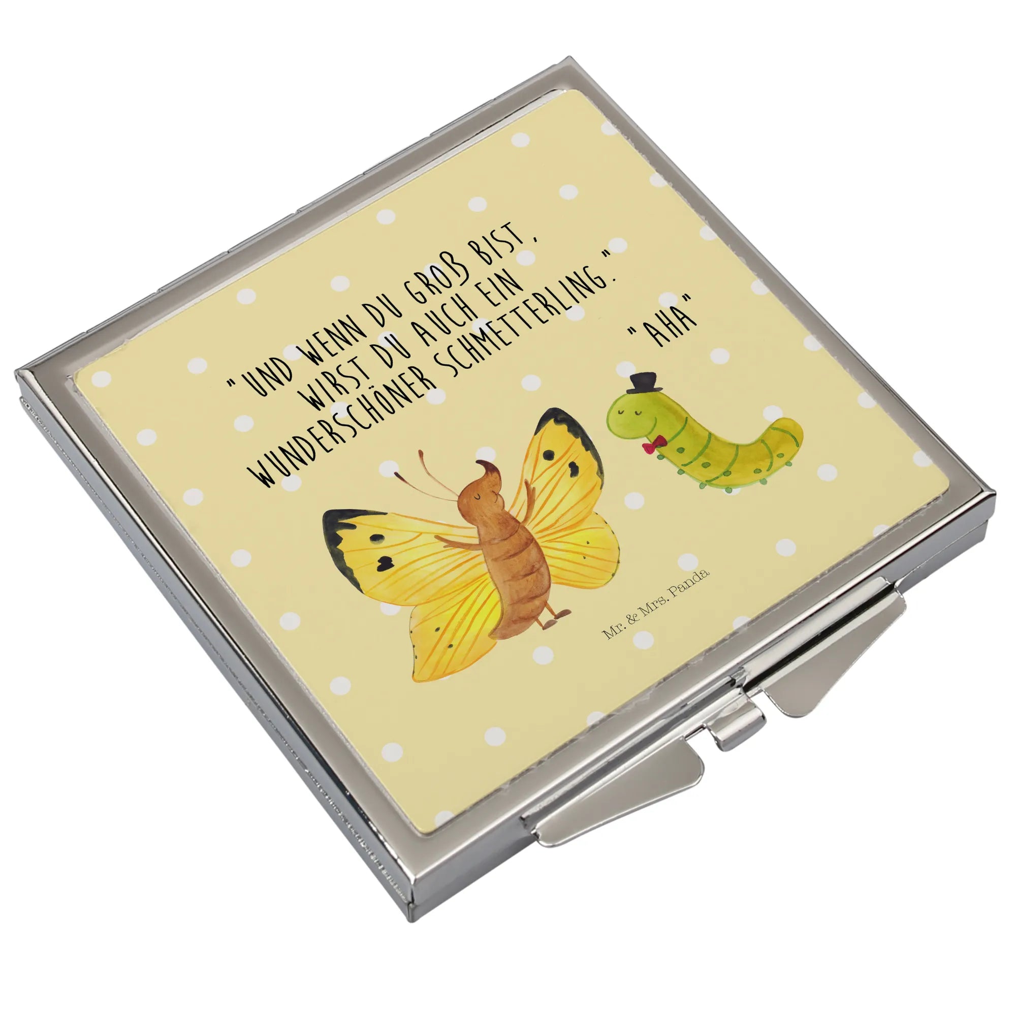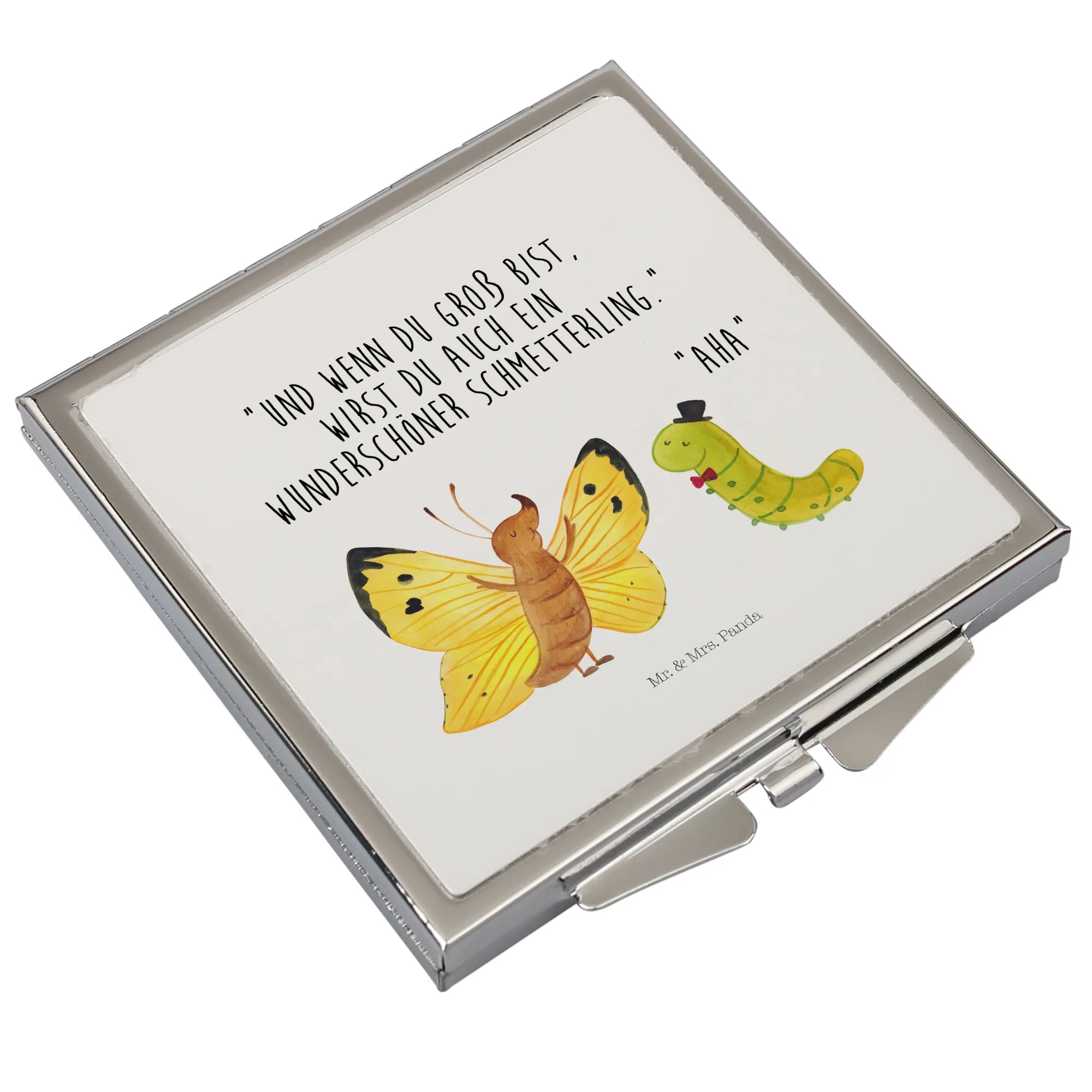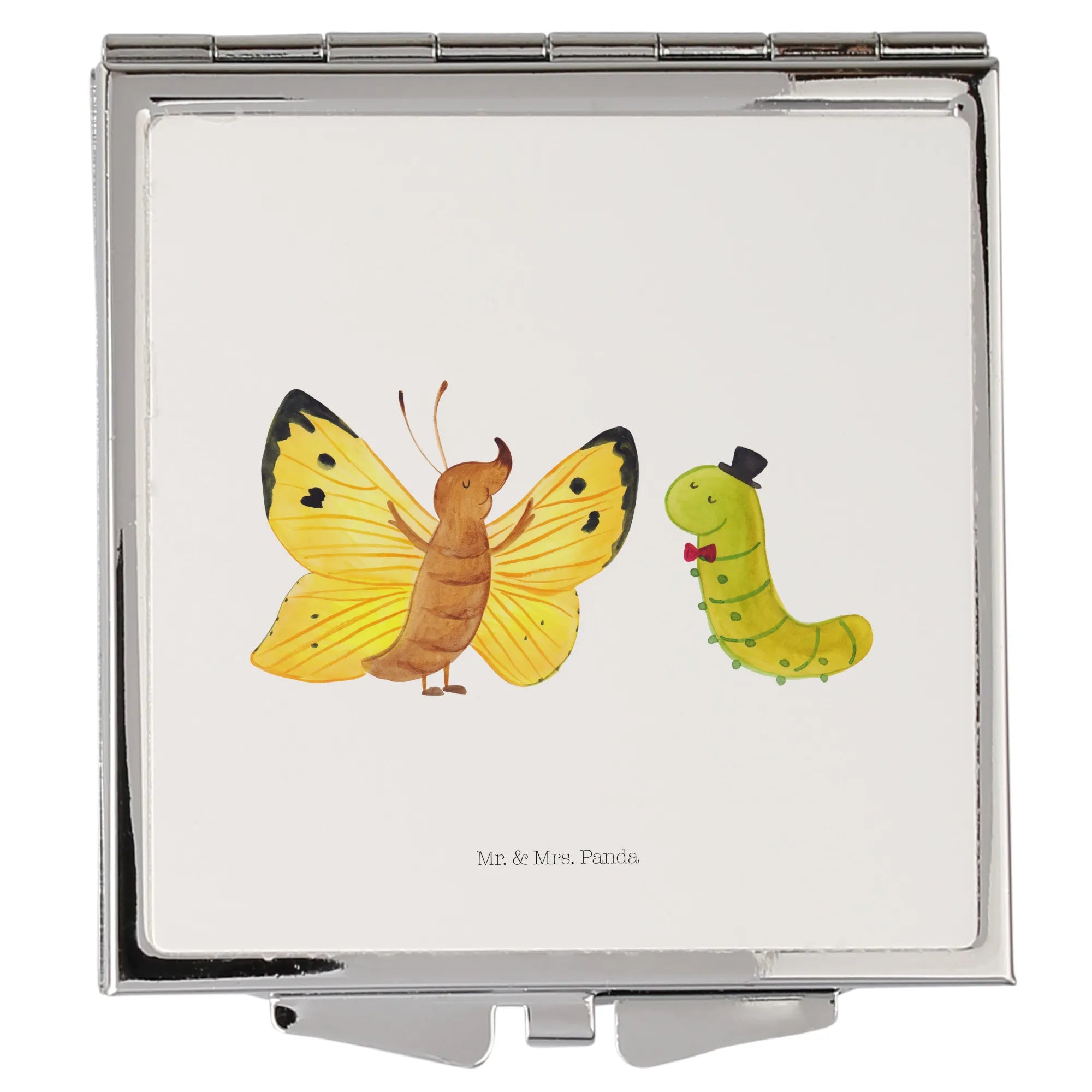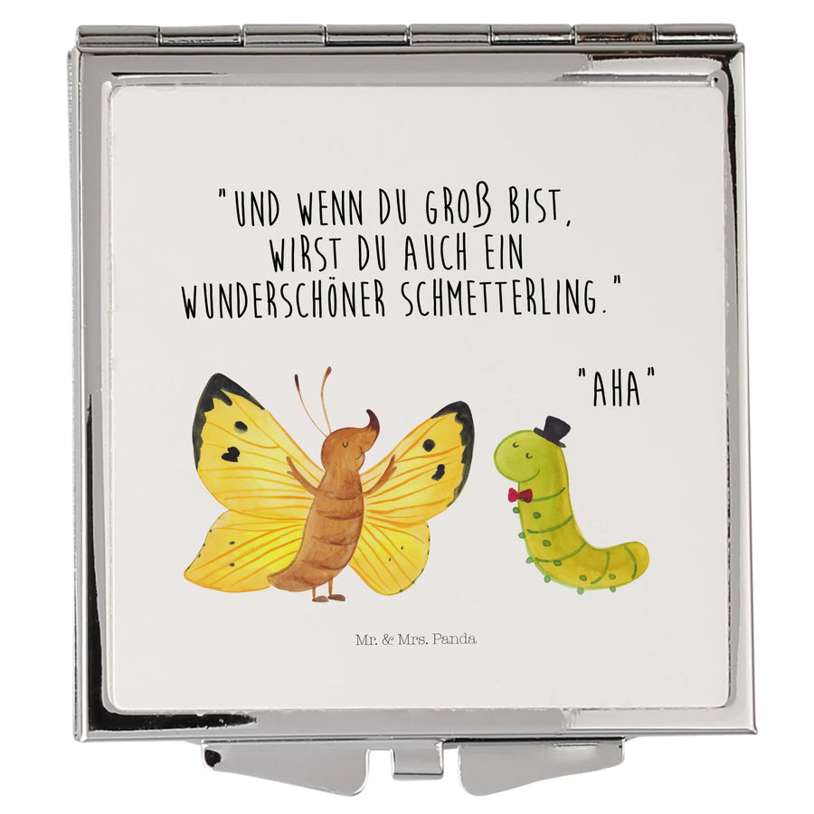 Produkt-Highlights: quadratischer Taschenspiegel, Klappspiegel, Kompaktspiegel, Reise Spiegel, Schminkspiegel To Go, schönes Geschenk, Small World Motiv Raupe & Schmetterling.