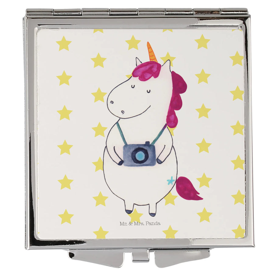 Kwadratowe lusterko do torebki Jednorożec fotograf - bez napisu - Biały