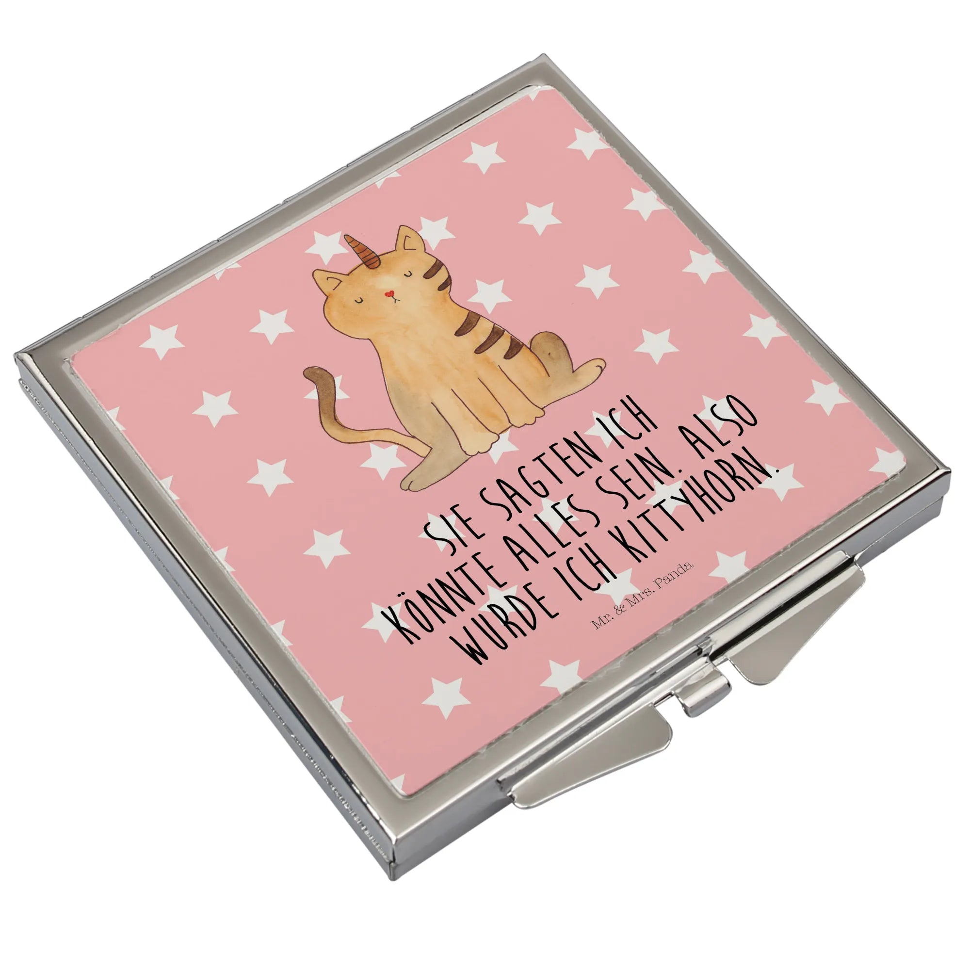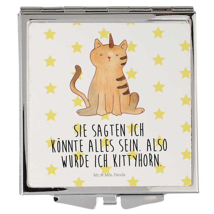 Kwadratowe lusterko do torebki jednorożec kot - z napisem - biały
