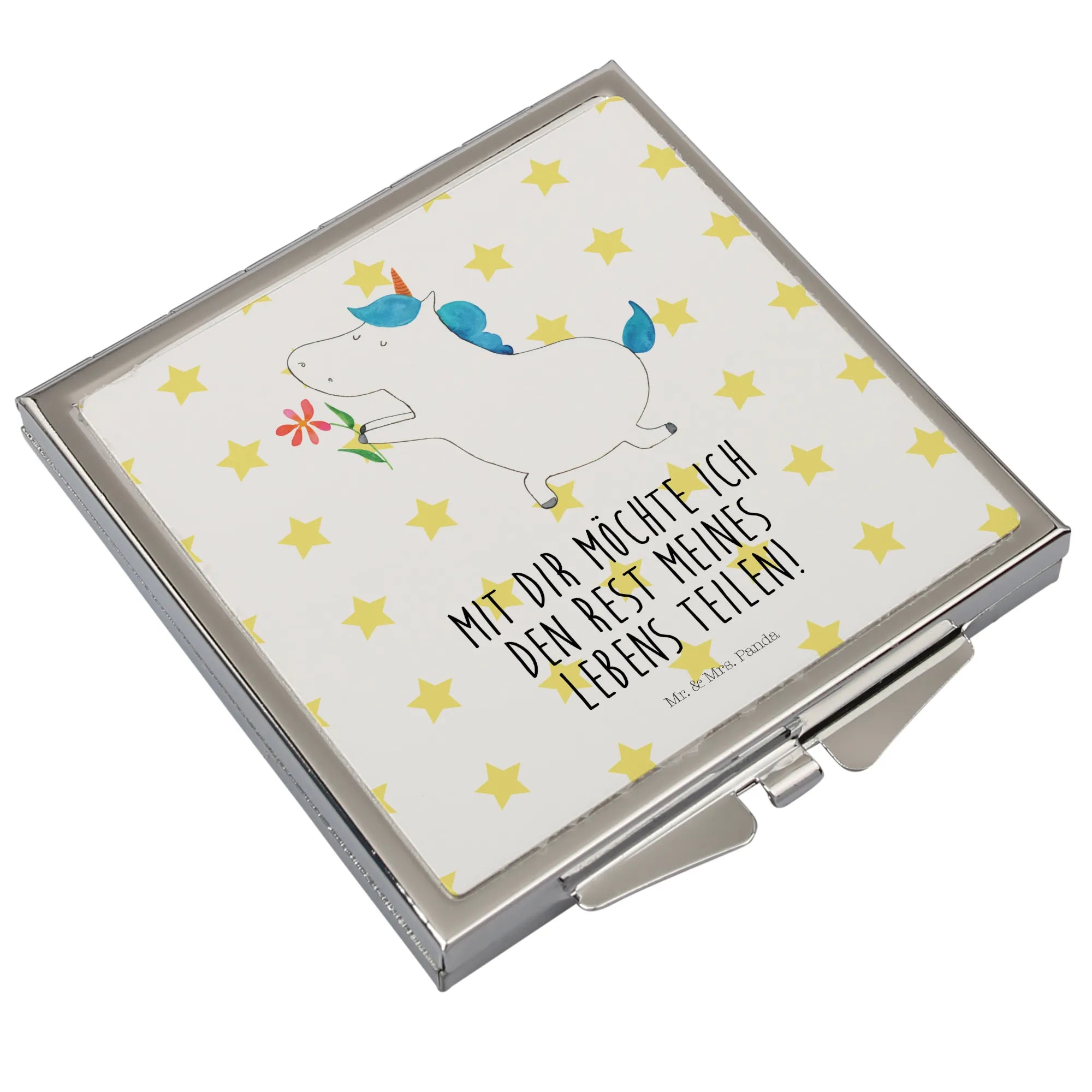 Kwadratowe lusterko do torebki jednorożec kwiat - bez napisu - biały