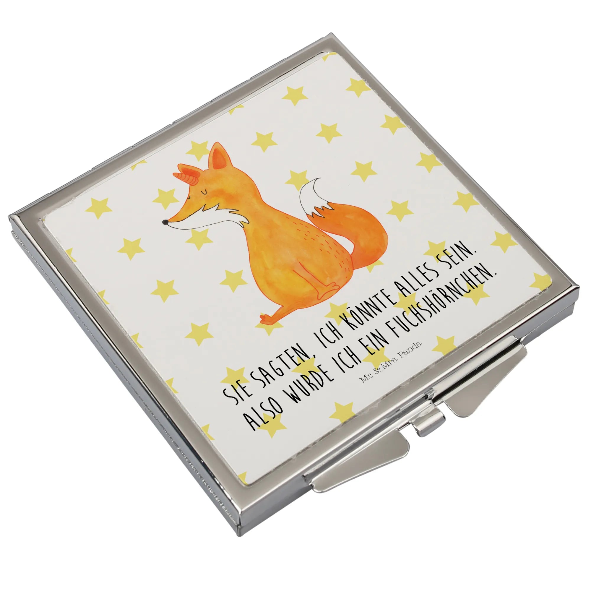 Kwadratowe lusterko do torebki Jednorożec życzenie - z napisem - Różowy Czerwony
