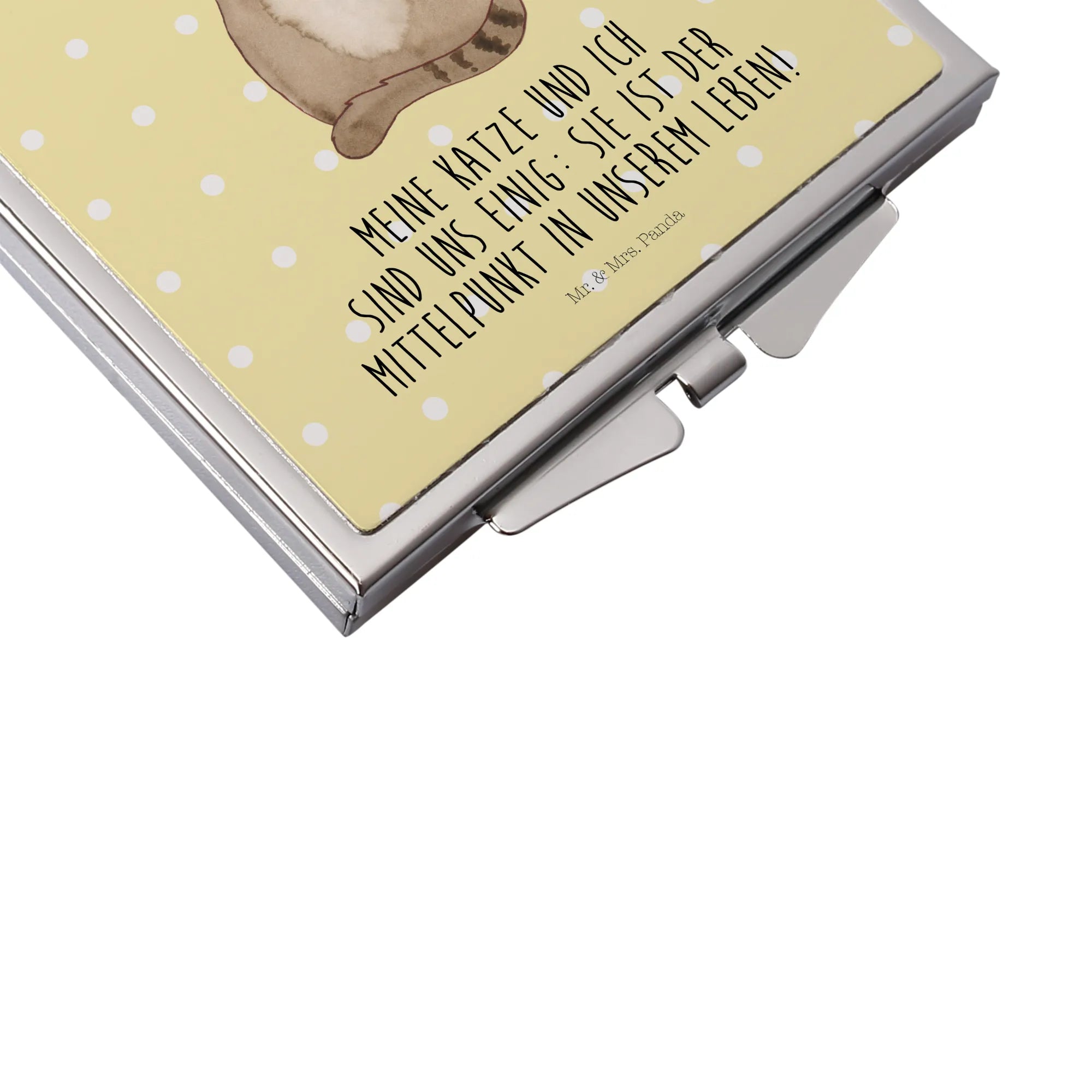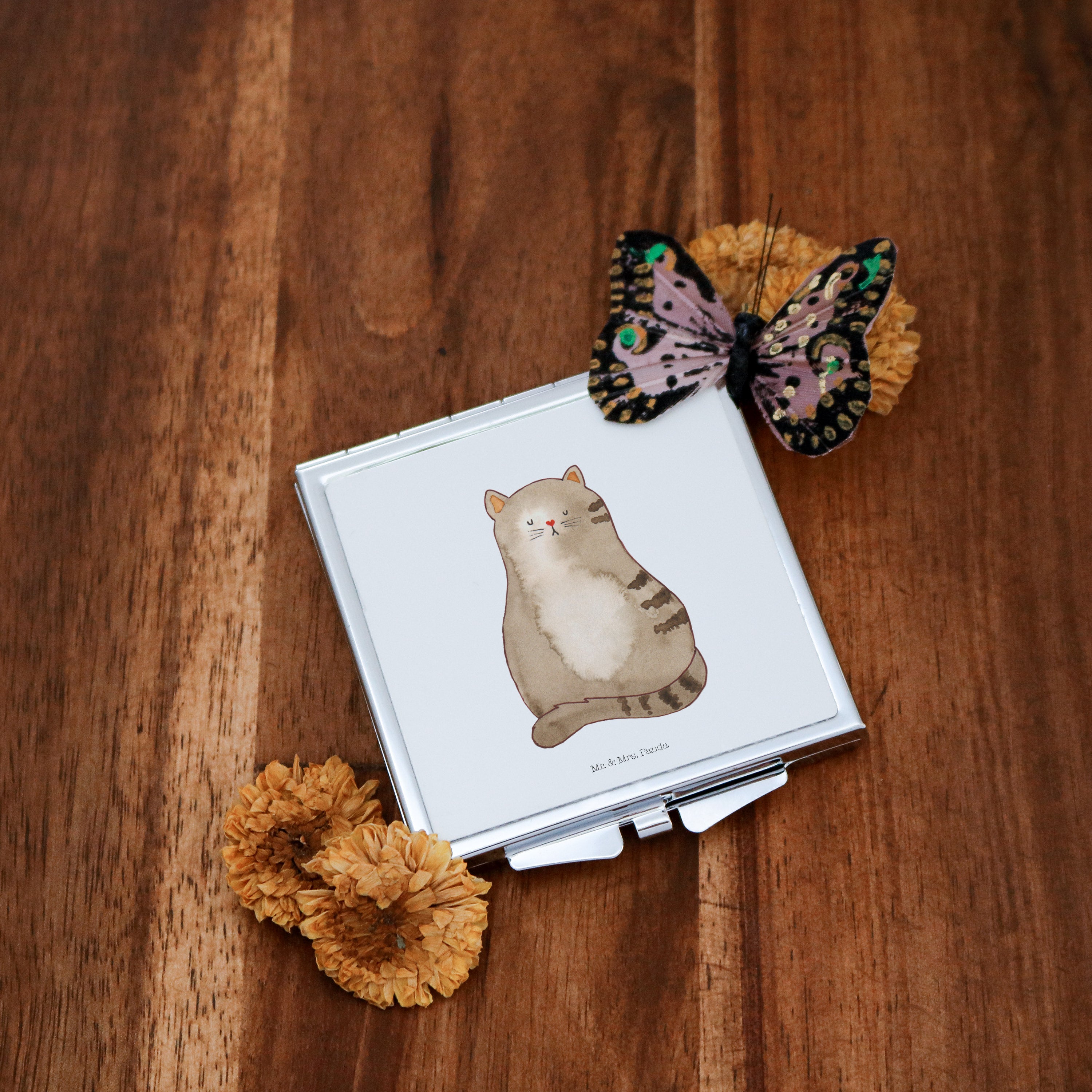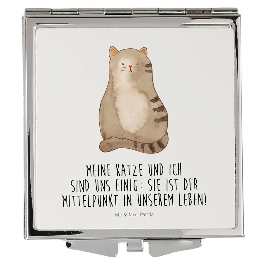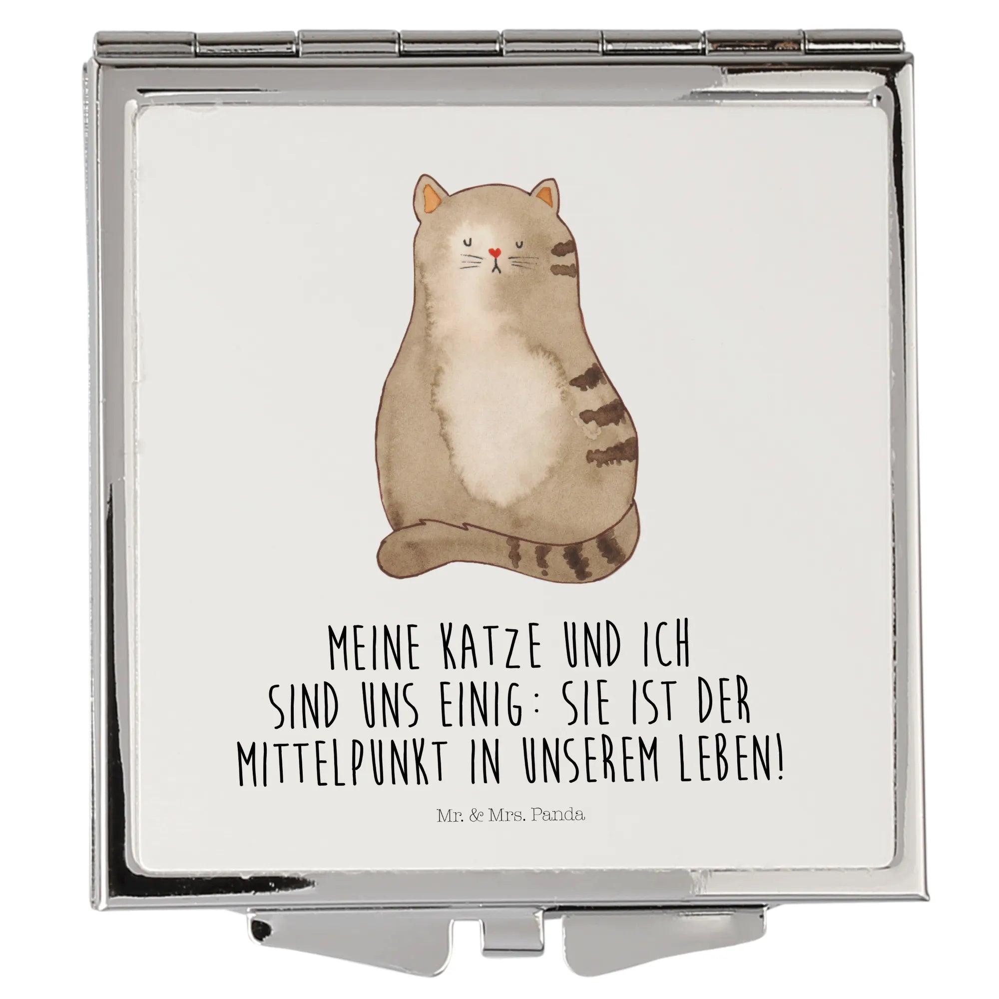 Kwadratowe lusterko do torebki kot siedzenie - z napisem - biały