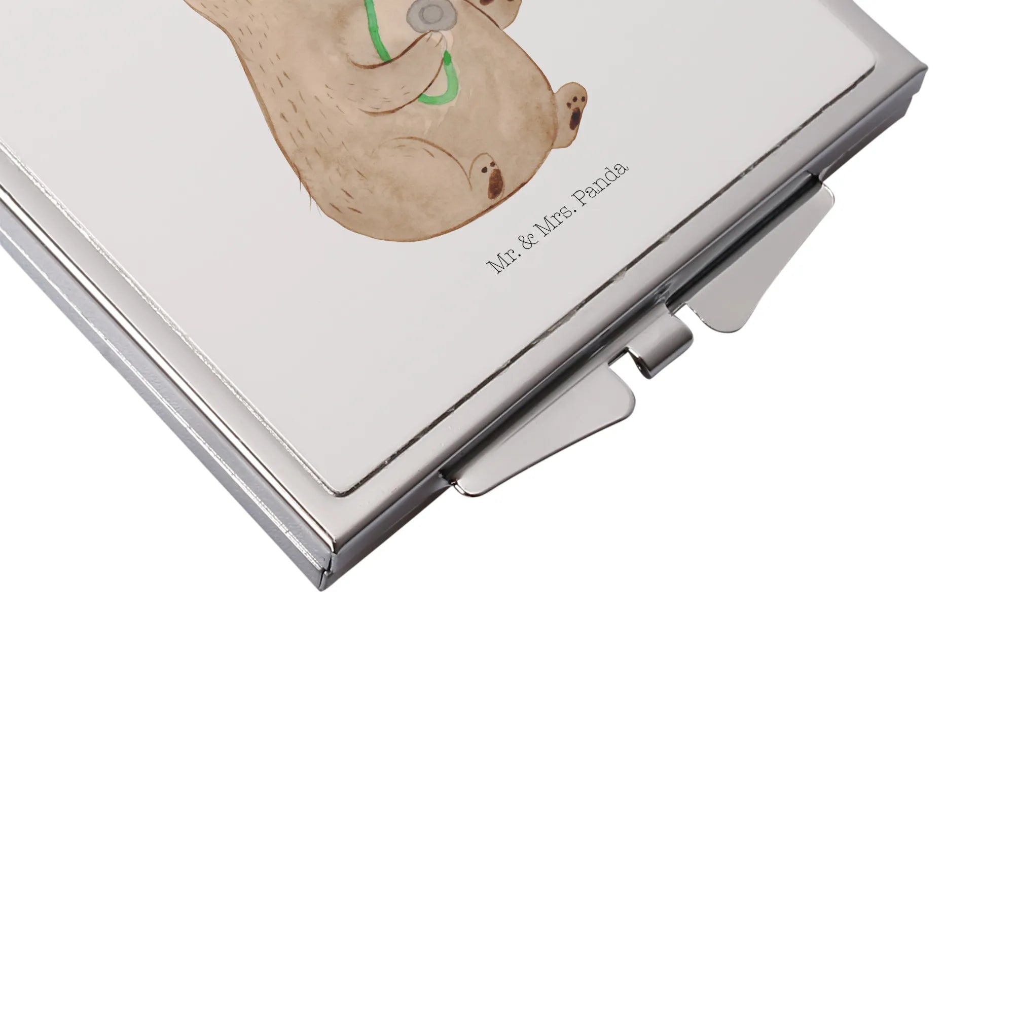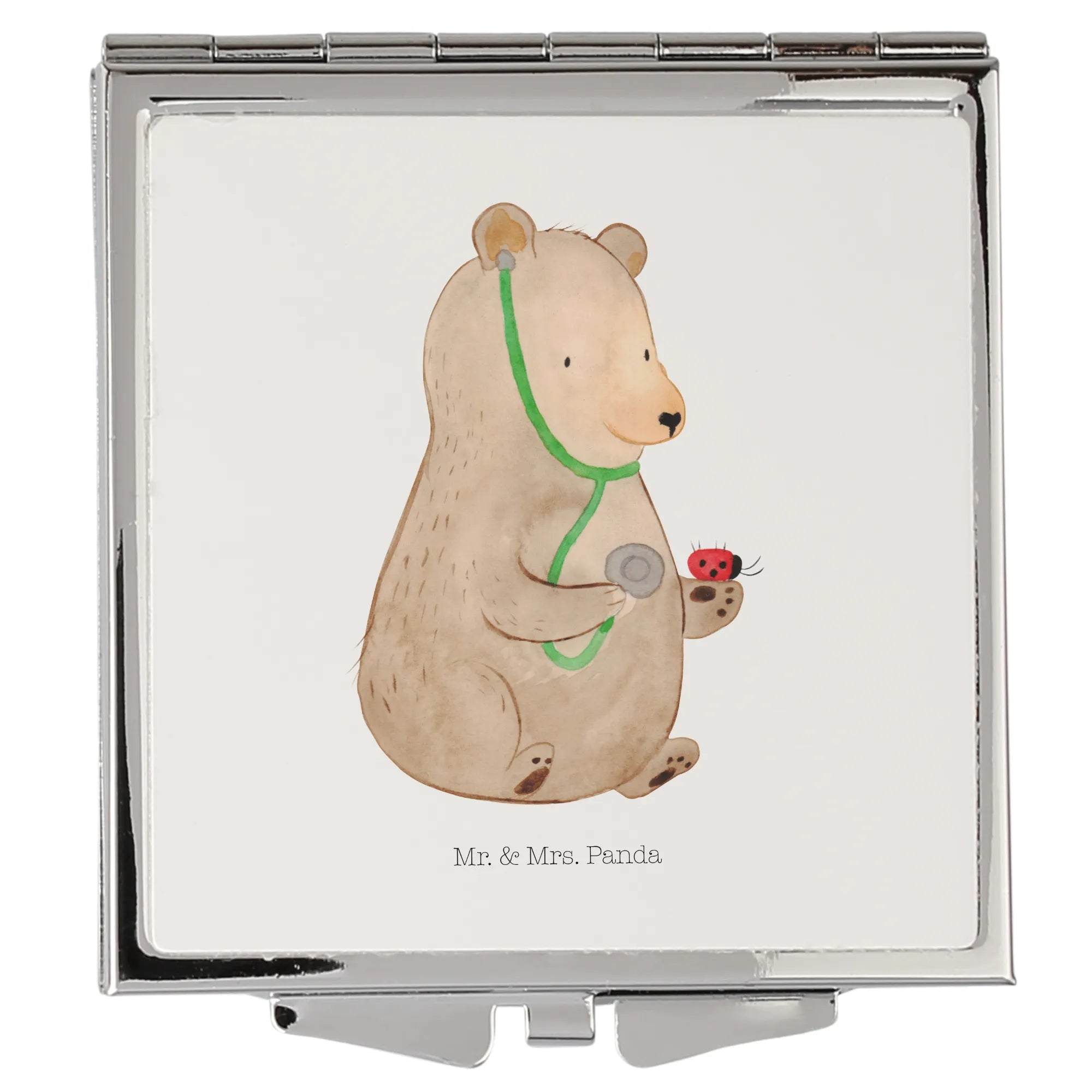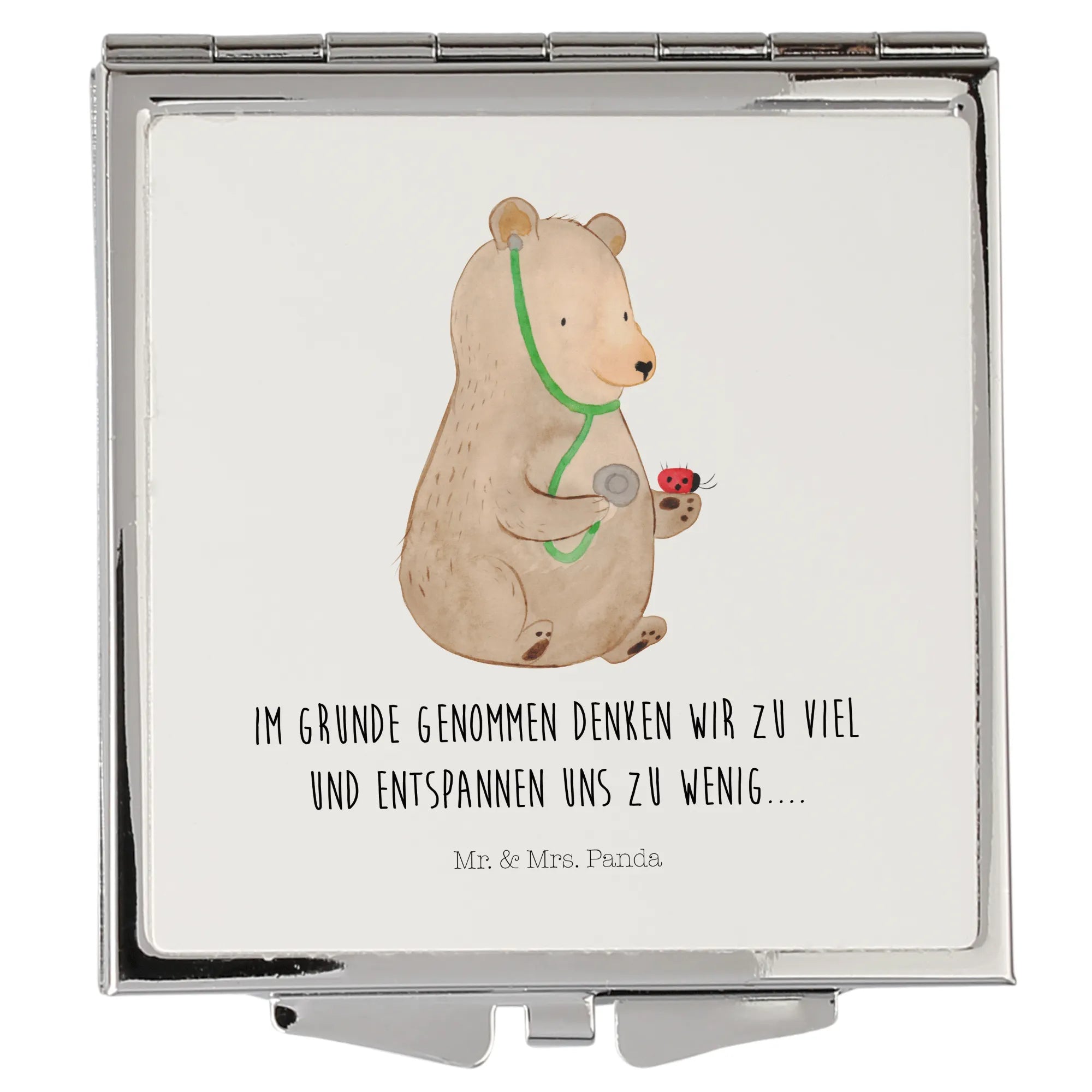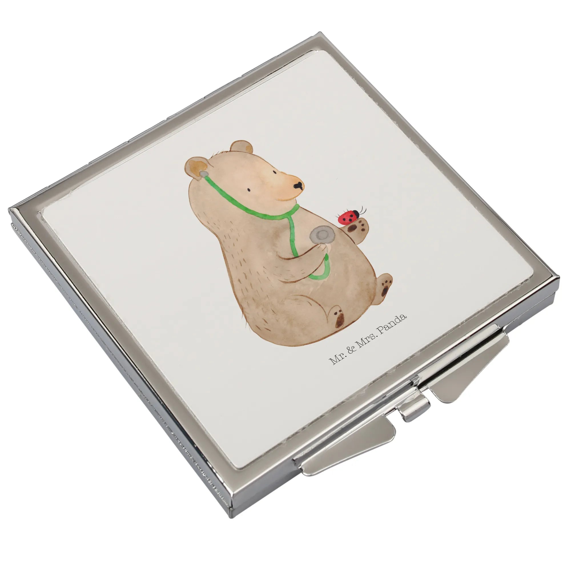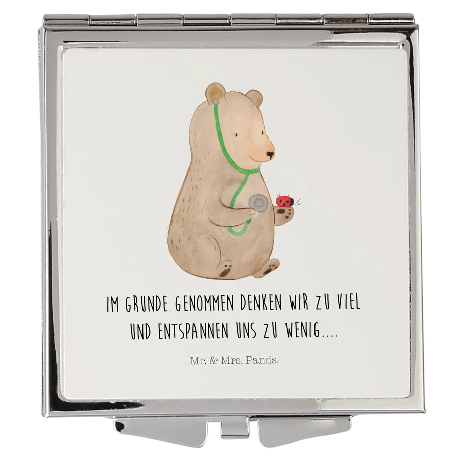Kwadratowe lusterko do torebki niedźwiedź lekarz - z napisem