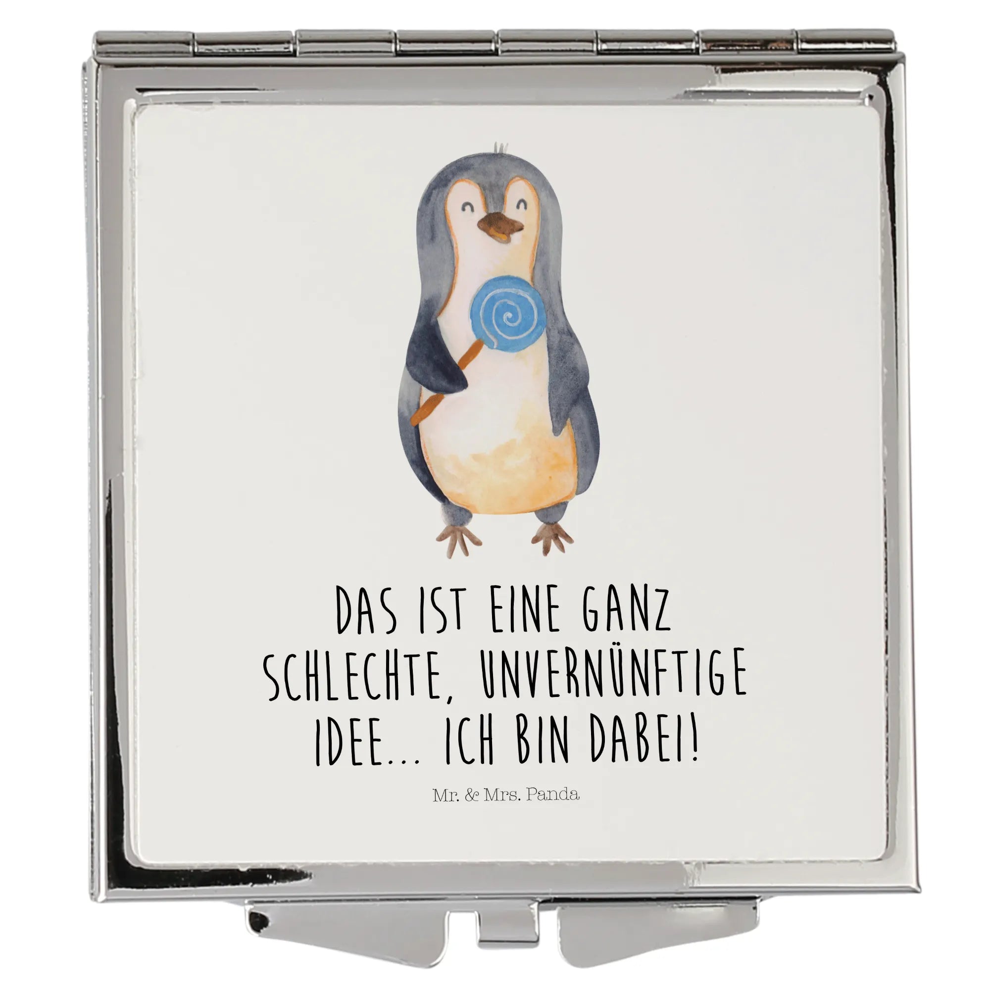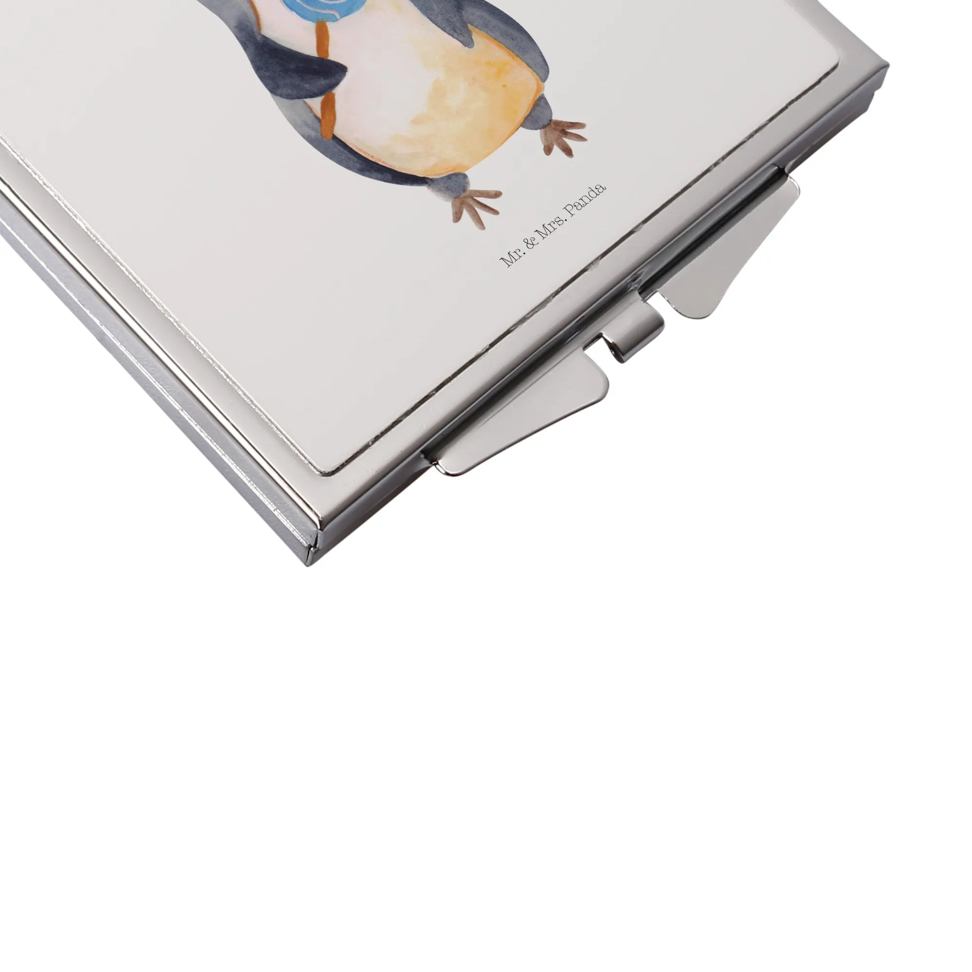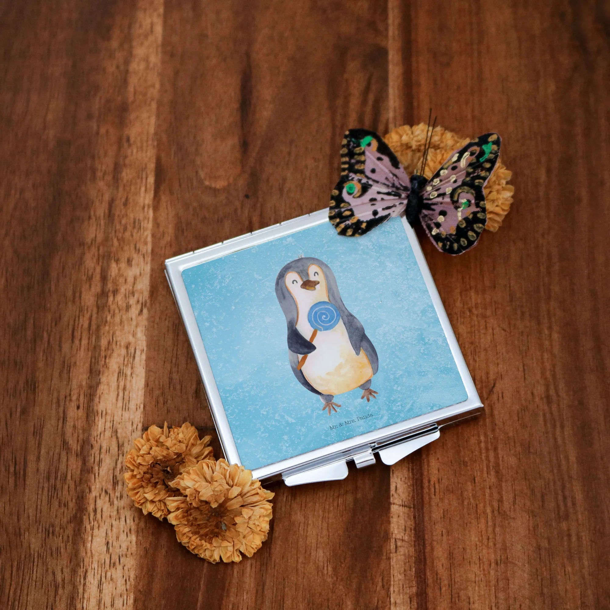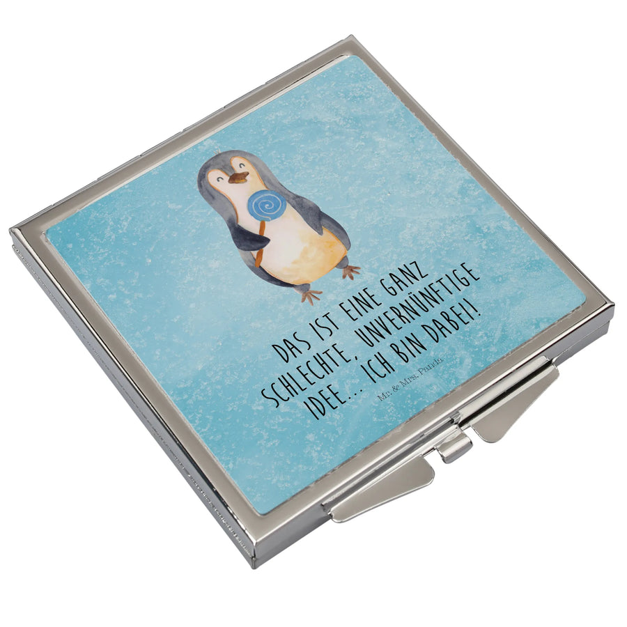 Kwadratowe lusterko do torebki pingwin lizak - z napisem - lodowoniebieski