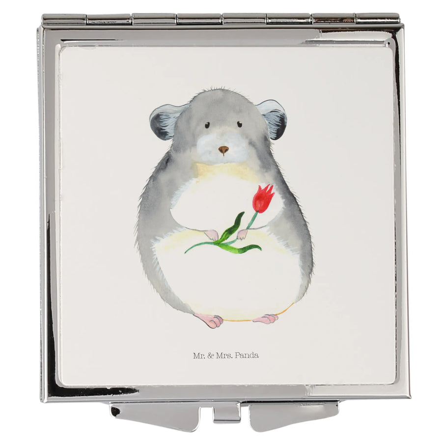 Kwadratowe lusterko do torebki szynszyla kwiat - bez napisu - Biały