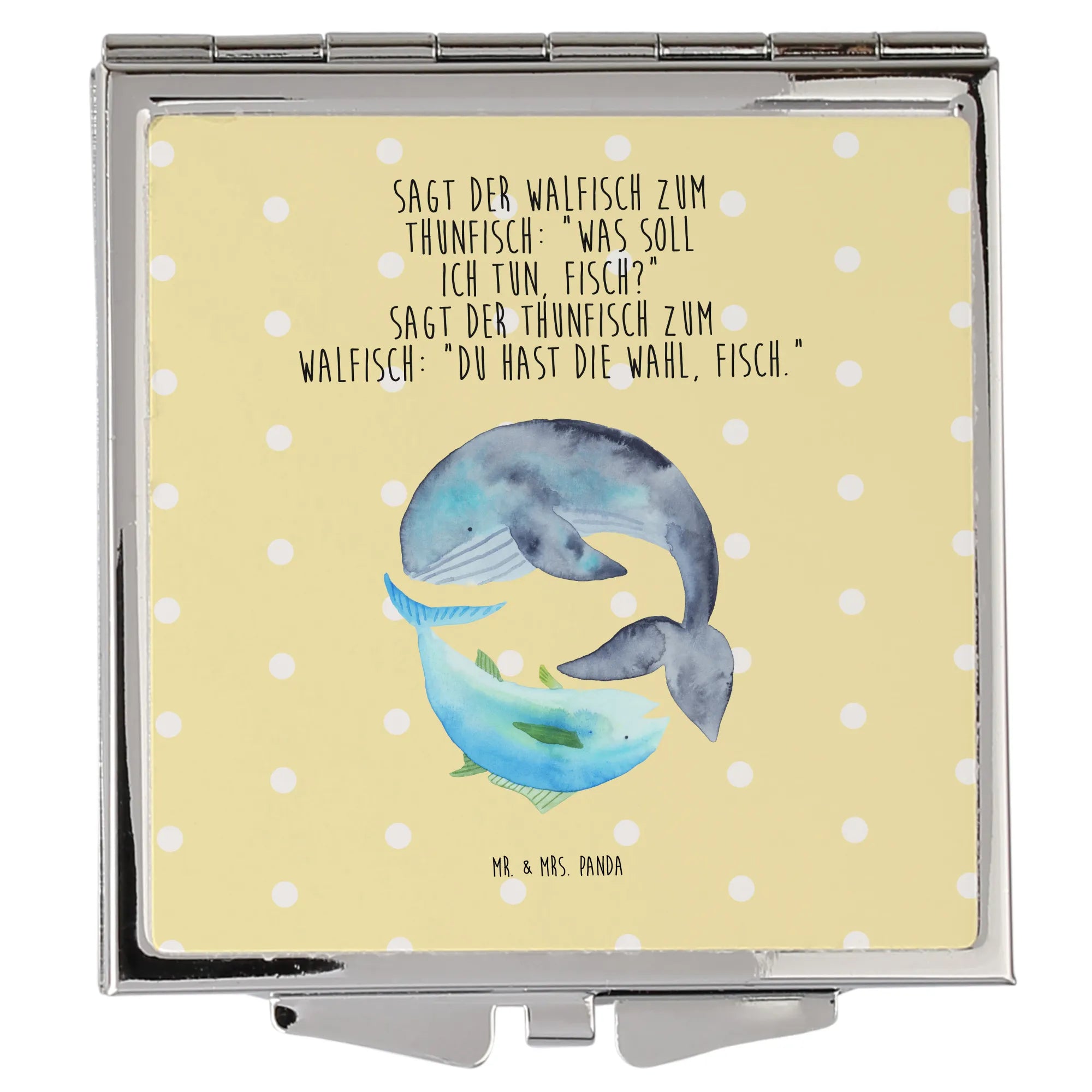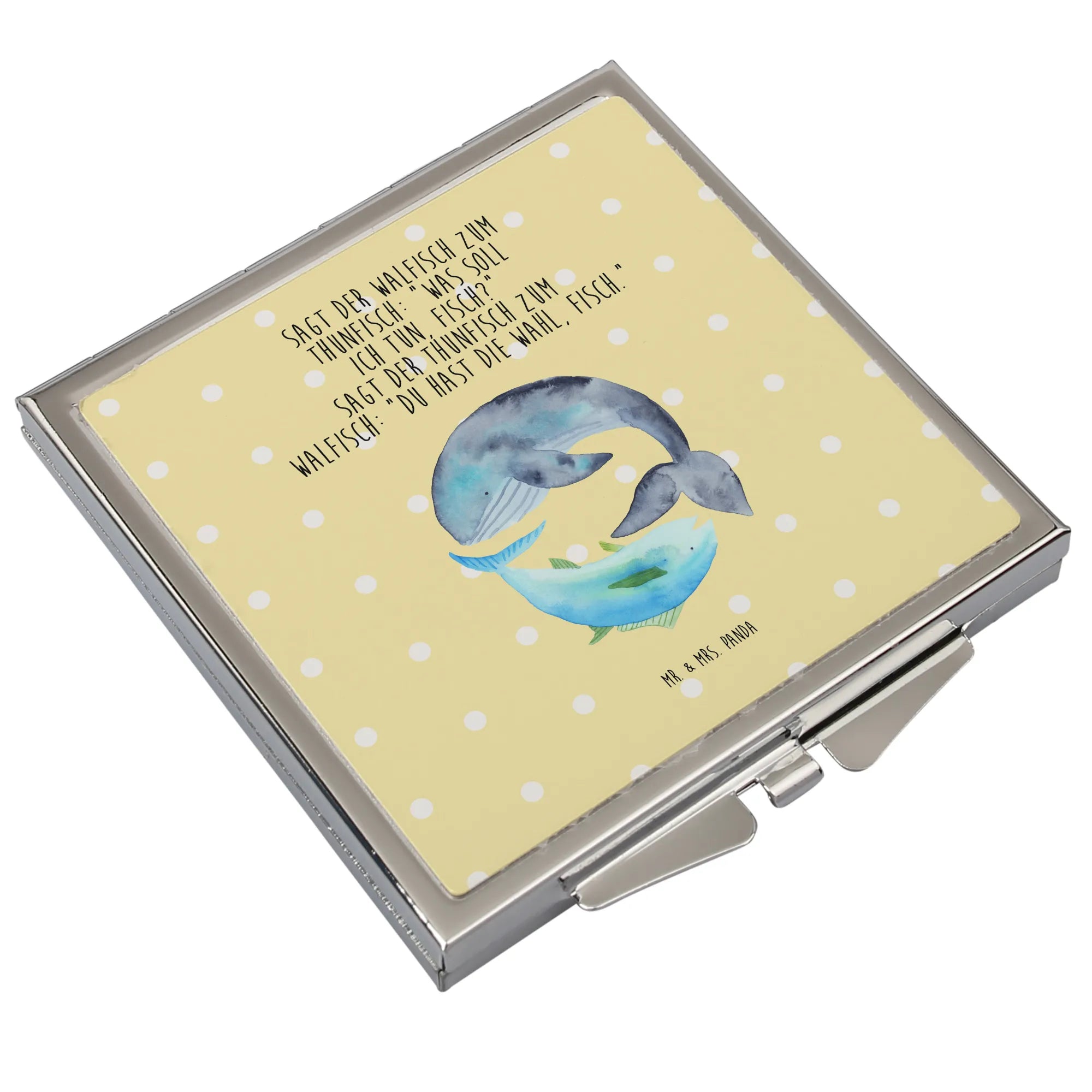 Kwadratowe lusterko do torebki wieloryb tuńczyk - z napisem - Żółty Pastel