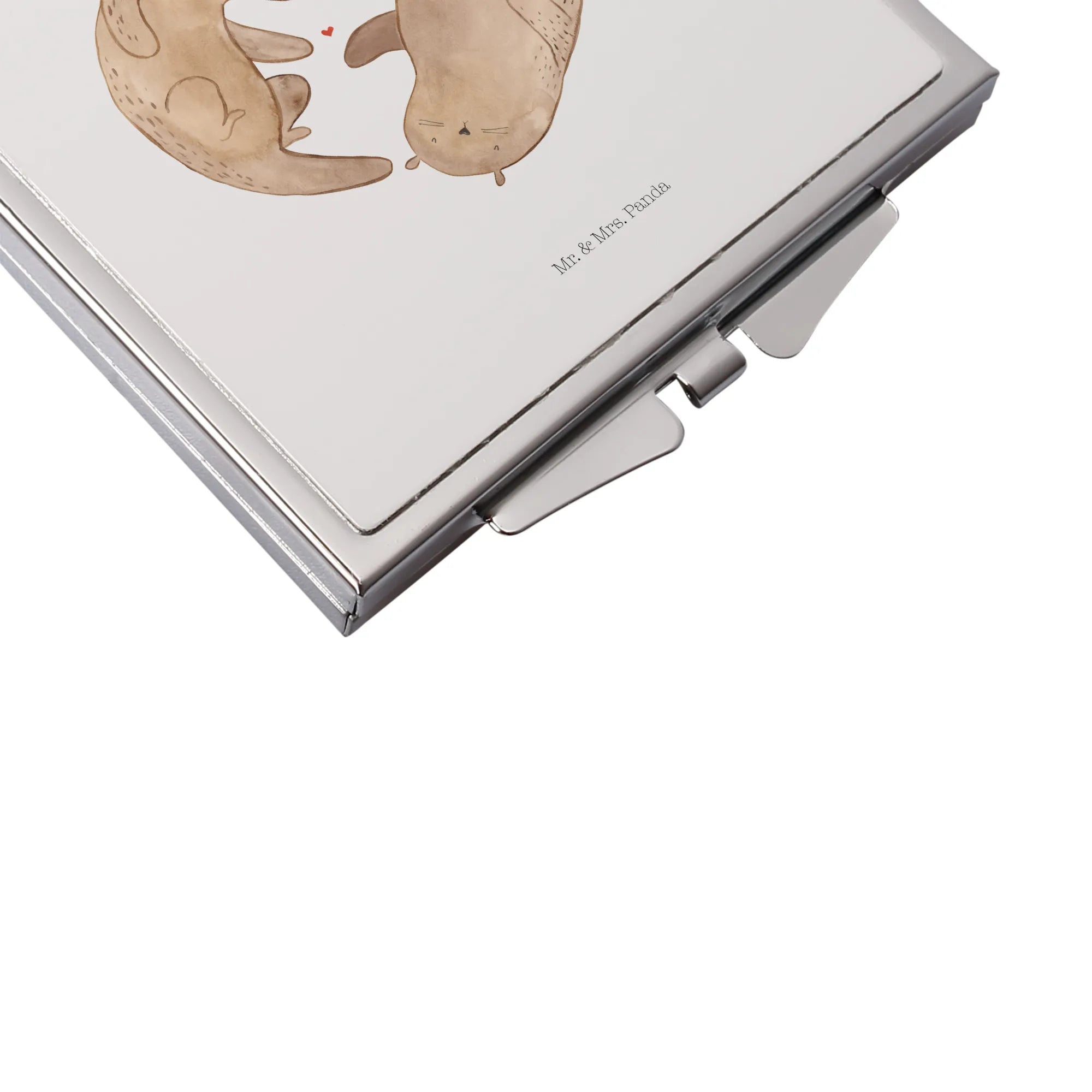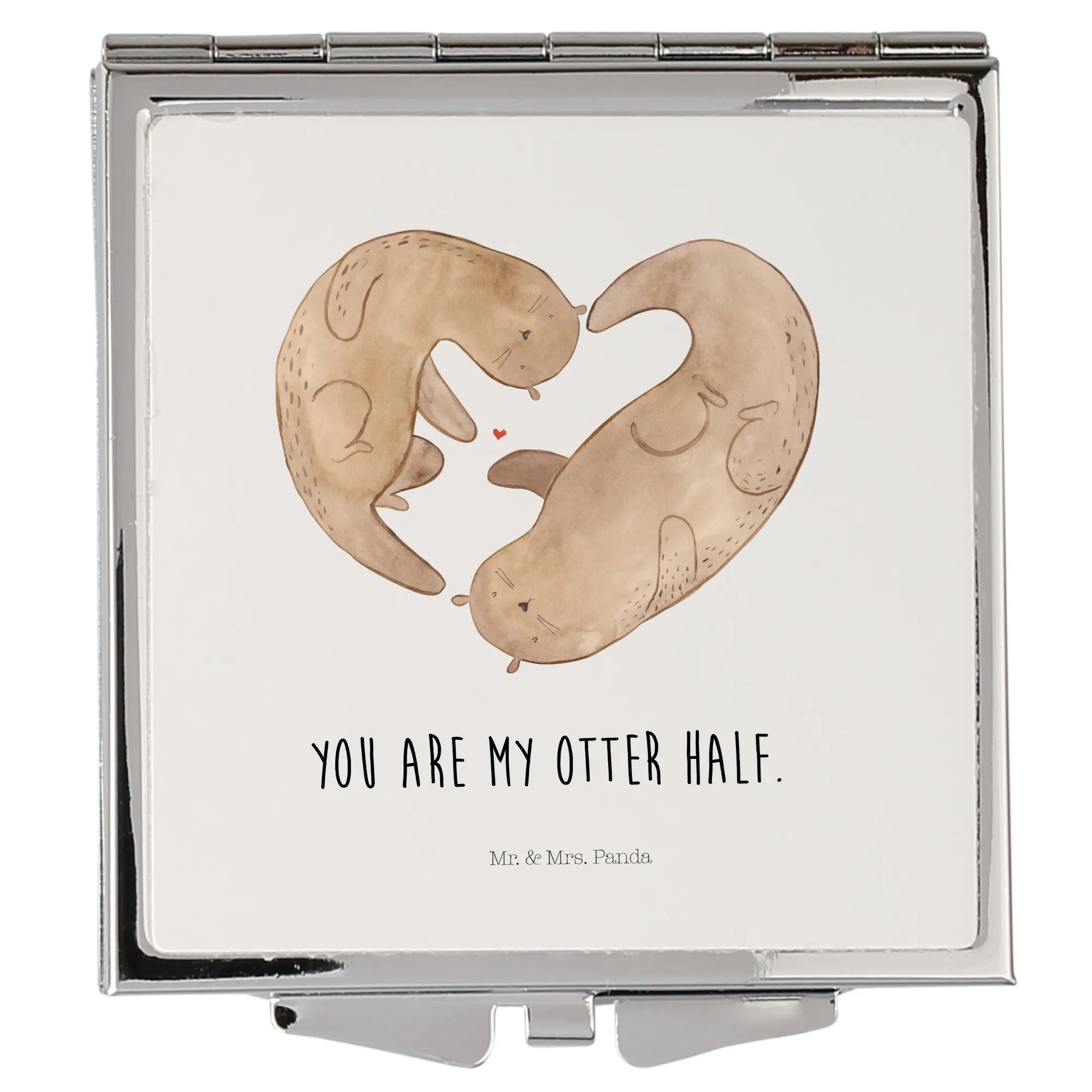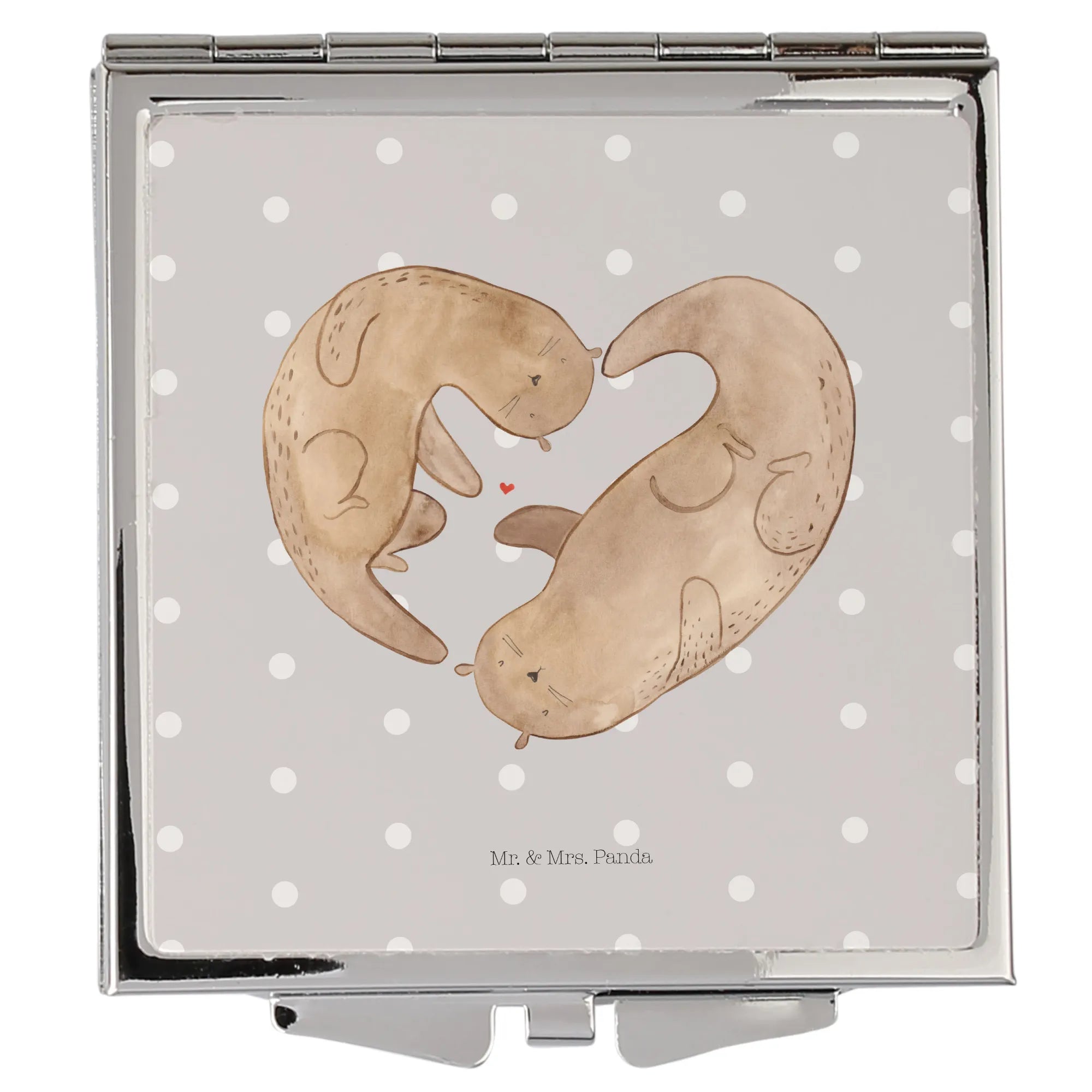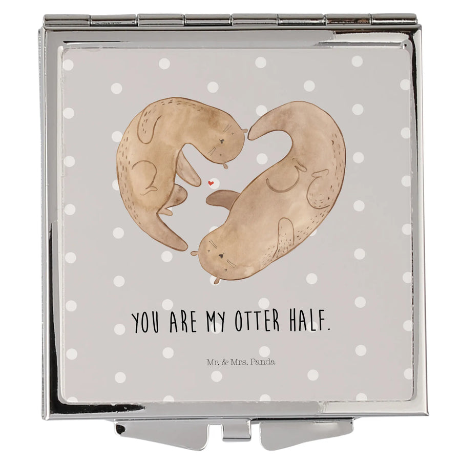 Kwadratowe lusterko do torebki wydra serce - z napisem - Pastelowy szary