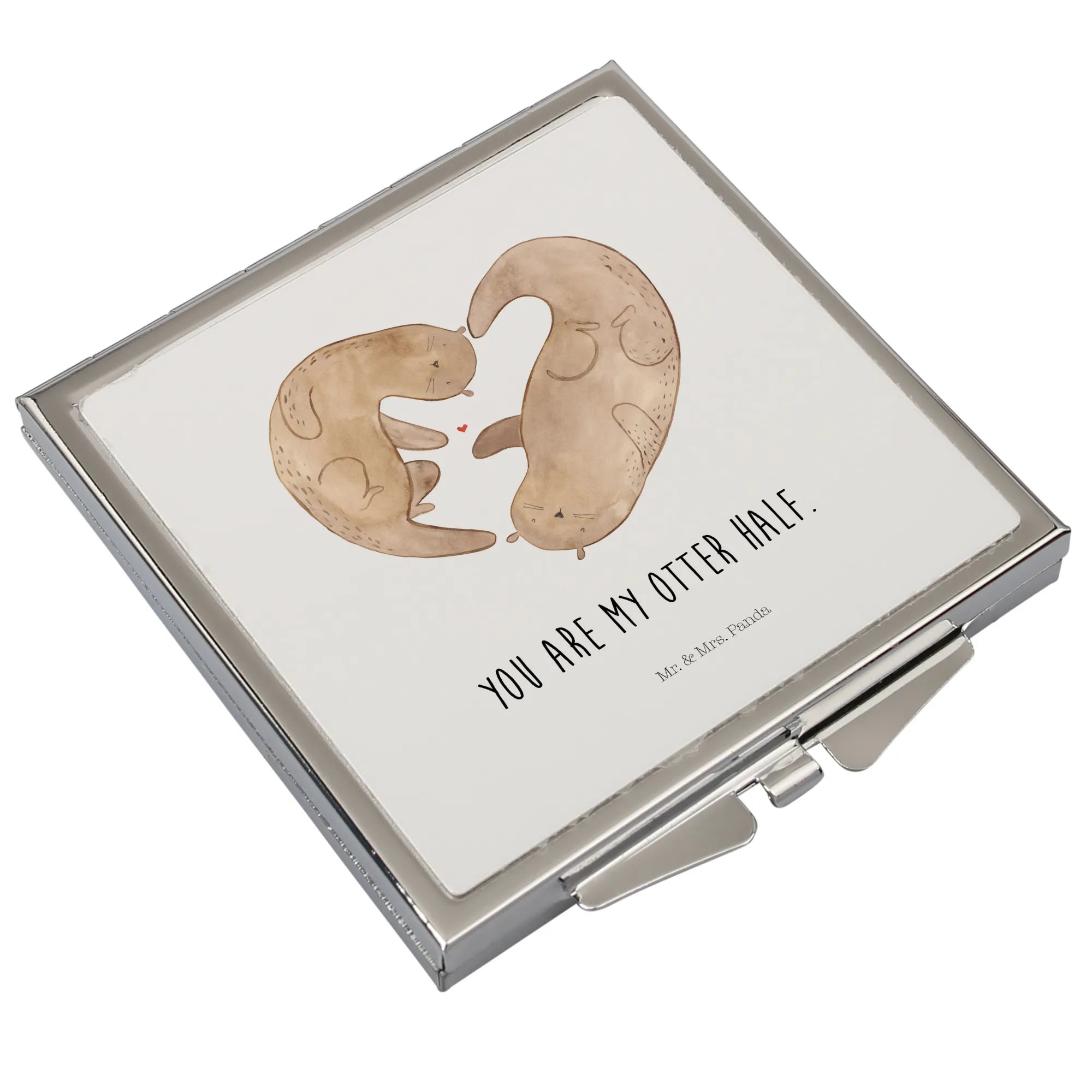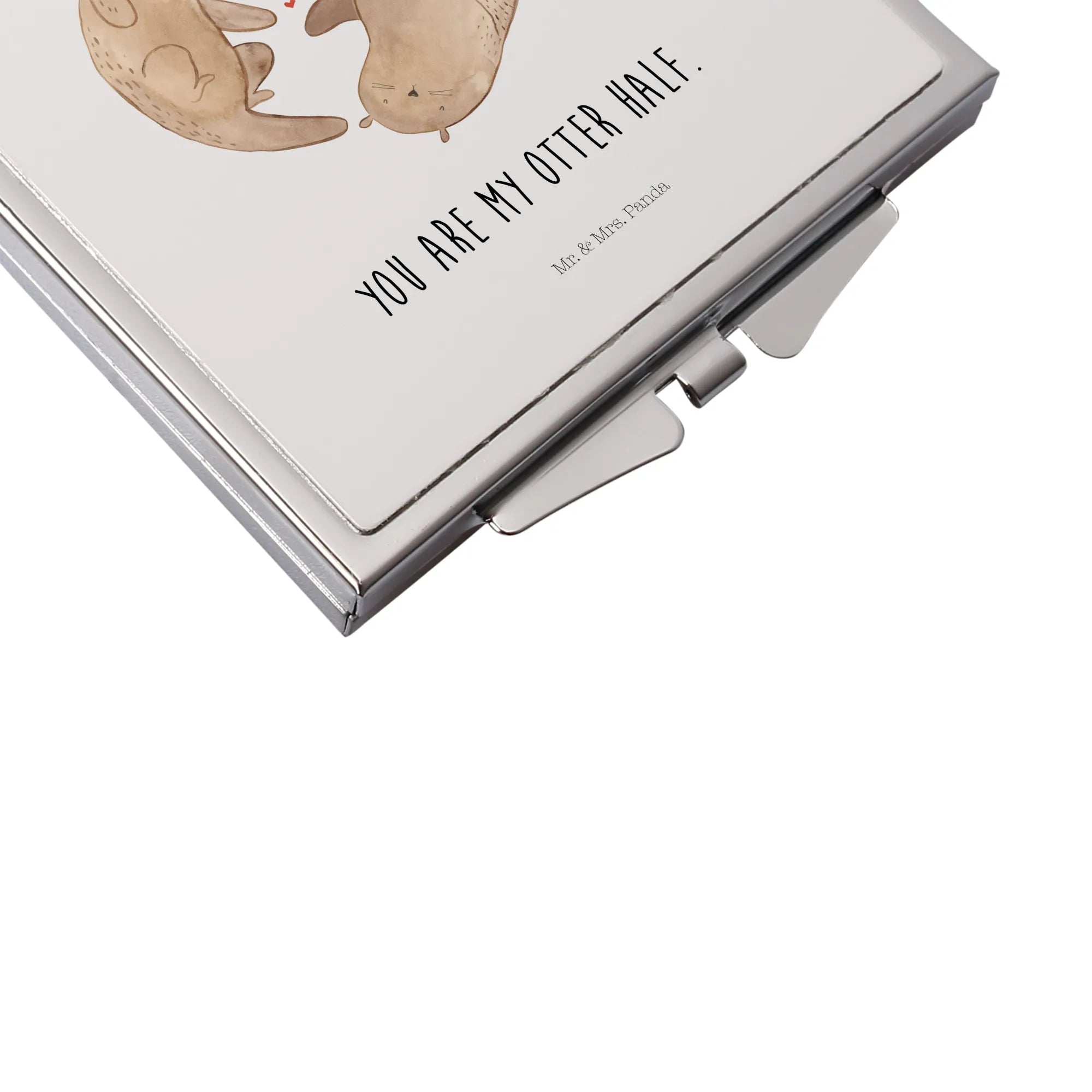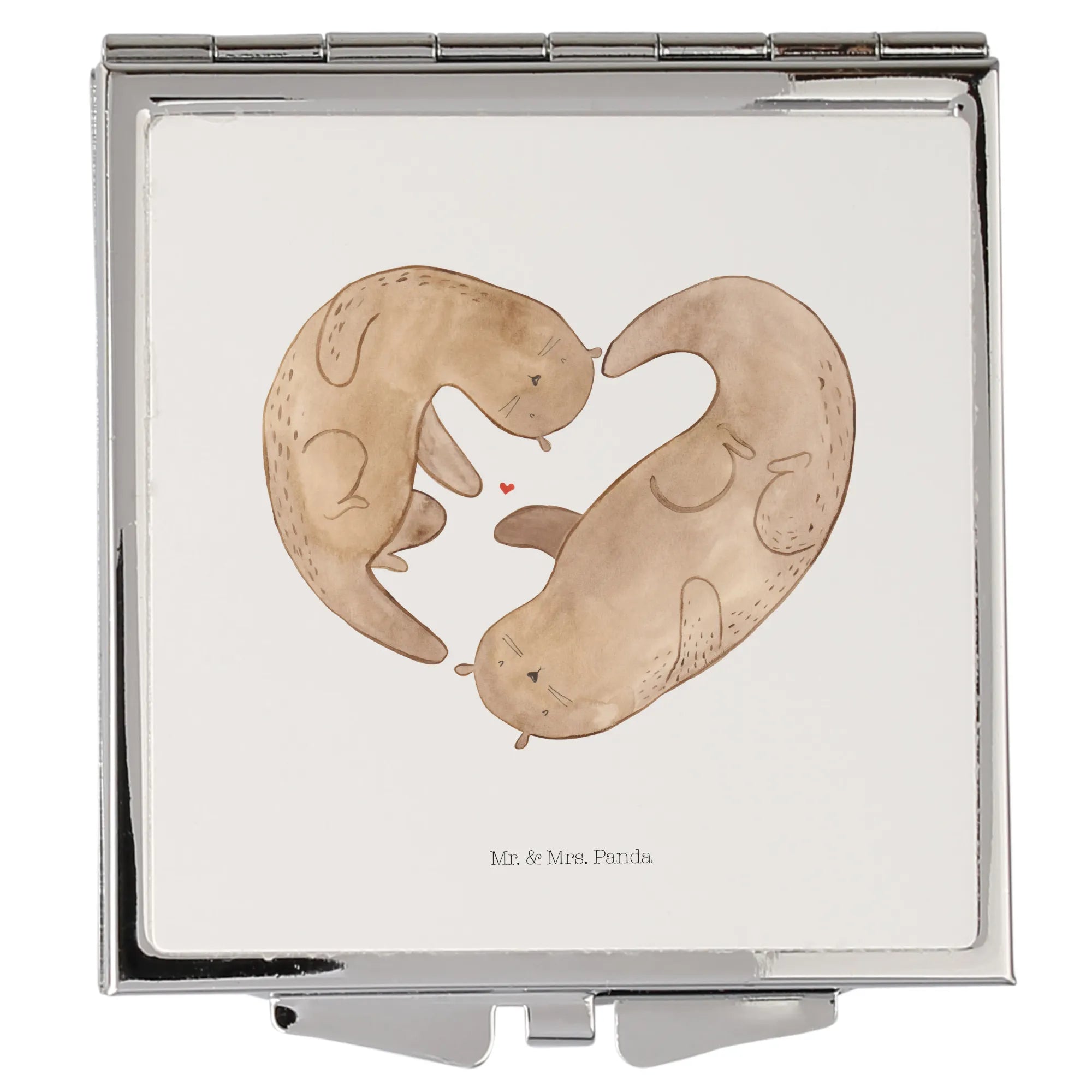 Kwadratowe lusterko do torebki wydra serce - z napisem - Pastelowy szary