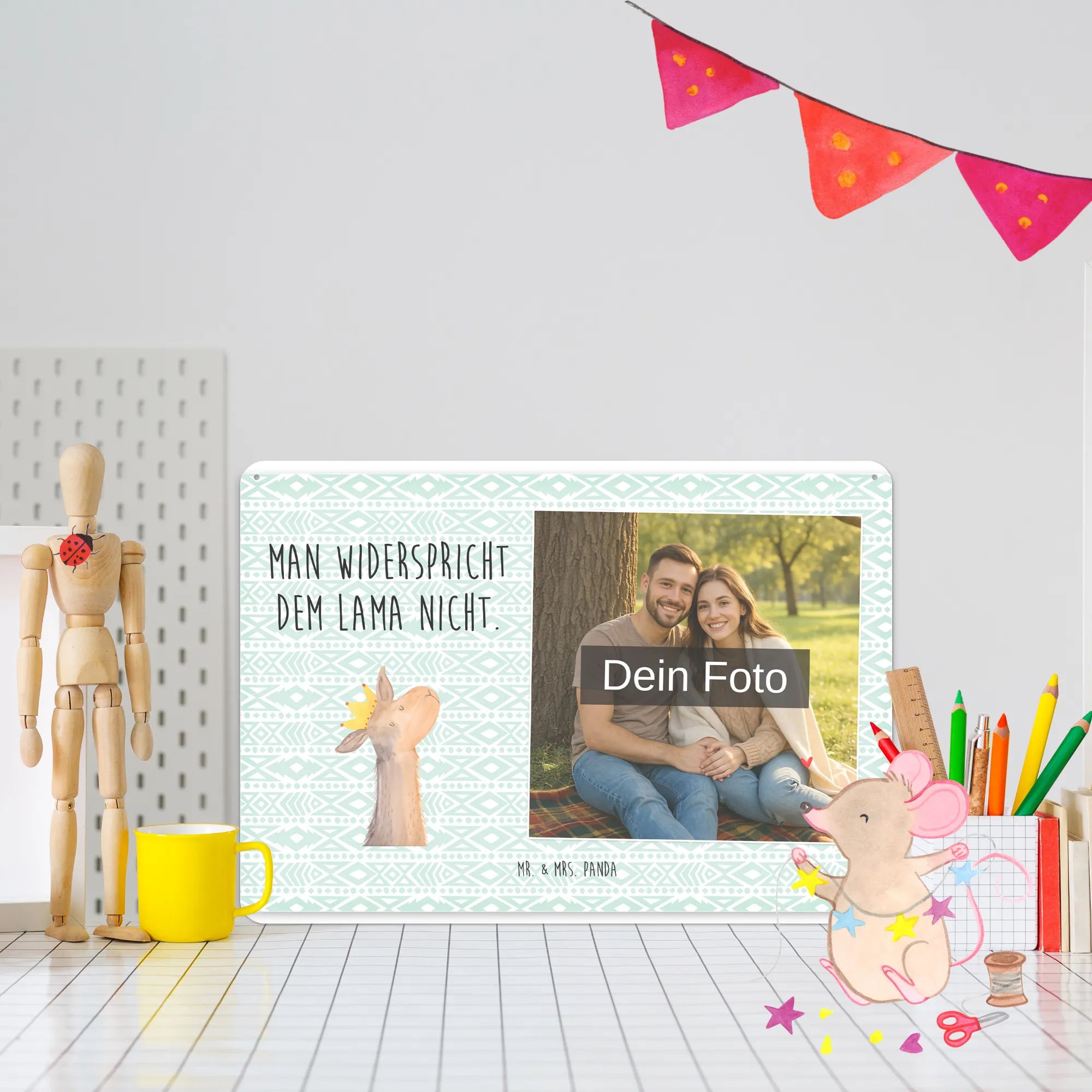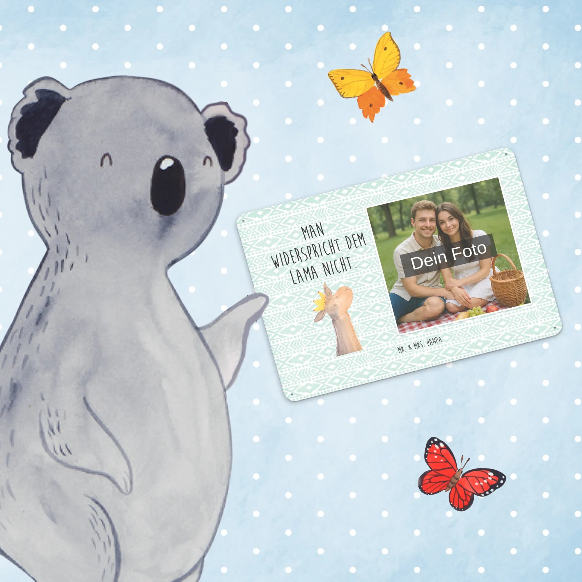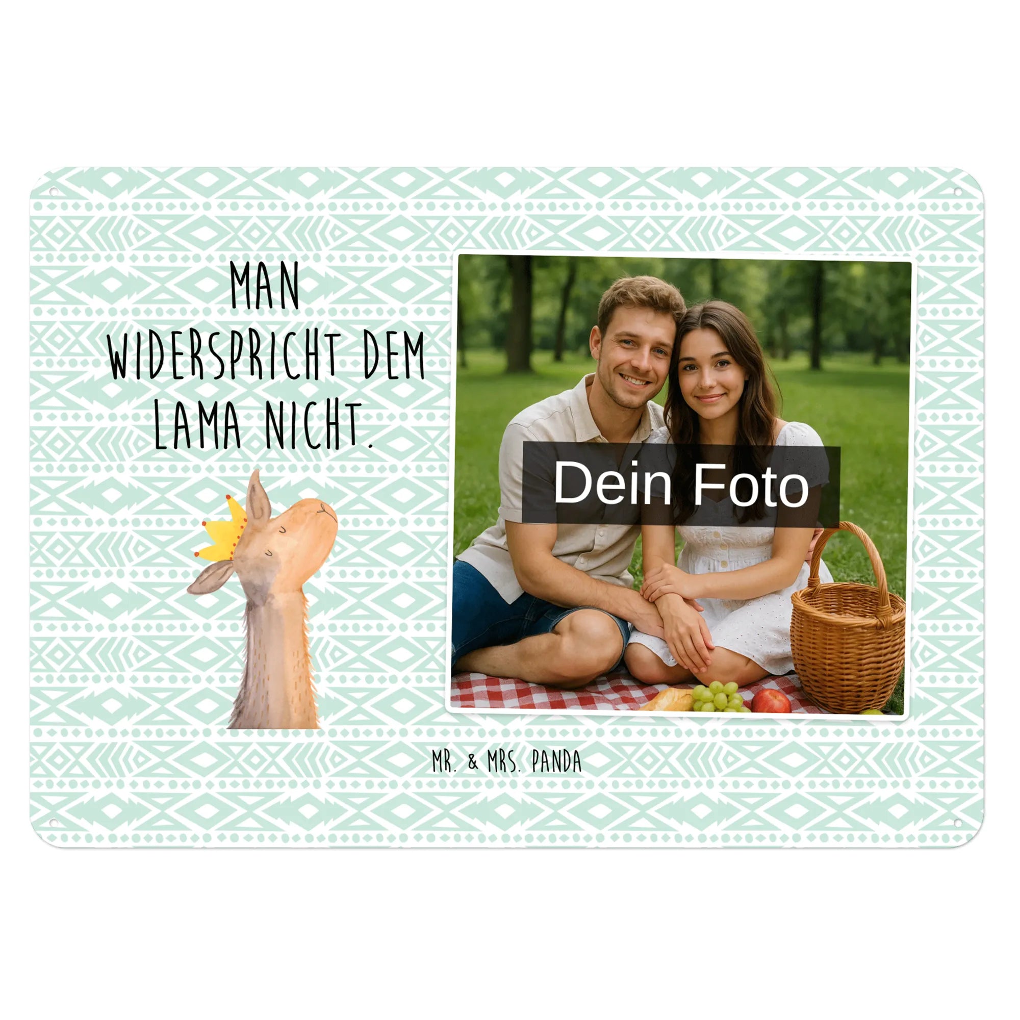 Spersonalizowany metalowy szyld ze zdjęciem Głowa lamy król - DIN A6