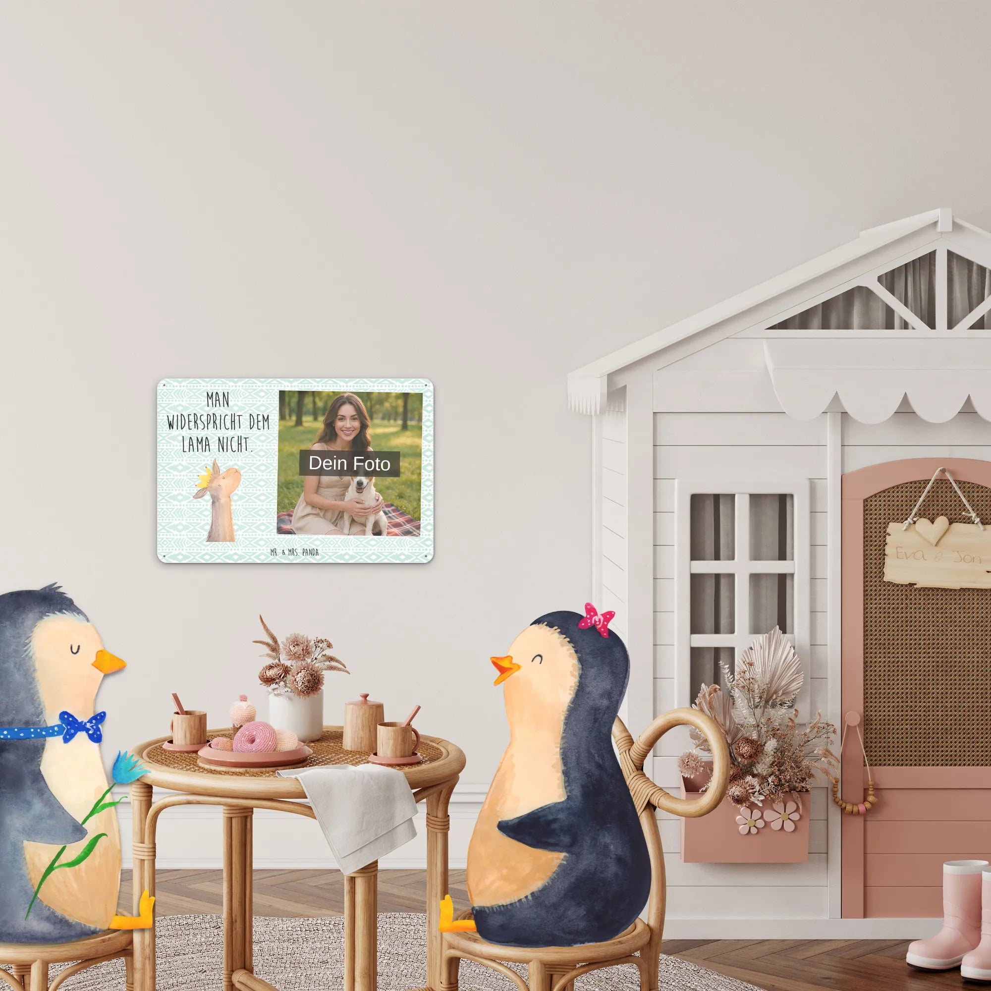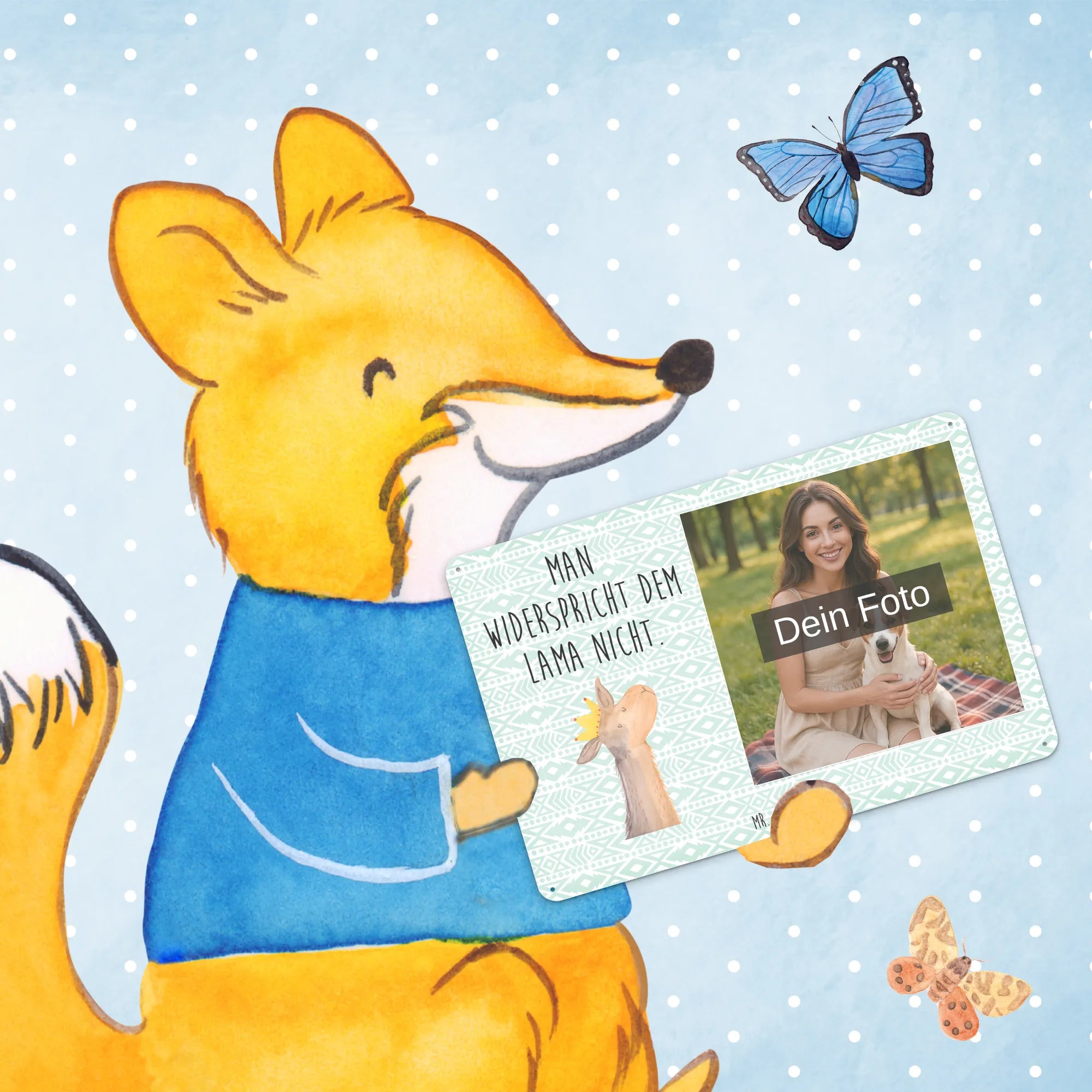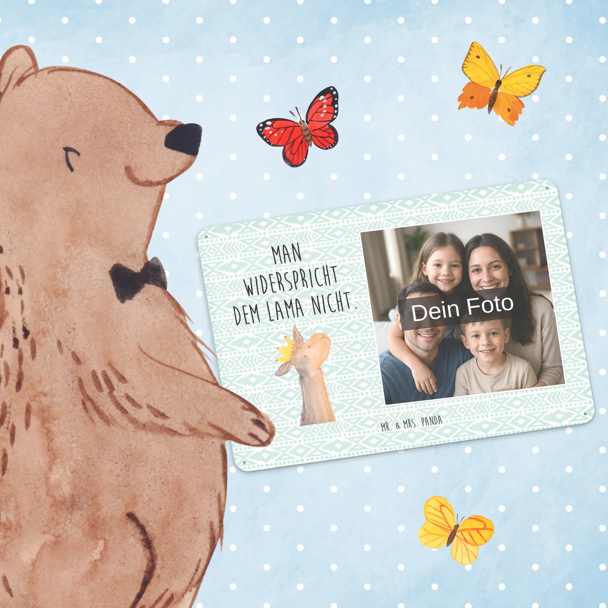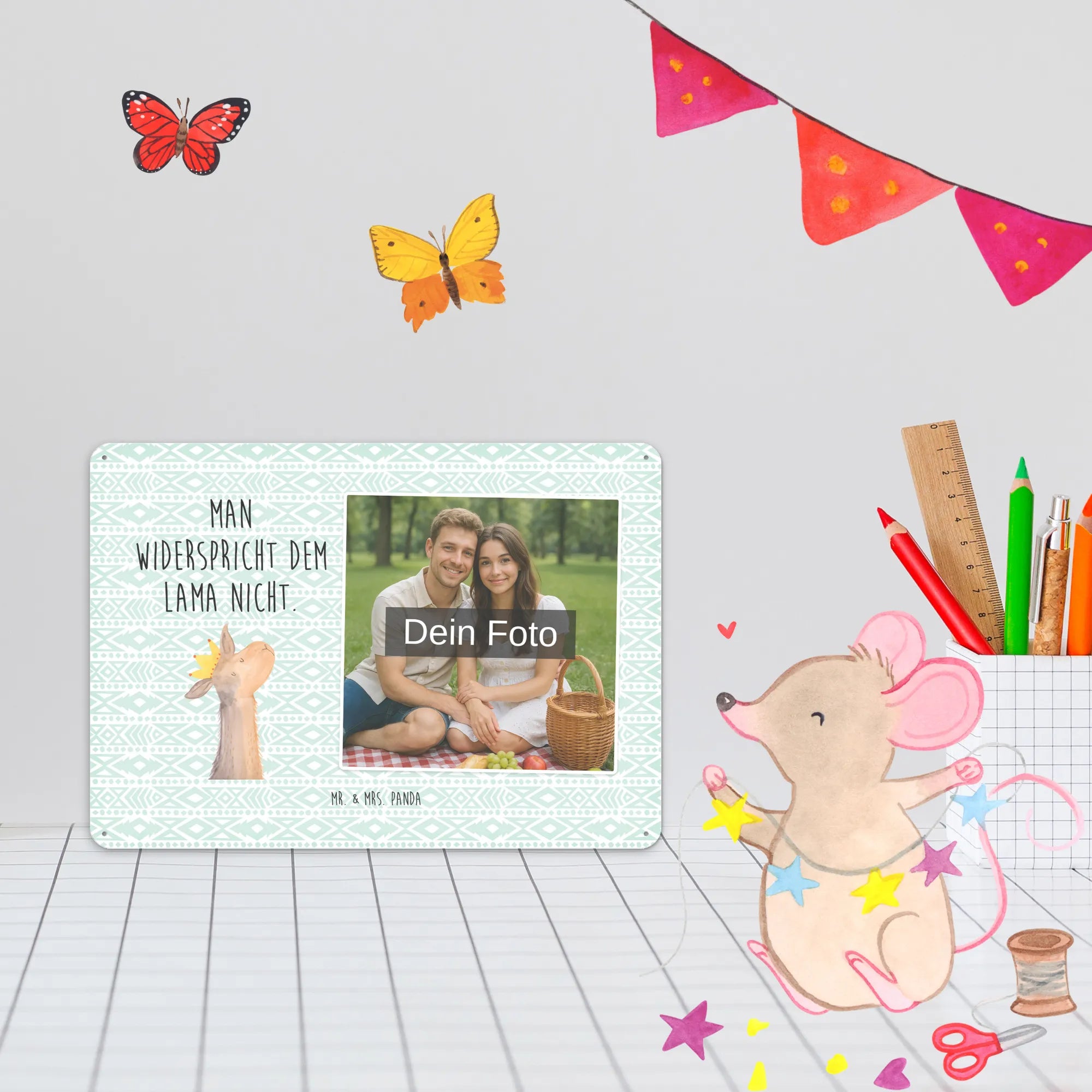 Spersonalizowany metalowy szyld ze zdjęciem Głowa lamy król - DIN A6