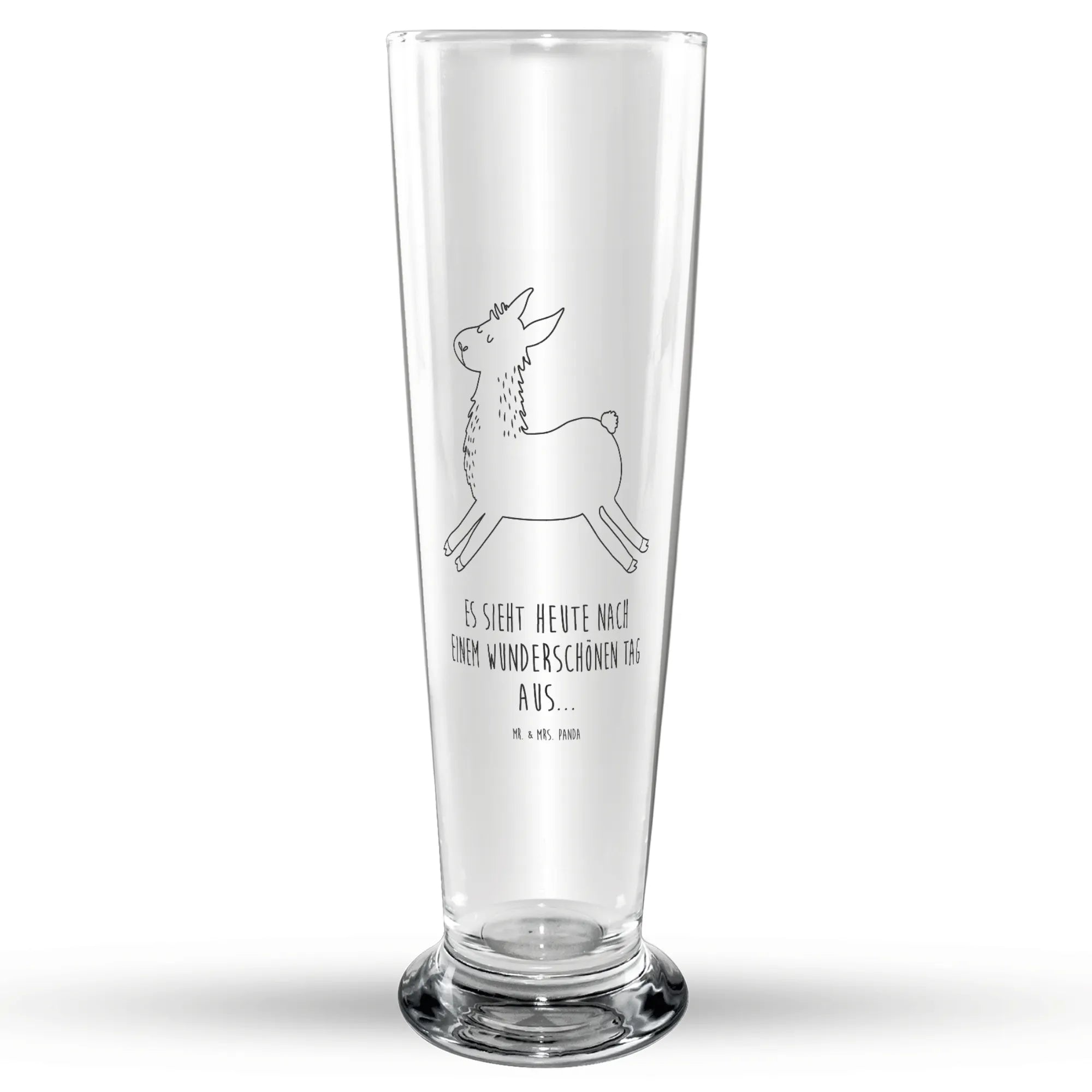 Das stilvolle Bierglas mit dem fröhlichen und springenden Lama-Motiv bringt direkt ein Lächeln in Deinen Tag. Die hochwertige Lasergravur macht aus jedem Glas etwas ganz Besonderes. Die Aufschrift "Es sieht heute nach einem wunderschönen Tag aus..." passt perfekt zu jedem Anlass und stimmt Dich auf einen fröhlichen Tag ein. Außerdem ist dieses Glas spülmaschinengeeignet, sodass Du mehr Zeit mit dem Genießen und Feiern verbringen kannst, statt mit dem Abspülen!