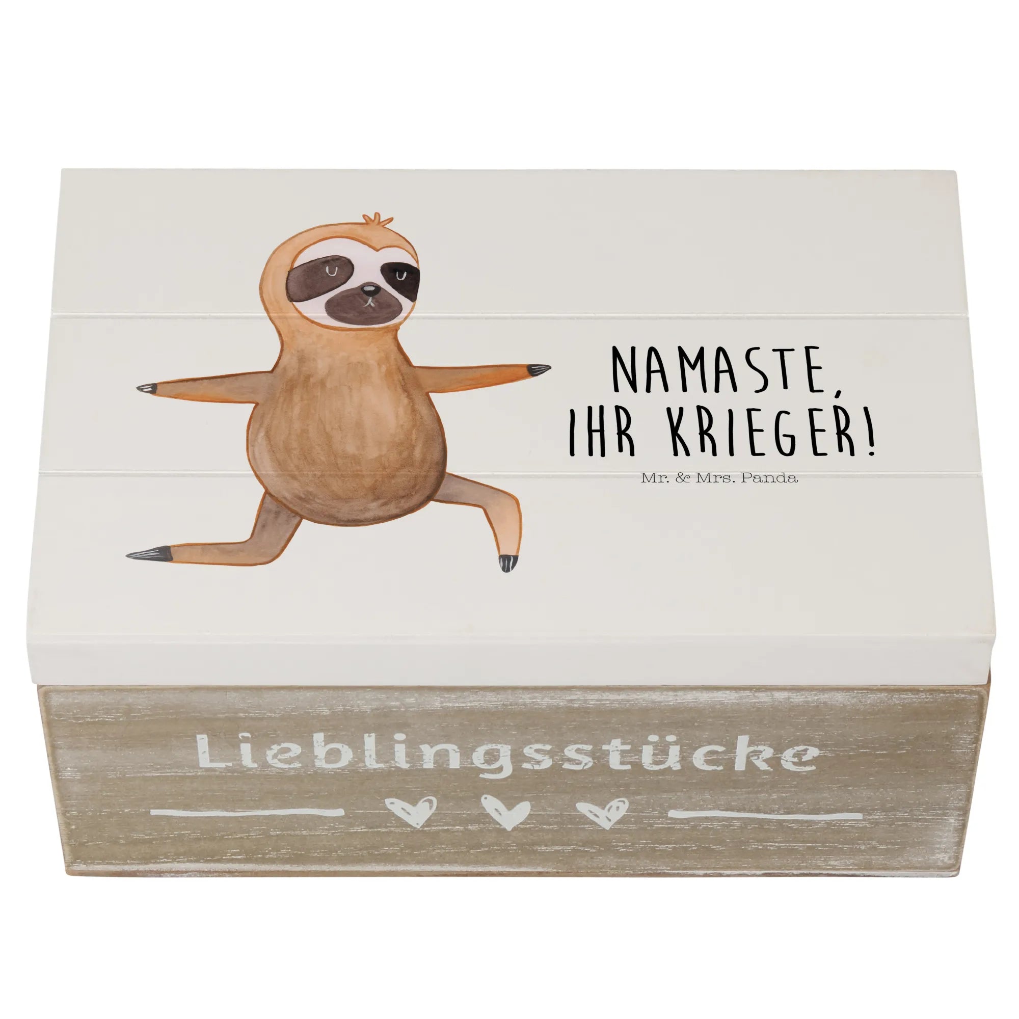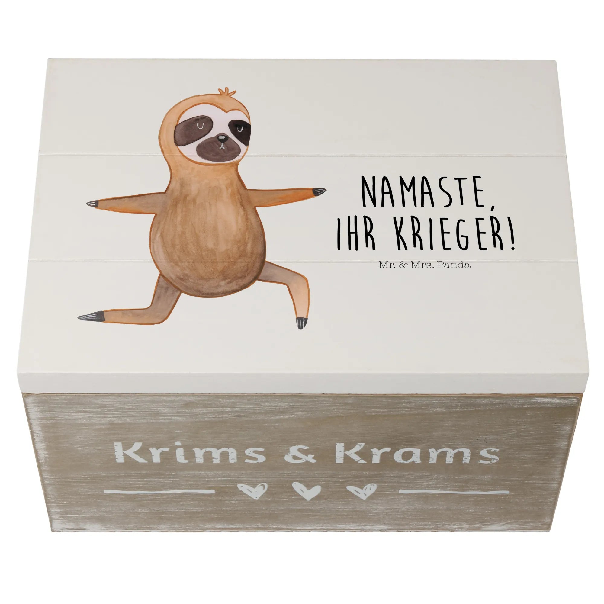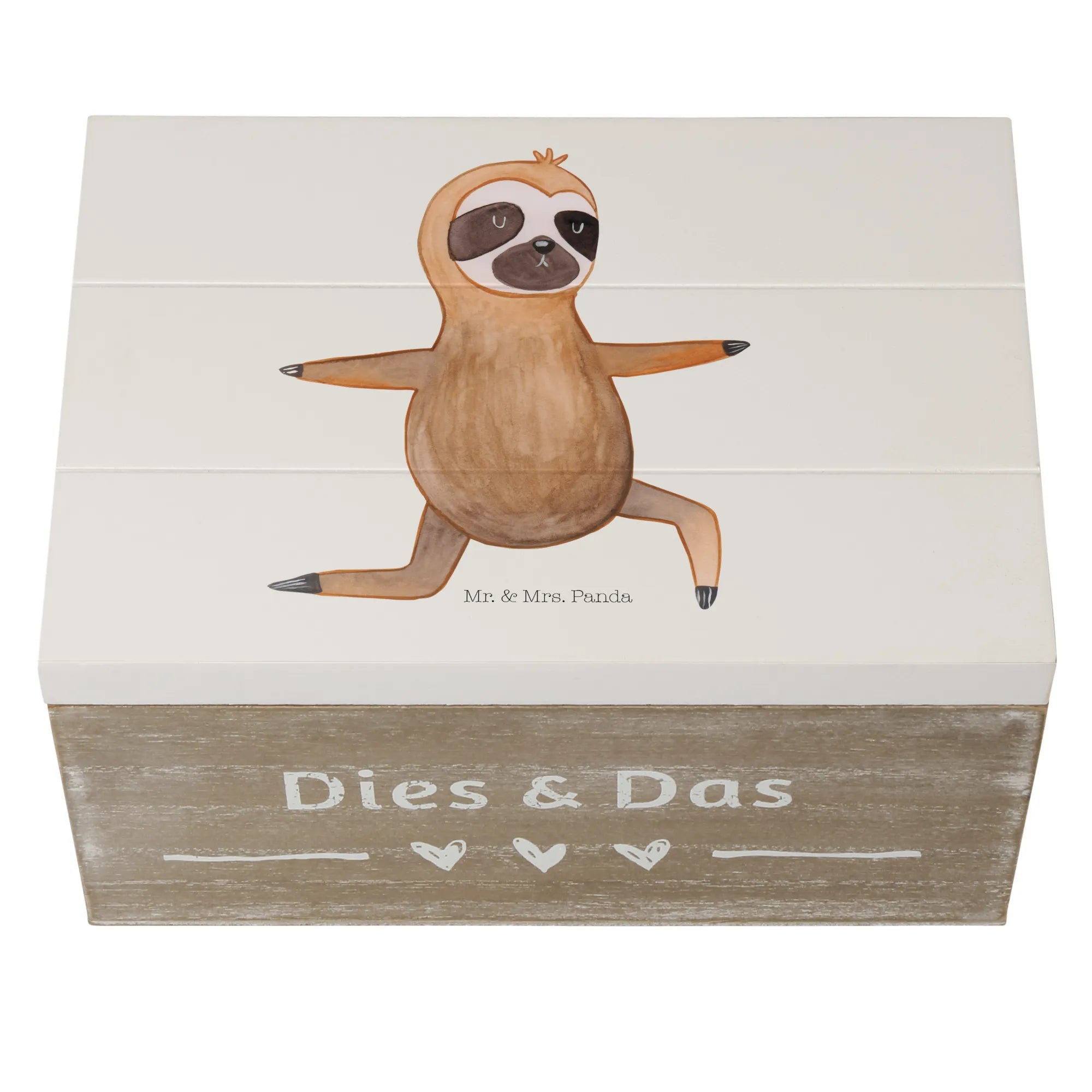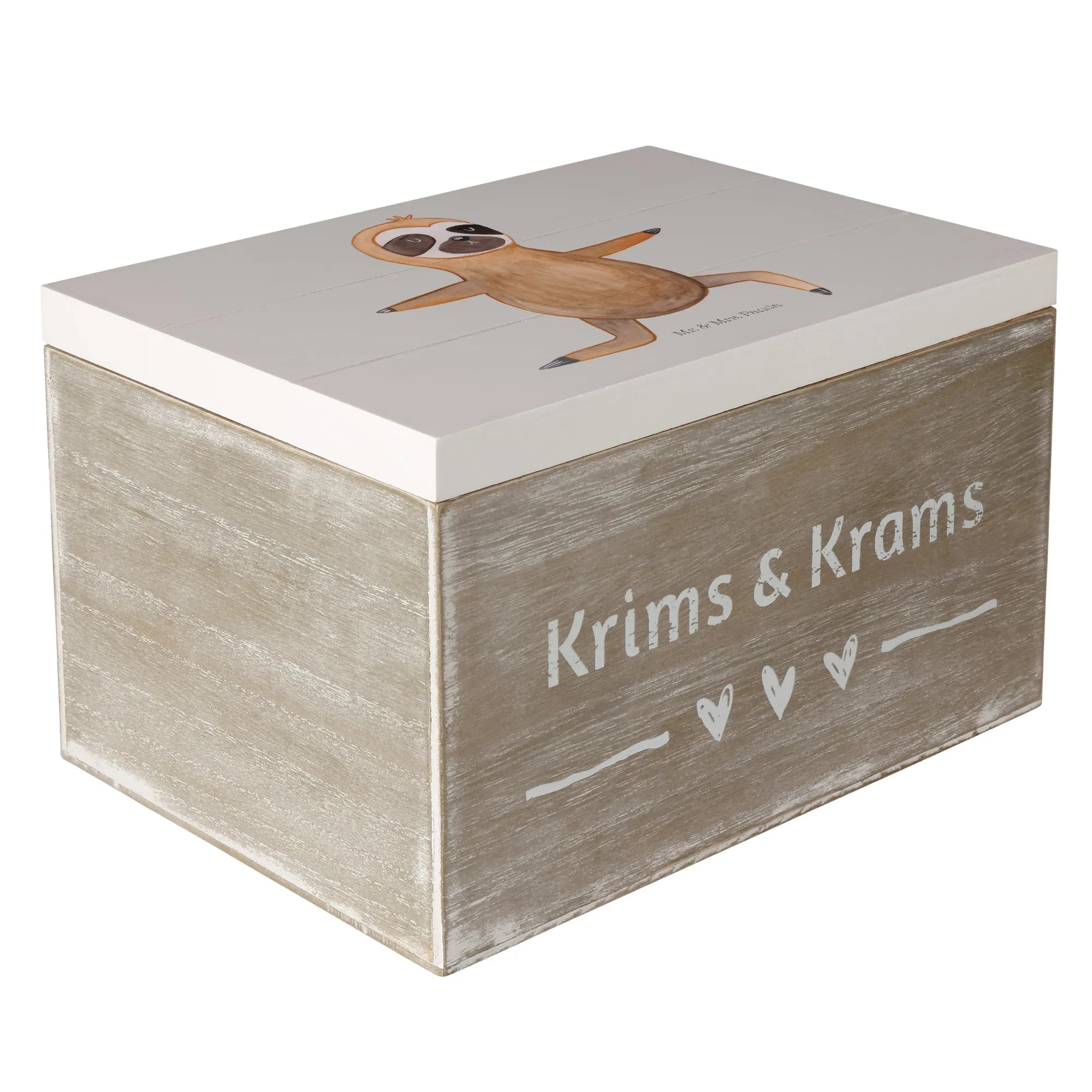 Skrzynia drewniana leniwiec Joga - 22 x 15 cm - z napisem - biały