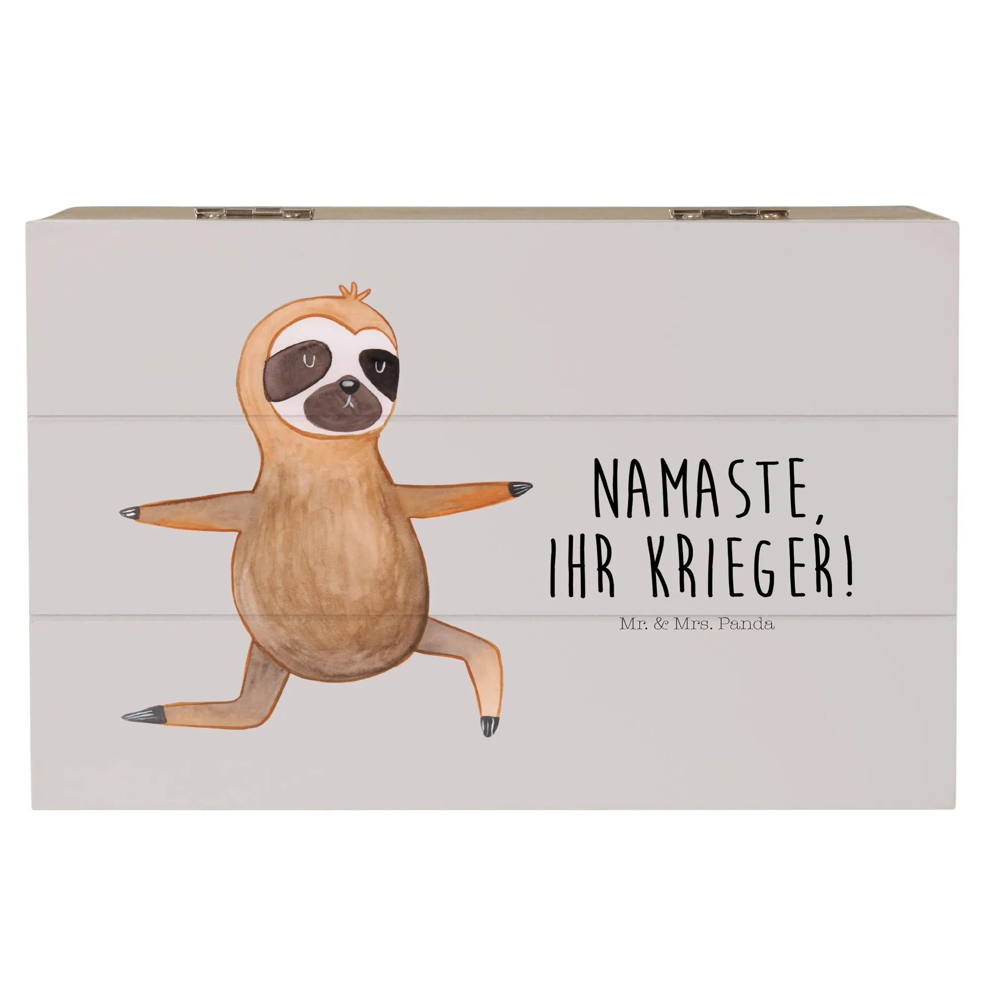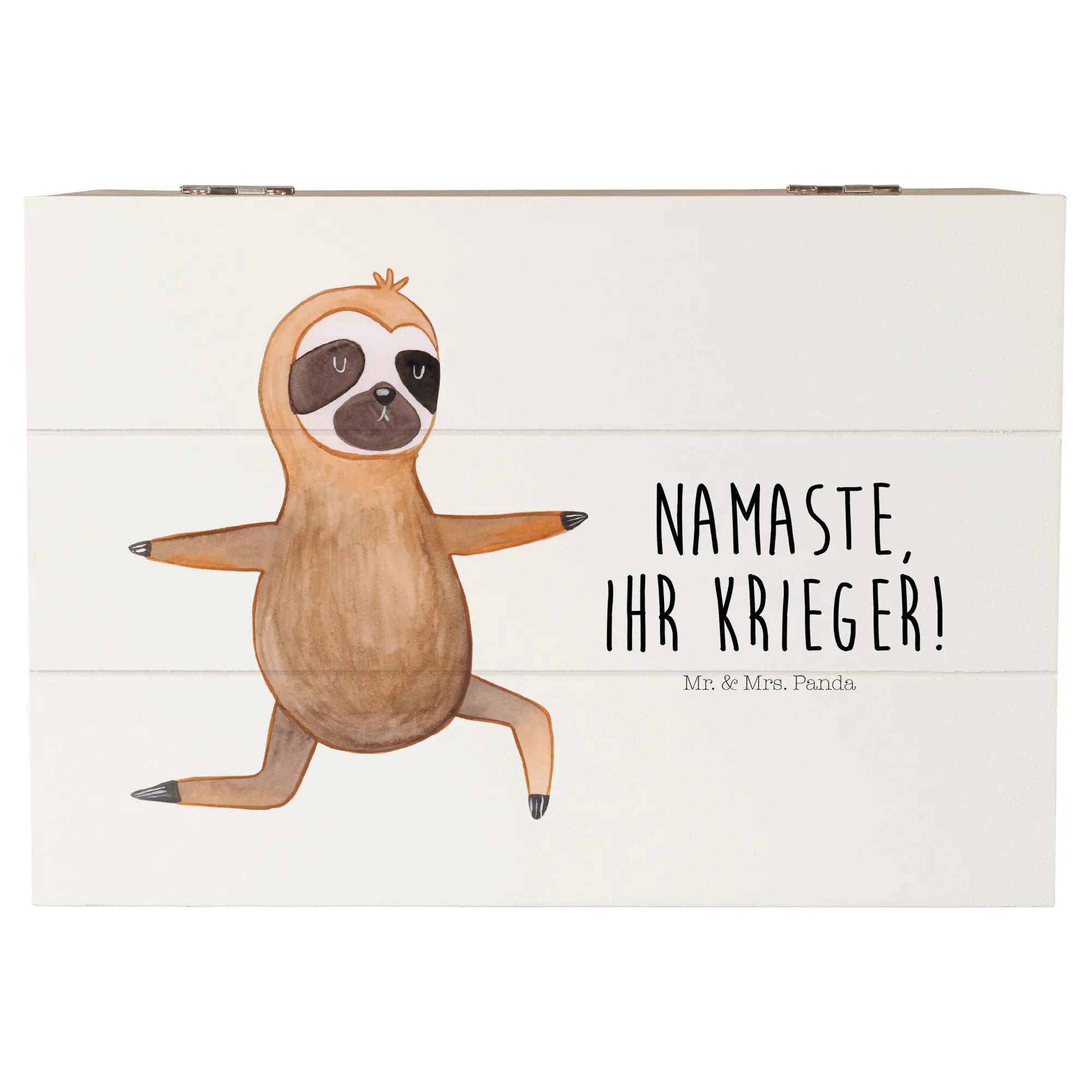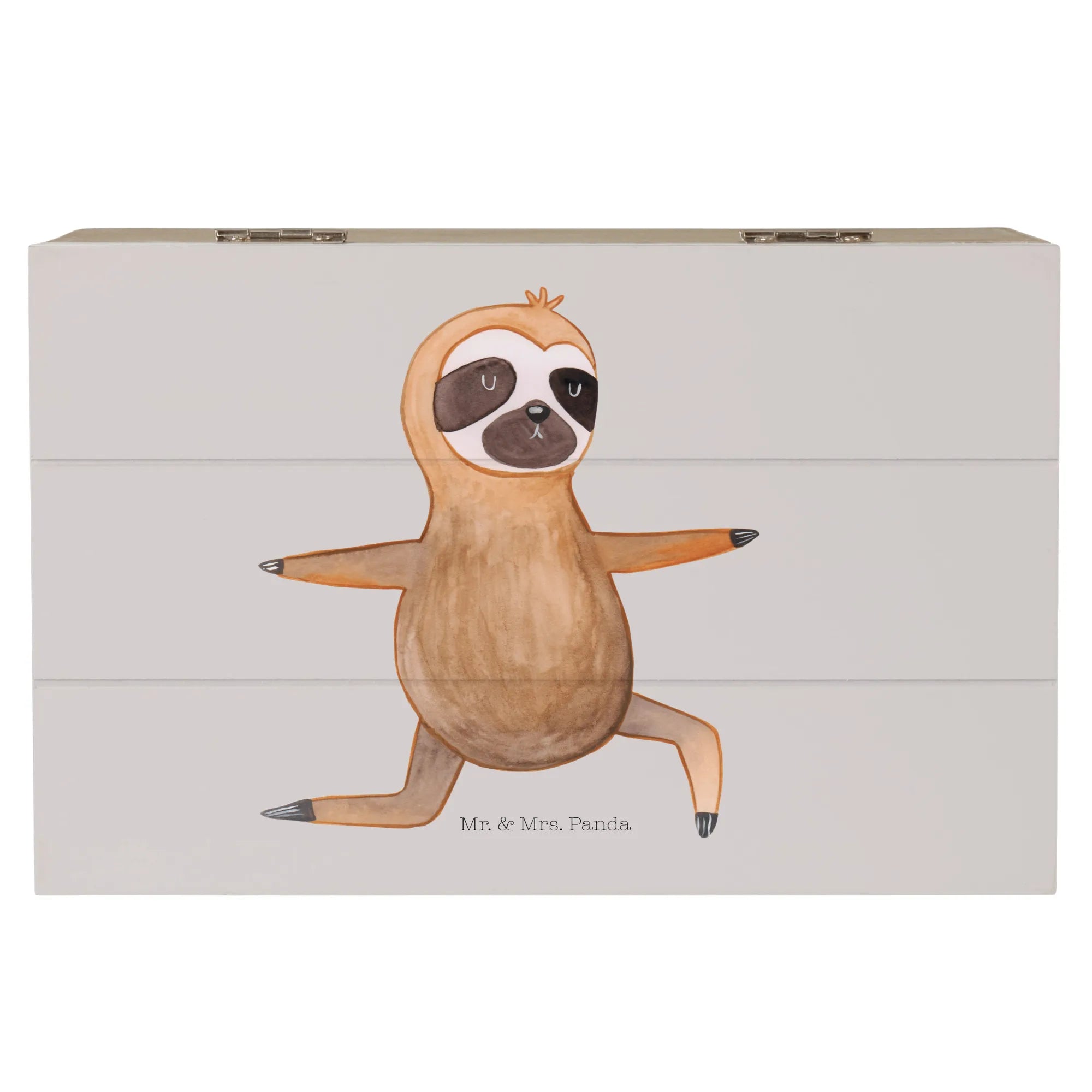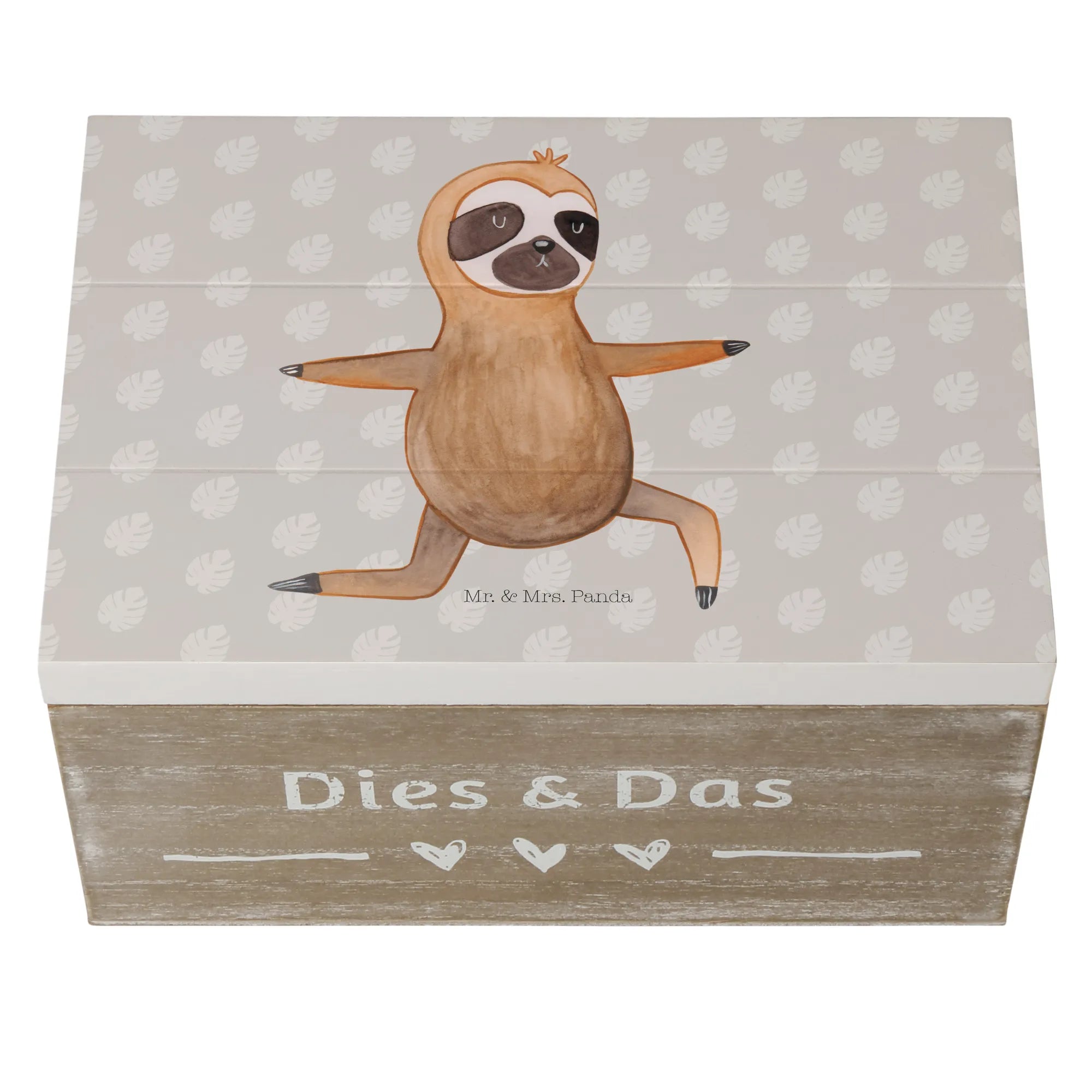 Skrzynia drewniana leniwiec Joga - 22 x 15 cm - z napisem - biały