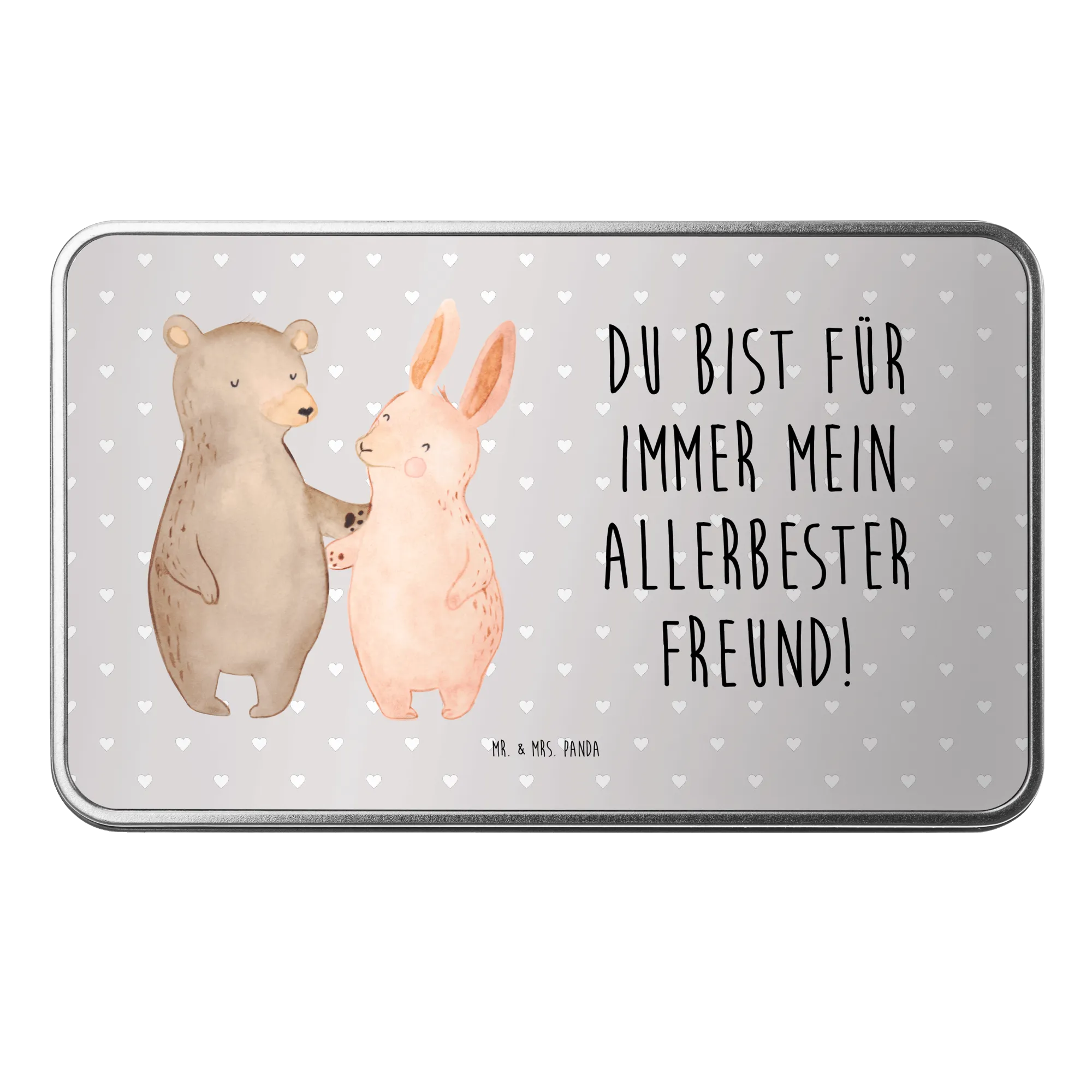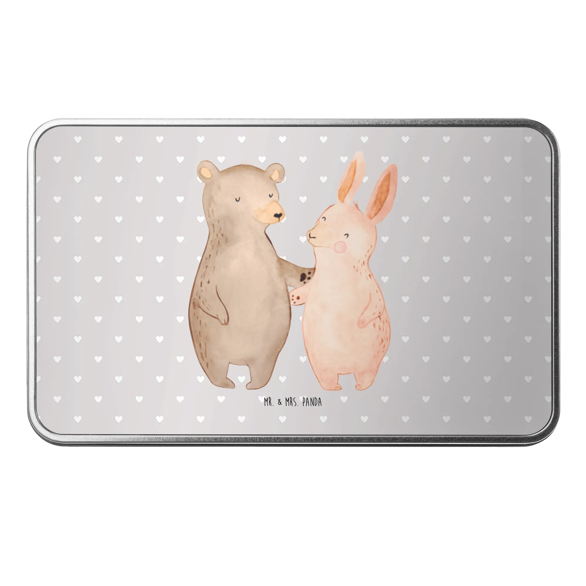 Metalowa puszka Niedźwiedź i królik Przytulać - z napisem