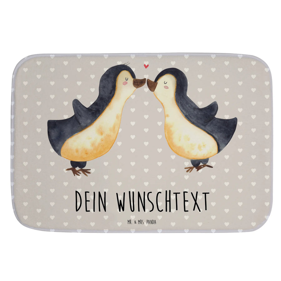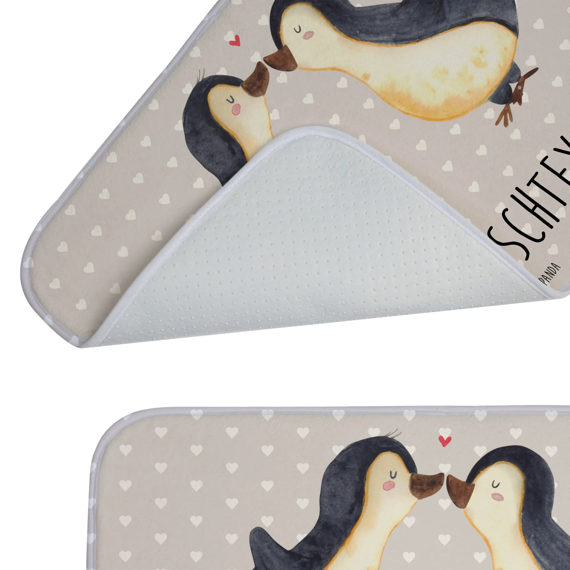 Unser personalisierter Badvorleger "Pinguine Kuss" von Mr. & Mrs. Panda ist das perfekte Geschenk für jeden, der Liebe in seinem Badezimmer verbreiten möchte! Stell dir vor, wie du morgens aus der Dusche steigst und auf einen wunderschönen, flauschigen Badvorleger trittst, der nicht nur für Wärme und Komfort sorgt, sondern auch dein Herz zum Schmelzen bringt. Mit einem bezaubernden Motiv von zwei verliebten Pinguinen, die sich zärtlich küssen, und dem liebevollen Slogan "Wenn ich an dich denke, kribbelt es in meinem Bauch und ich muss grundlos lächeln", bringt dieser Badvorleger eine besondere Note in deine Wohlfühloase. Die Pinguine in sanften Gelb- und Grautönen versprühen eine warme und harmonische Ausstrahlung, die an die schönsten Momente der Zuneigung erinnert.