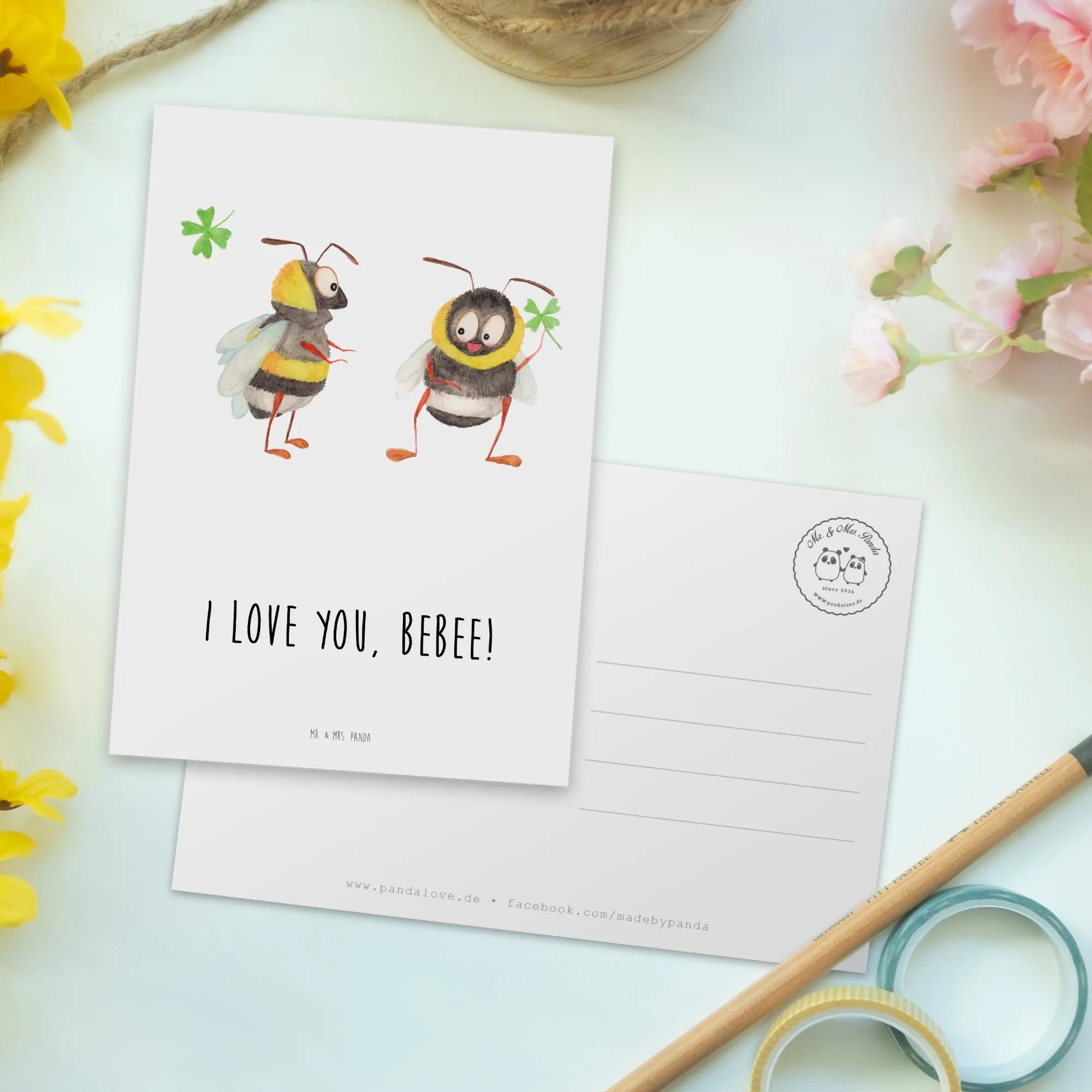 Pocztówka pszczoły para - biały