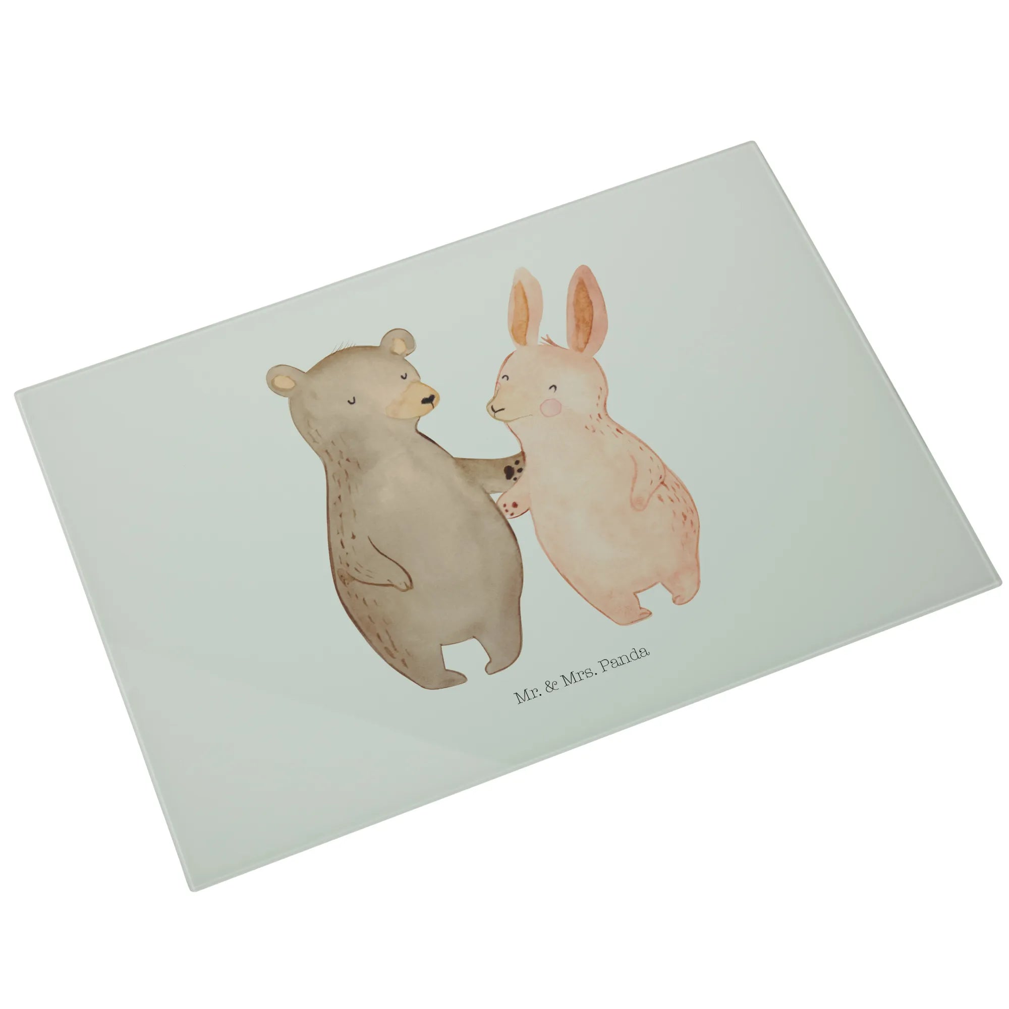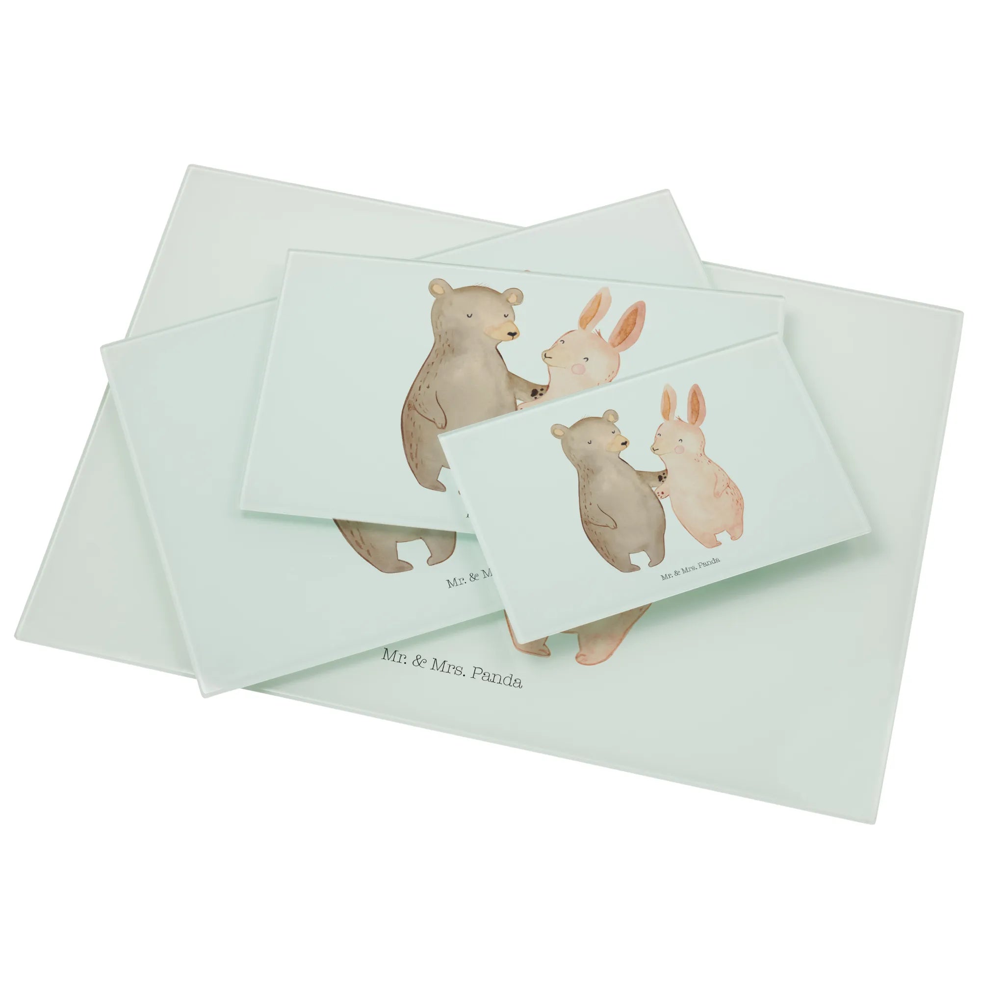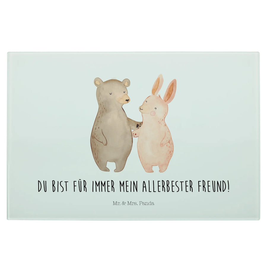XL Szklana Deska do Krojenia Niedźwiedź i królik Przytulać - Medium Glas Schneidbrett - z napisem - biały