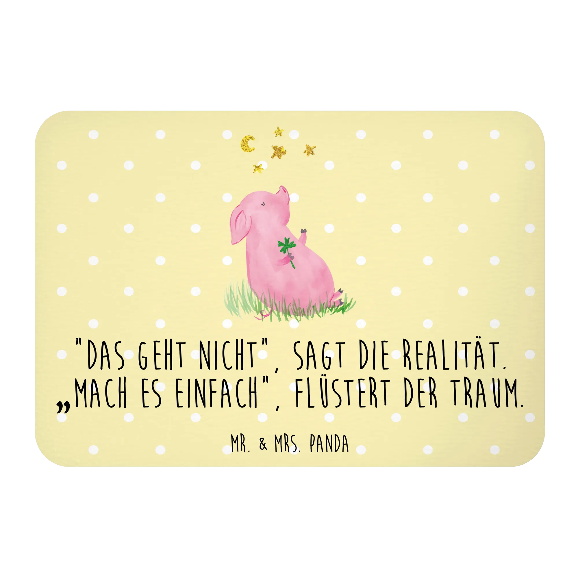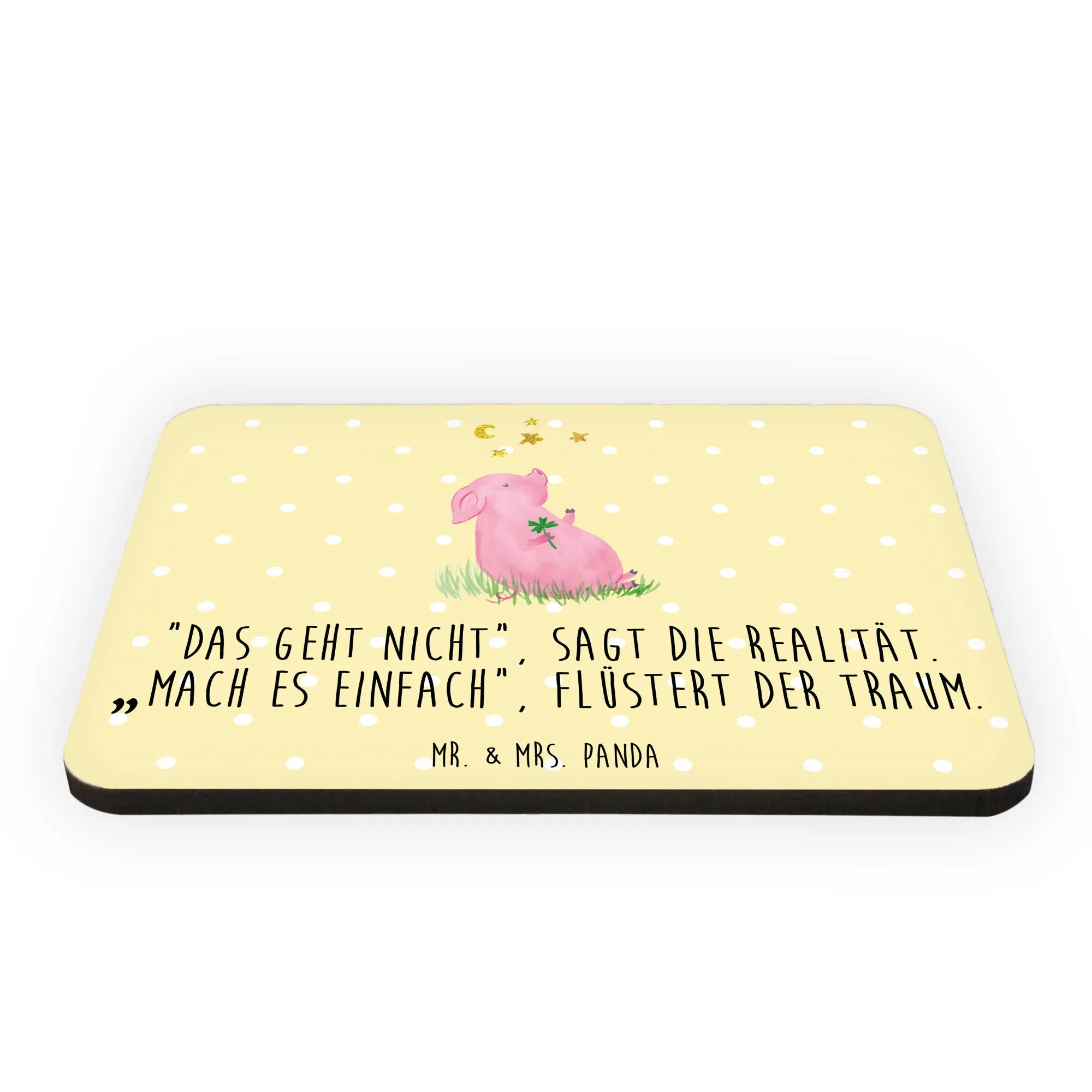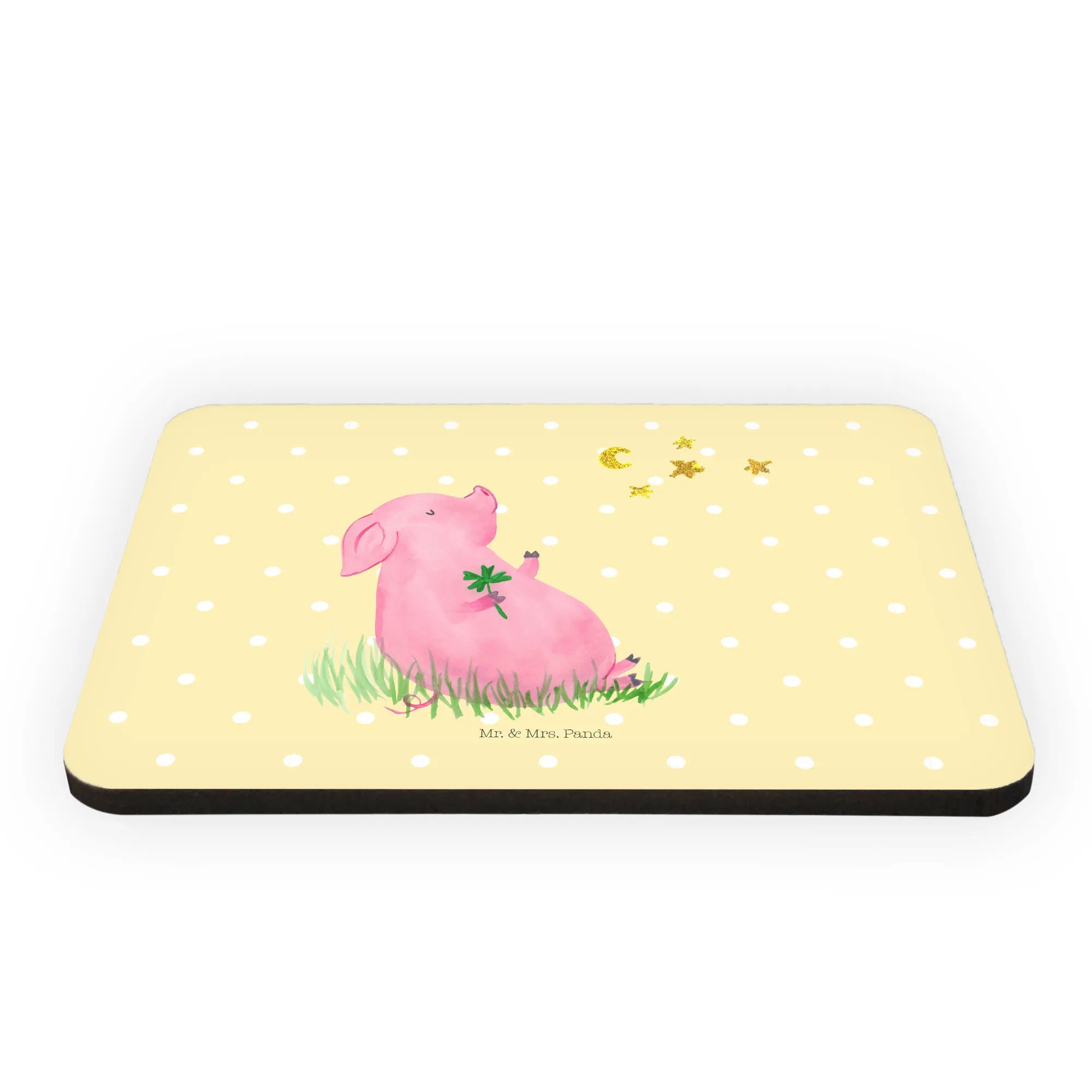 Magnes świnia Szczęście - z napisem - Żółty Pastel
