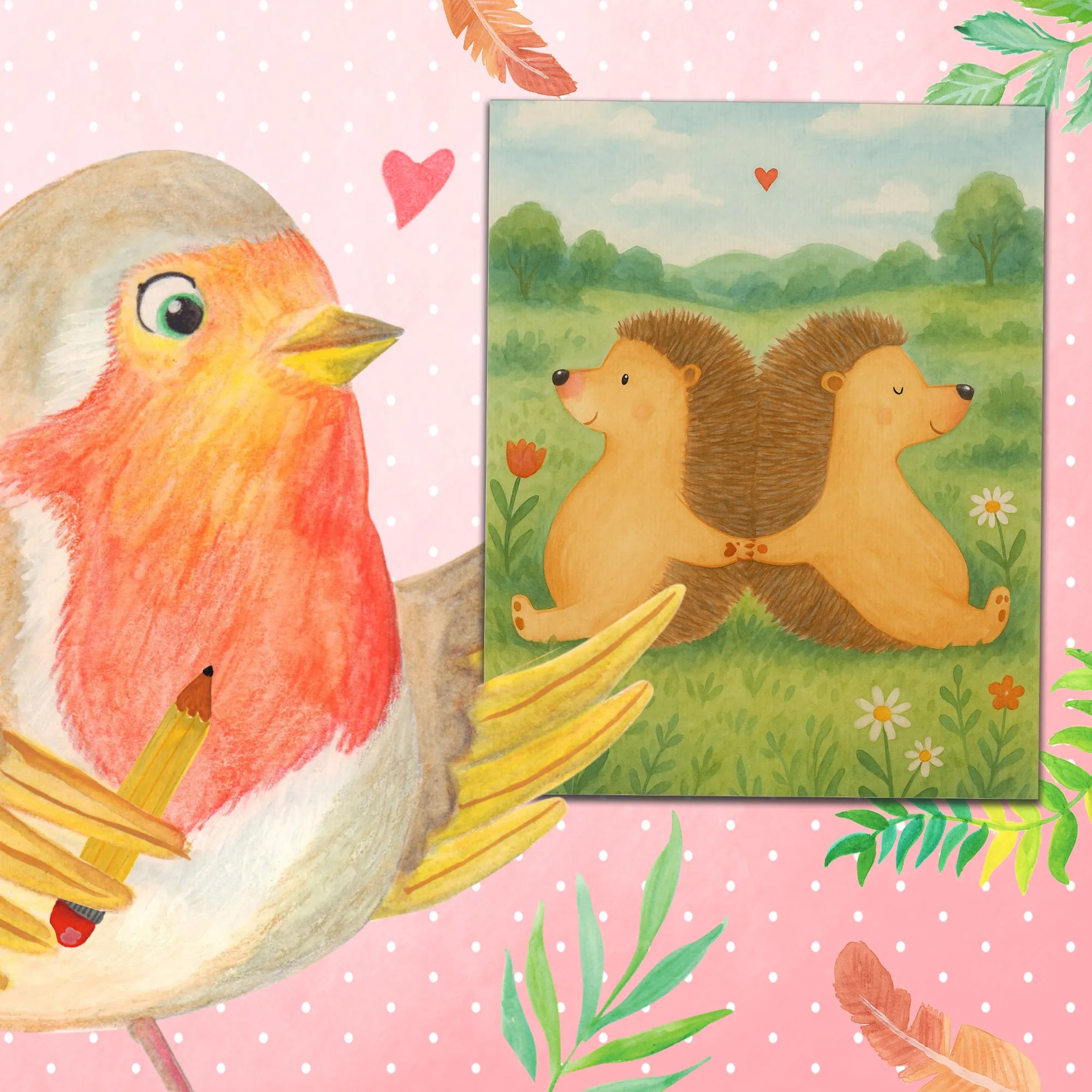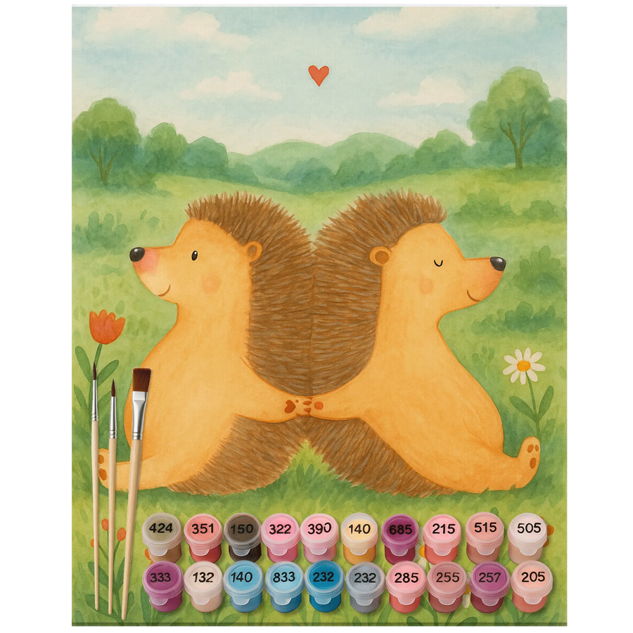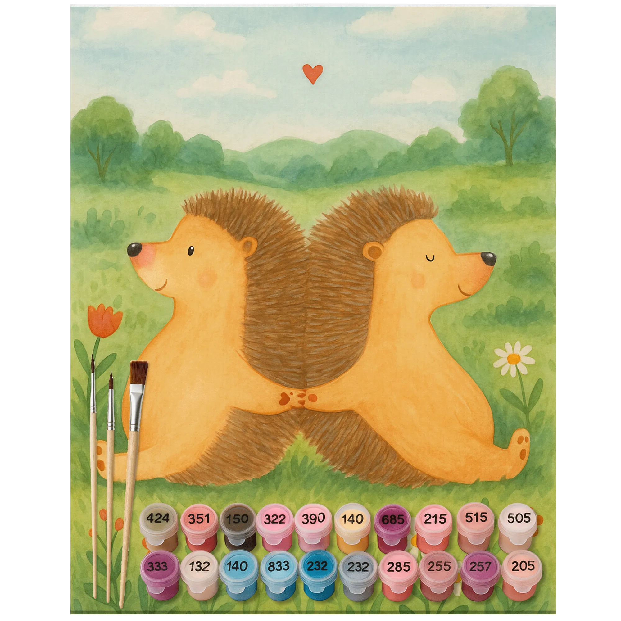 Malowanie według numerów Jeże trzymające się za łapki Design - Ohne Rahmen - 24 Farben (Standard)