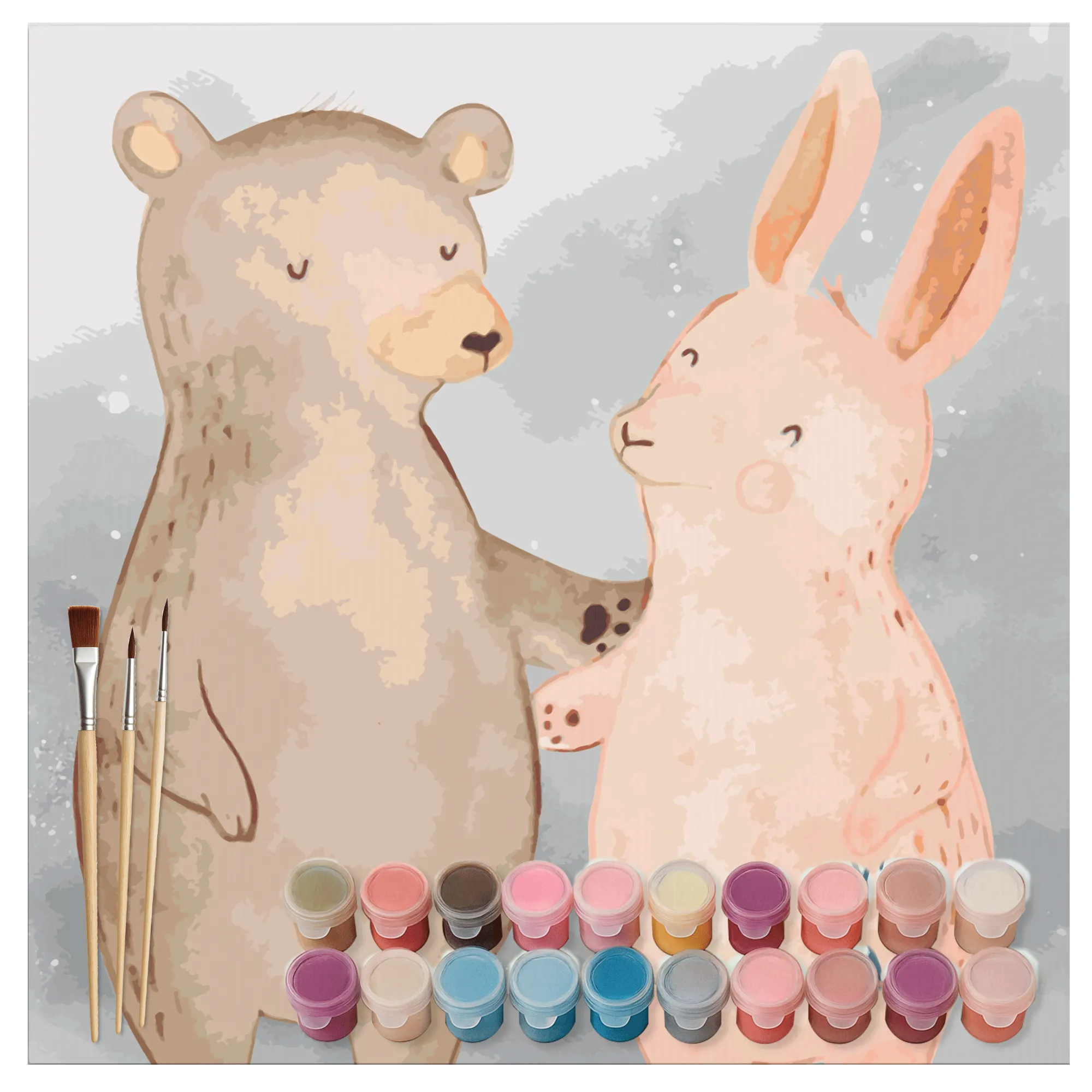 Entdecke die wundervolle Welt des Malens mit unserem Malen nach Zahlen Set "Bär Hase Umarmen" aus der Liebe Kollektion von Mr. & Mrs. Panda! Dieses besondere Kunstwerk zeigt einen fröhlichen Bären und einen süßen Hasen, die sich innig umarmen. Es strahlt eine warme Atmosphäre aus und ist einfach perfekt für kreative Seelen, die gerne ihre eigenen Meisterwerke erschaffen möchten.