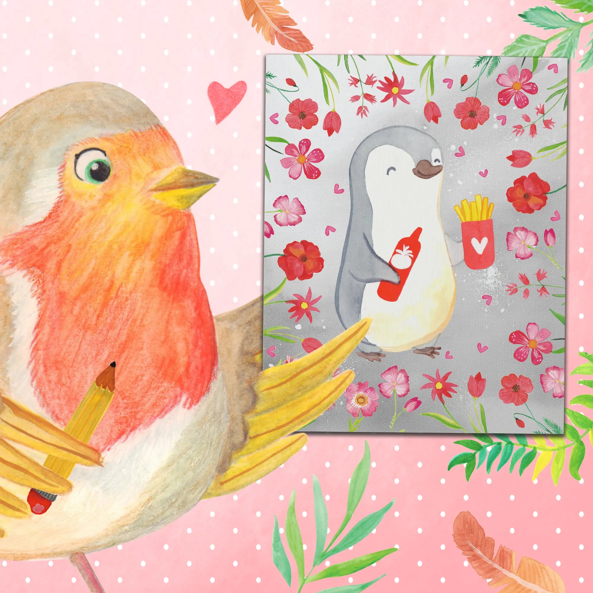 Verschenke Freude und Kreativität mit dem Malen nach Zahlen Set "Pinguin Pommes" von Mr. & Mrs. Panda! Dieses bezaubernde Kunstwerk zeigt einen fröhlichen Pinguin, der mit viel Liebe eine Portion Pommes Frites und einen Ketchup-Becher präsentiert. Es ist nicht nur ein Spaß für dich selbst, sondern auch das perfekte Geschenk für deine Liebsten, sei es zum Valentinstag, Jahrestag oder einfach nur als liebevolles Mitbringsel.