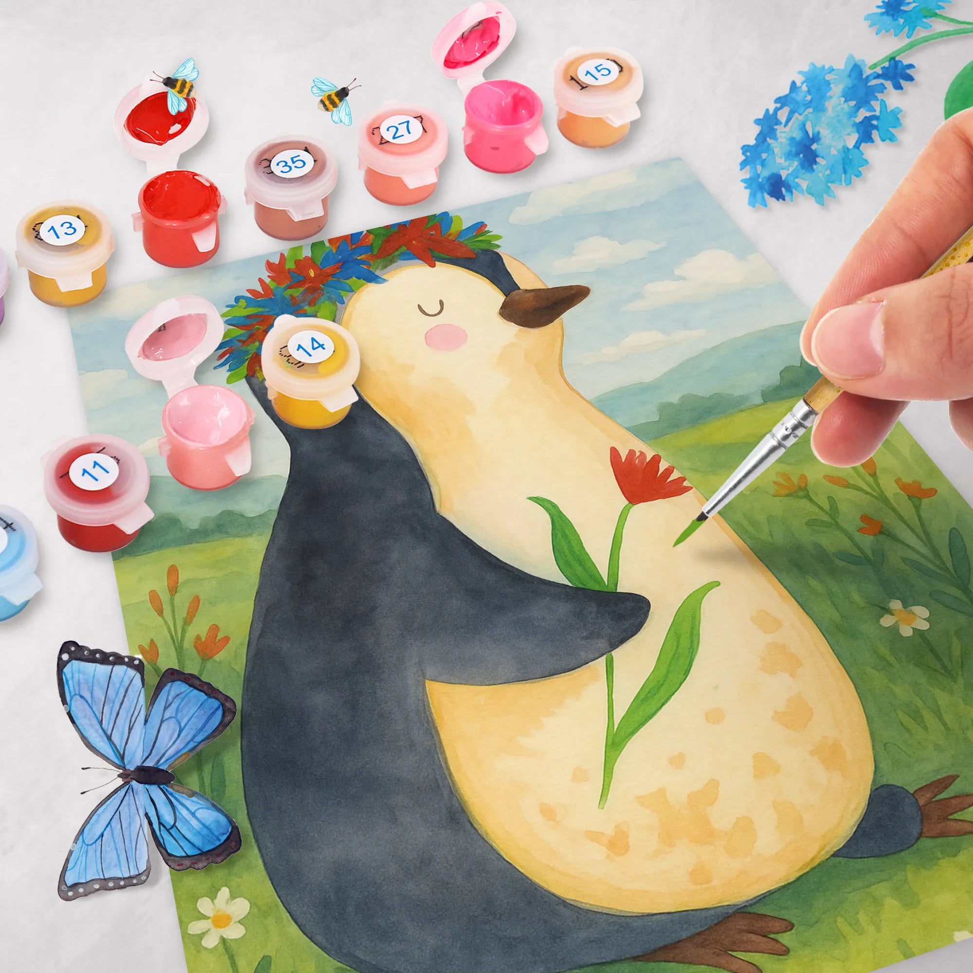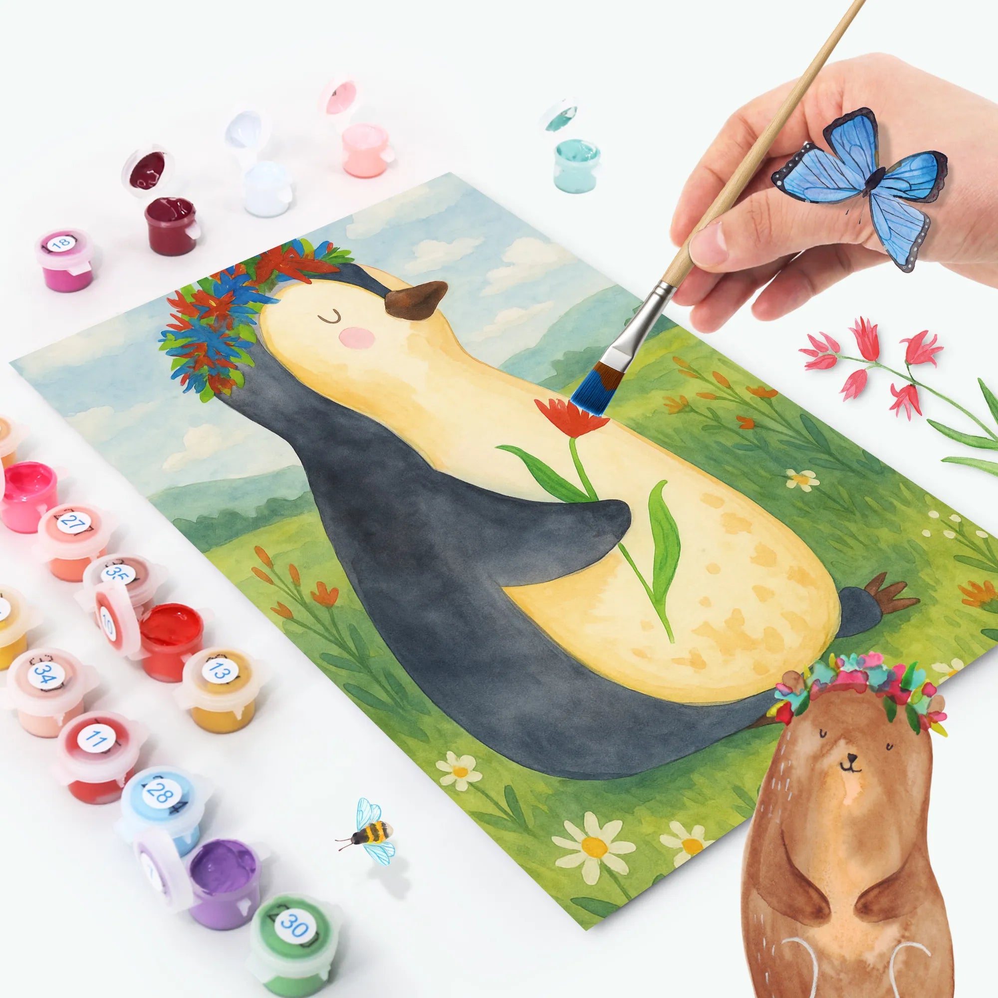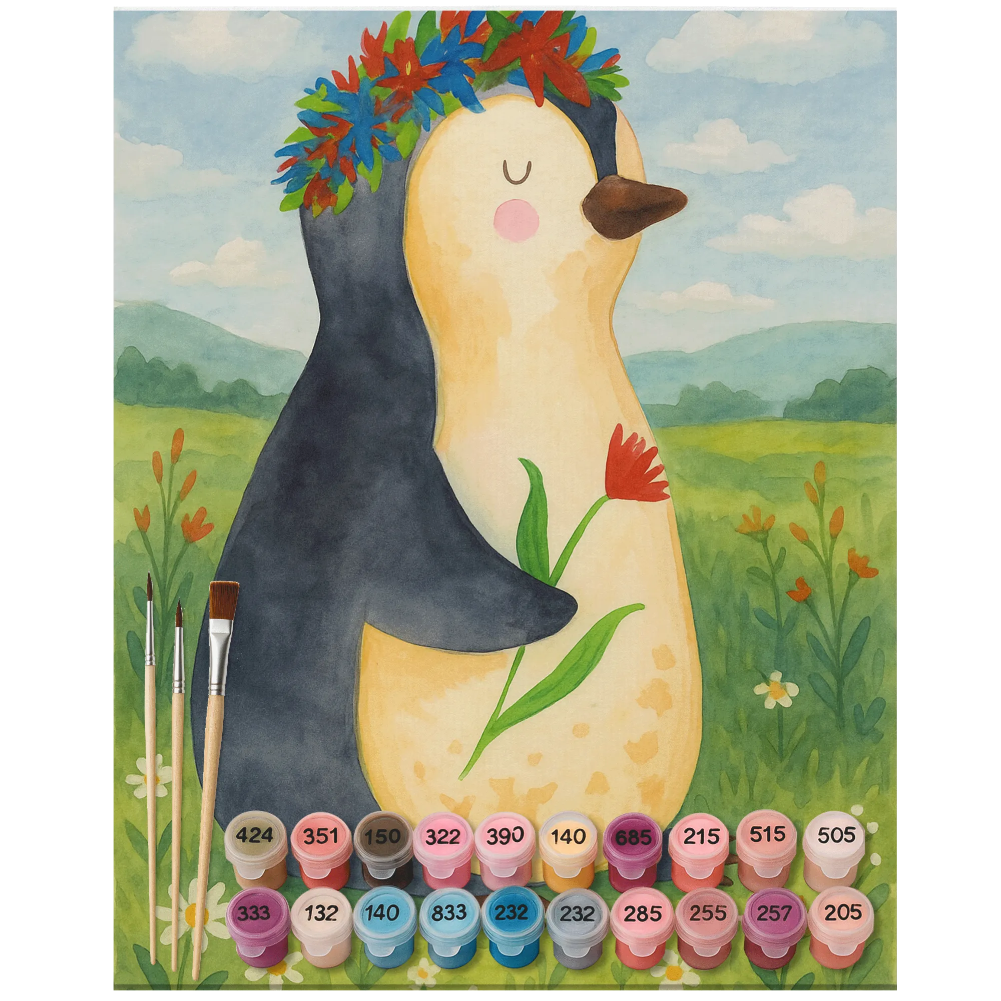 Malowanie według numerów pingwin kwiaty Design - Ohne Rahmen - 24 Farben (Standard)