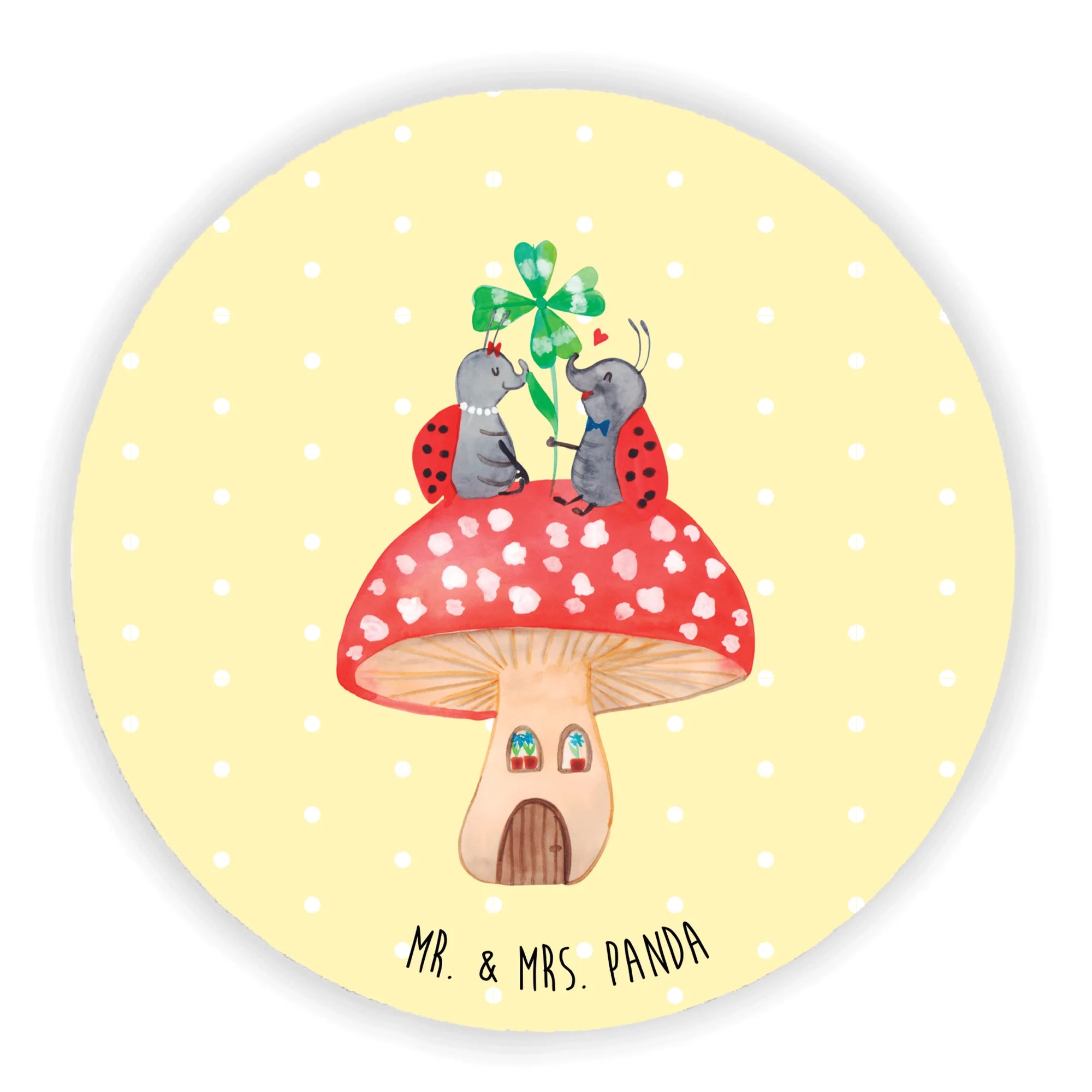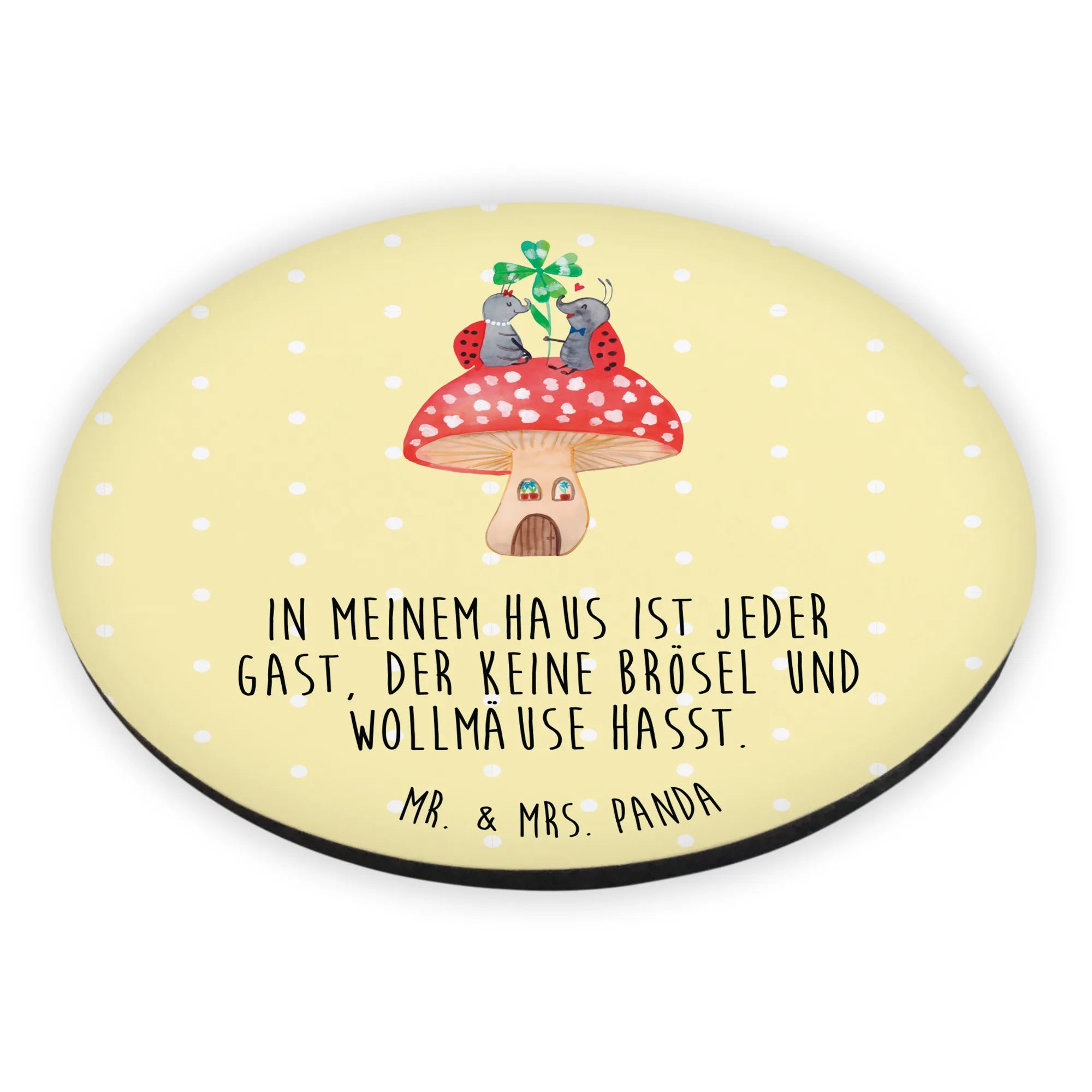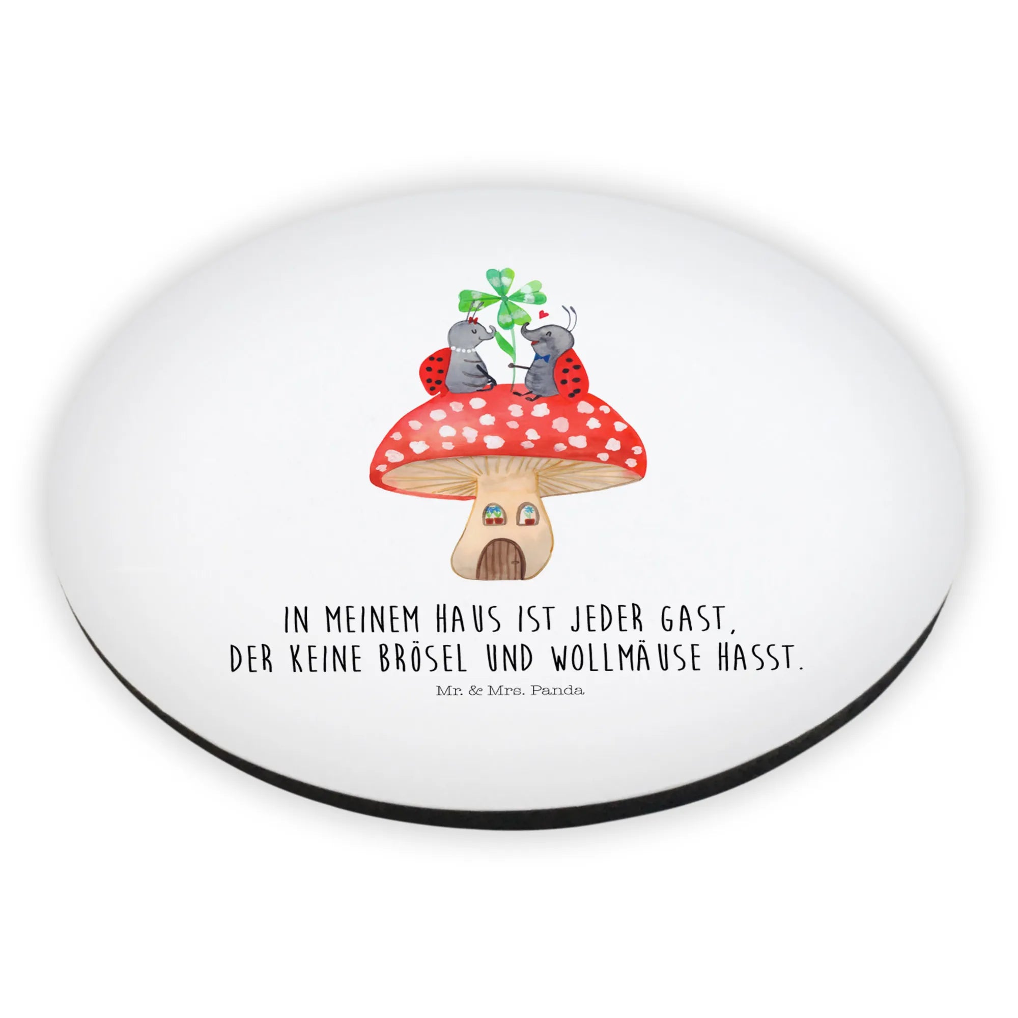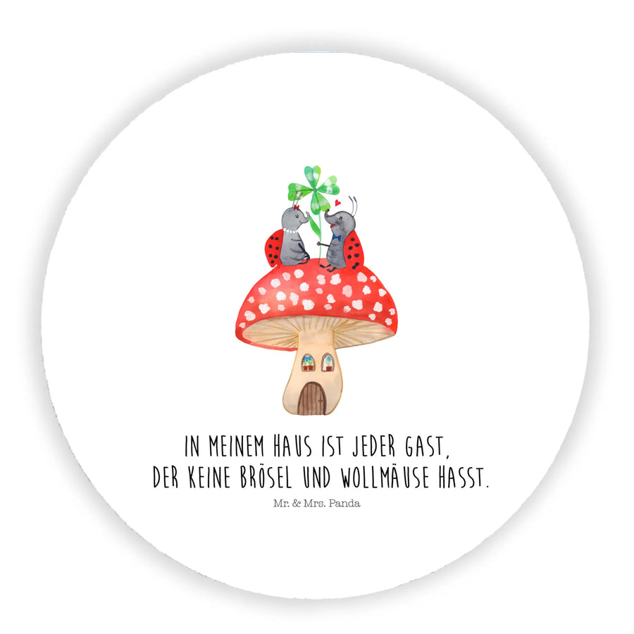 Okrągły magnes biedronka Muchomor - z napisem - Biały