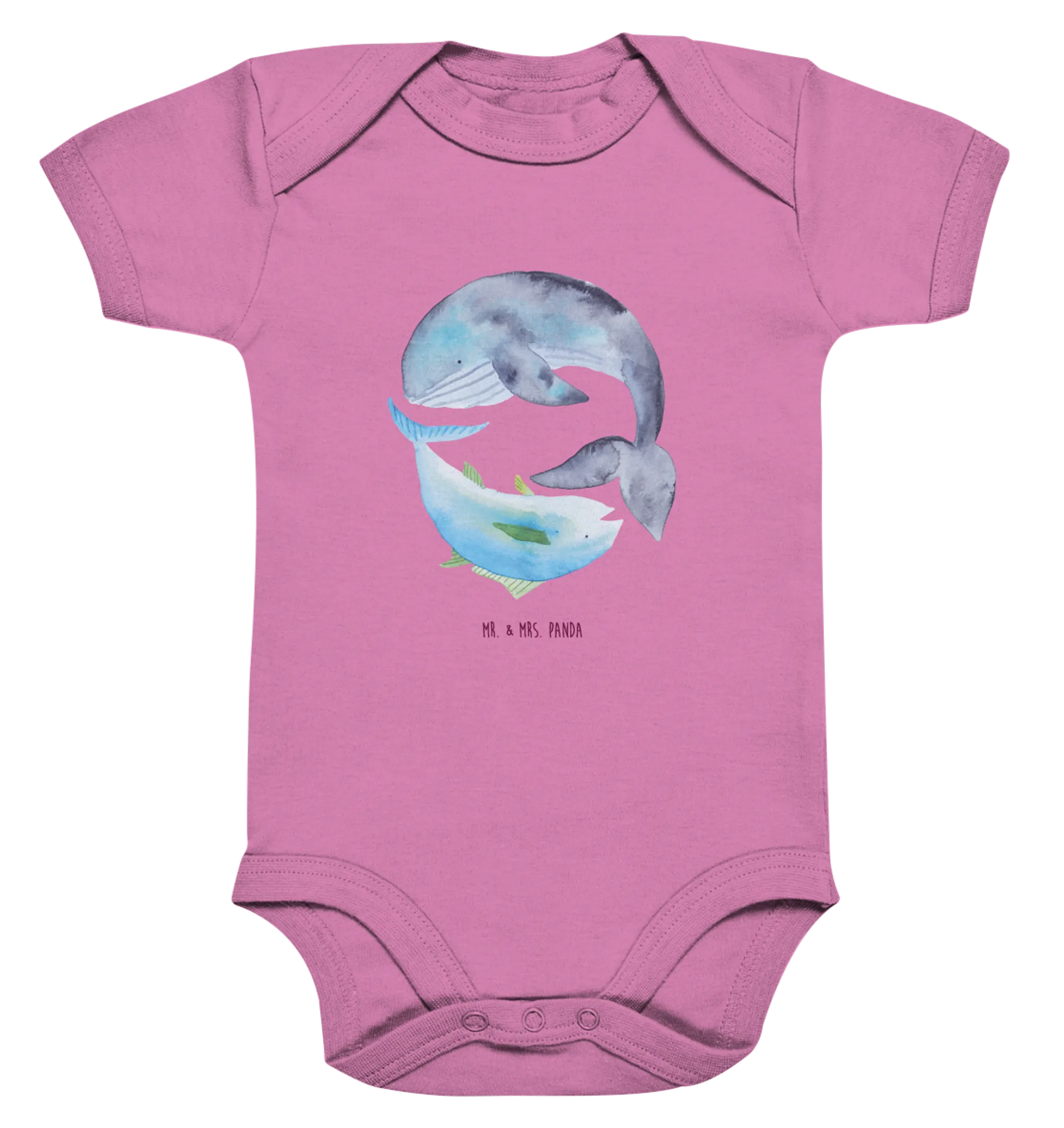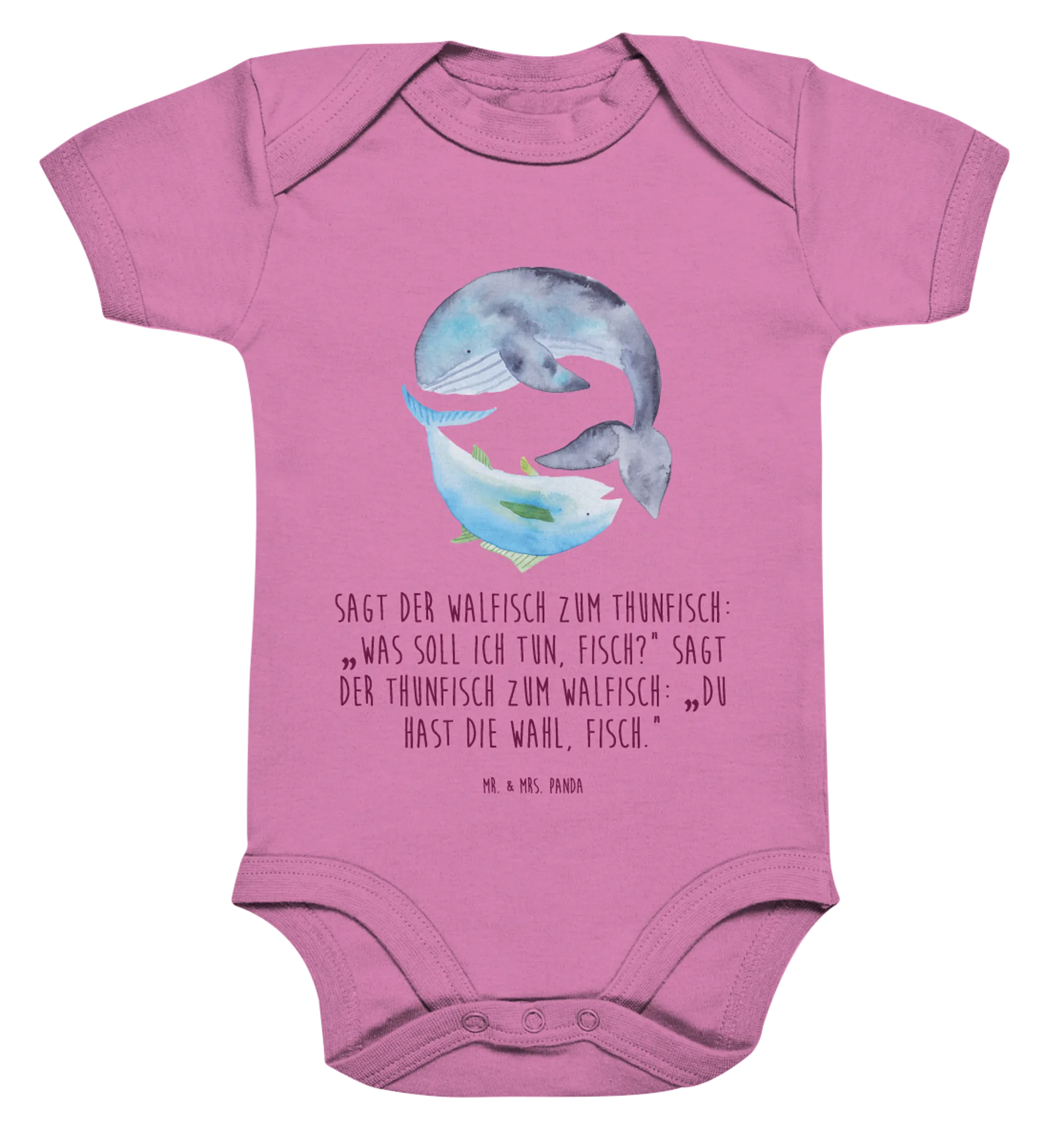 Organiczne body dla niemowląt wieloryb tuńczyk - 1. - 3. Monat - z napisem - Heather Grey