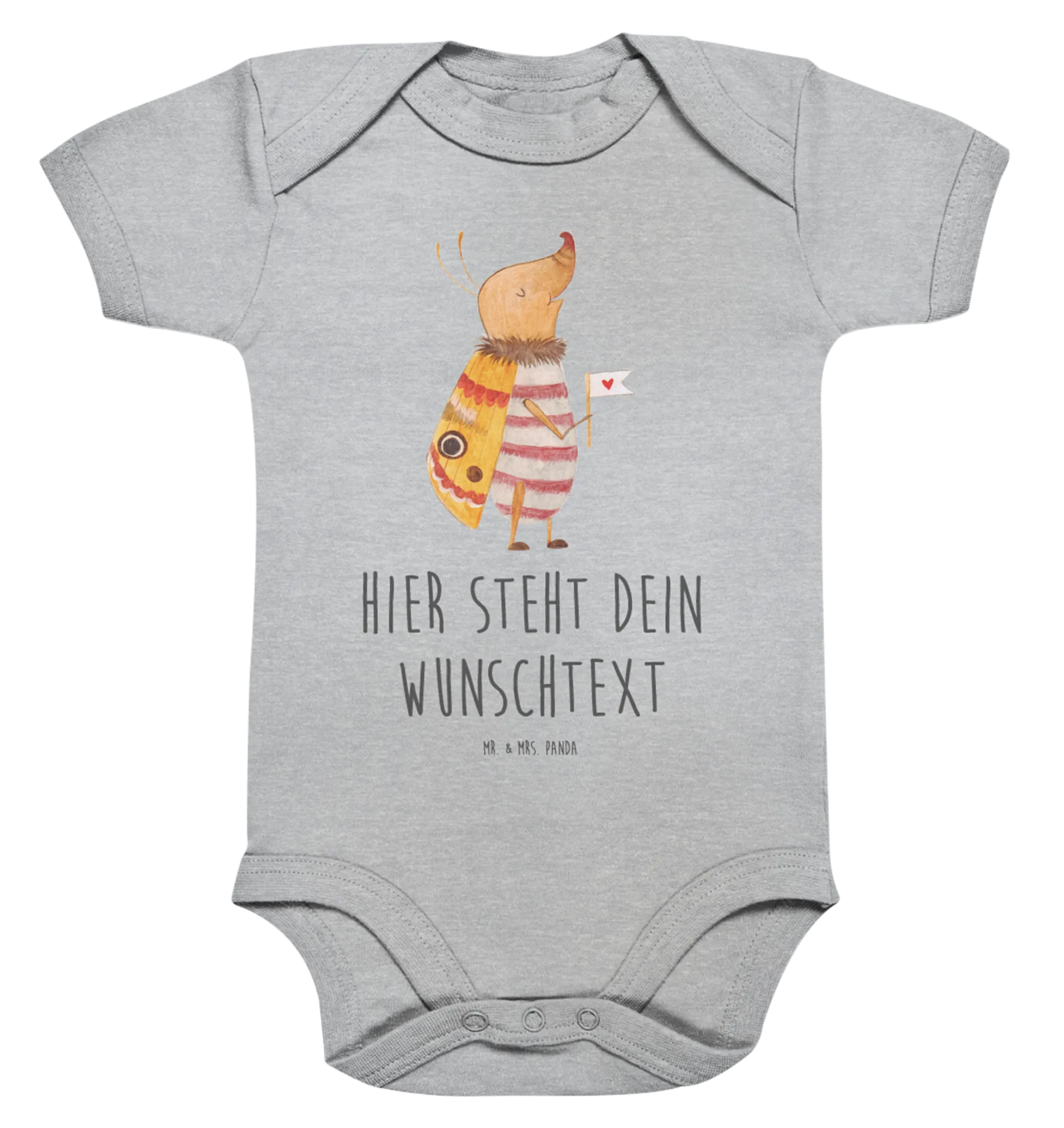 Der personalisierte Baby Body mit dem süßen Motiv "Nachtfalter mit Fähnchen" aus der Sammlung Small World von Mr. & Mrs. Panda ist das perfekte Geschenk für frisch gebackene Eltern oder als niedliches Geschenk zur Babyparty. Der Baby Body in einem sanften Heather Grey ist aus hochwertiger Öko-Baumwolle gefertigt, und bietet somit nicht nur einen hohen Tragekomfort, sondern auch eine Hautfreundlichkeit, die für die Kleinsten besonders wichtig ist.