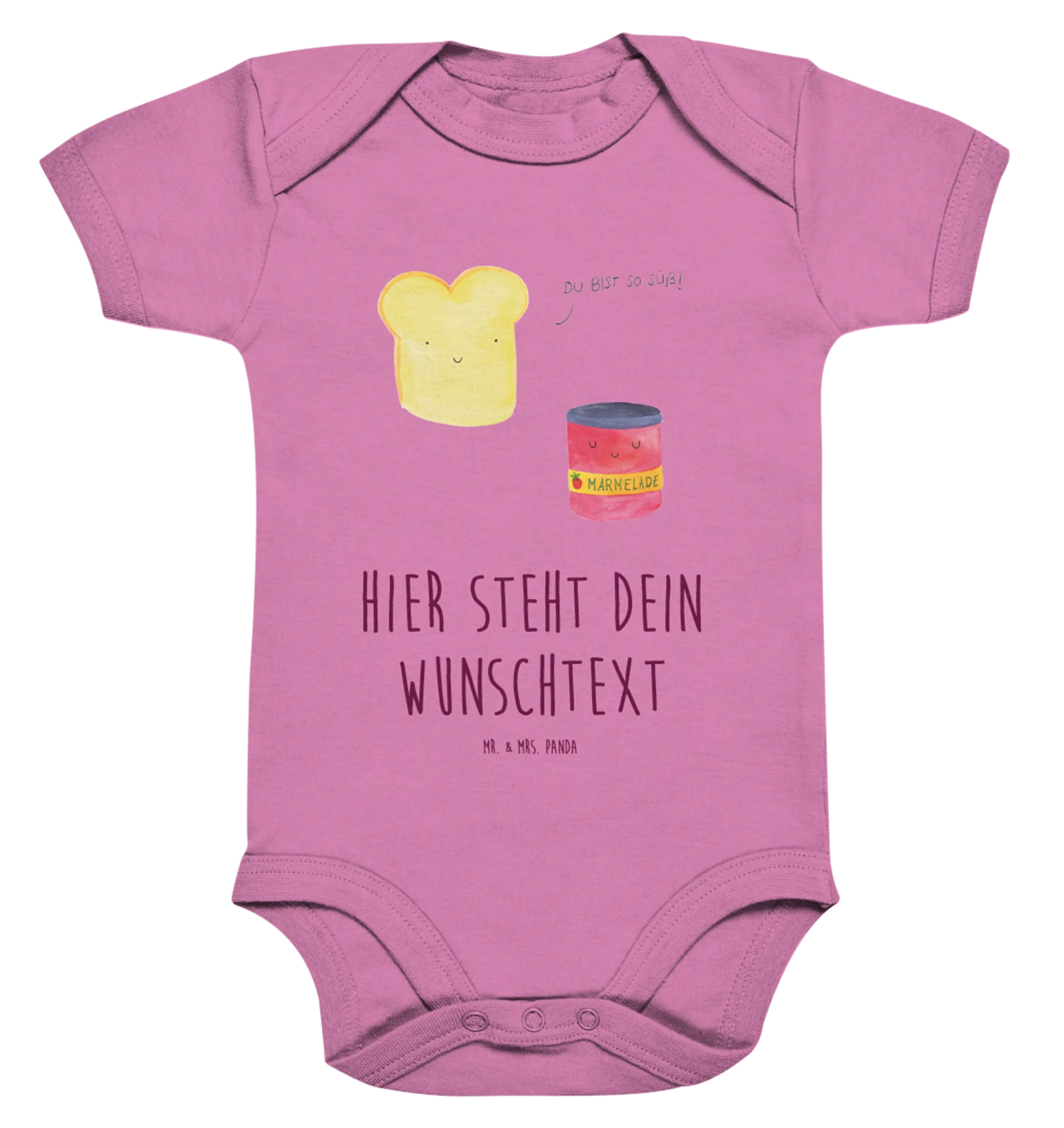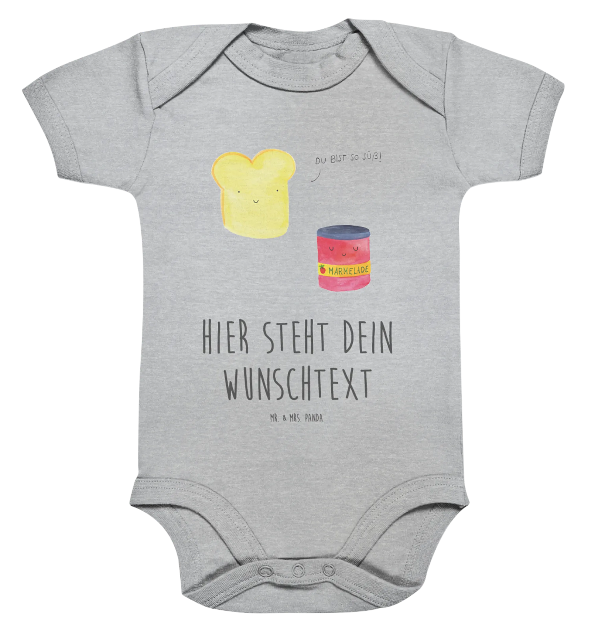 Der personalisierte Baby Body "Toast & Marmelade" aus der zauberhaften Small World Kollektion von Mr. & Mrs. Panda ist einfach das perfekte Geschenk für frisch gebackene Eltern und ihre kleinen Entdecker. Mit seinem liebevoll gestalteten Motiv – einem süßen Toast, der eine Marmelade umarmt – bringt dieser Body ein Lächeln in jedes Kinderzimmer und sorgt für gute Laune!