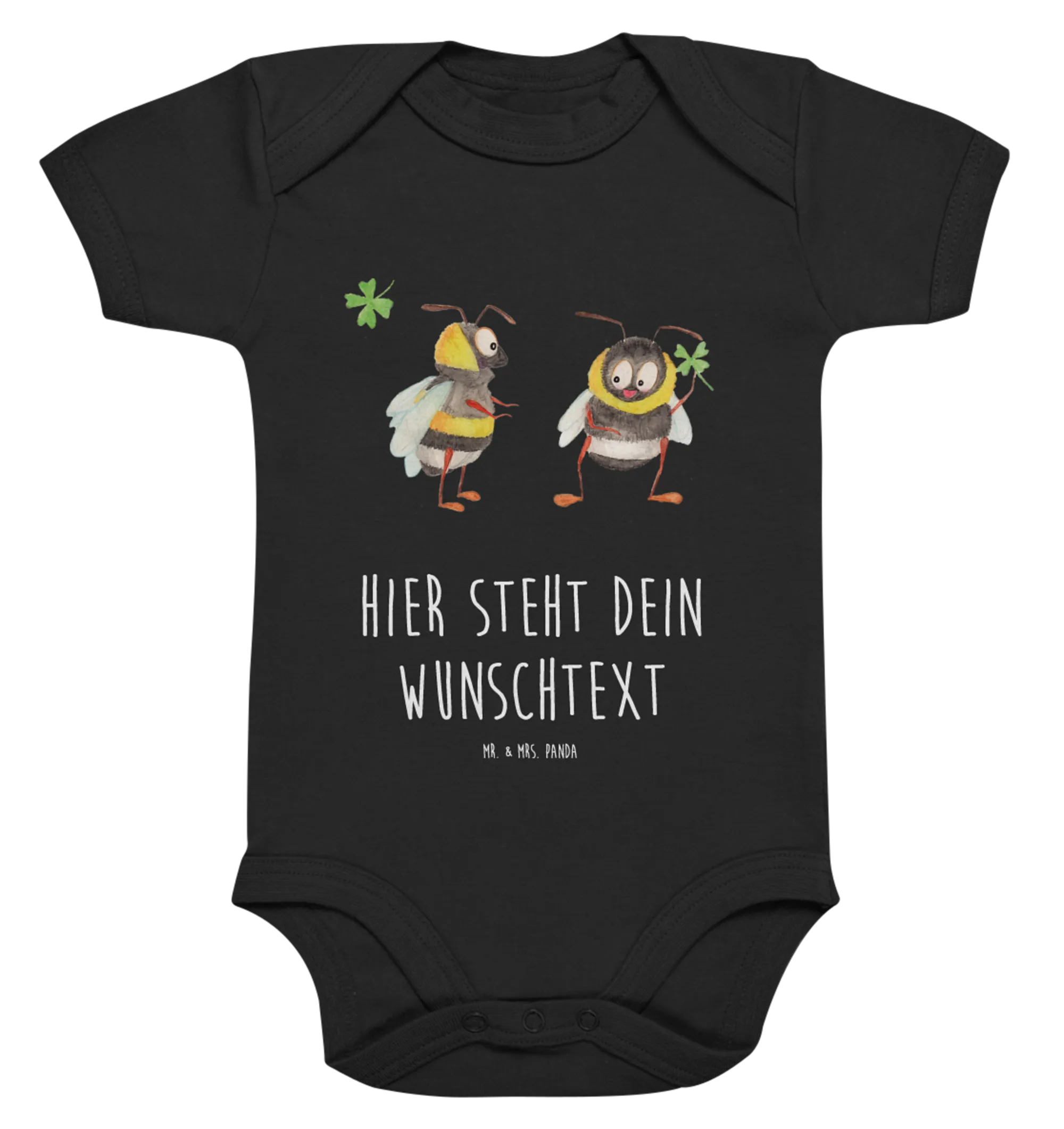 Der personalisierte Baby Body mit dem bezaubernden Motiv "Hummeln mit Kleeblatt" aus der tollen Small World Kollektion von Mr. & Mrs. Panda ist das perfekte Geschenk für frischgebackene Eltern und ihre kleinen Glücksbärchen! Dieser liebevoll gestaltete Strampler wird aus hochwertiger, biologischer Baumwolle gefertigt und sorgt für den ultimativen Tragekomfort. Die süßen Hummeln, die sich gegenüberstehen und ein Kleeblatt halten, symbolisieren die Freude und Verbundenheit in der Familie.