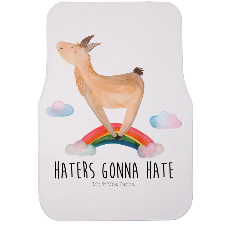 Mata samochodowa dla kierowcy lama tęcza - z napisem - biały