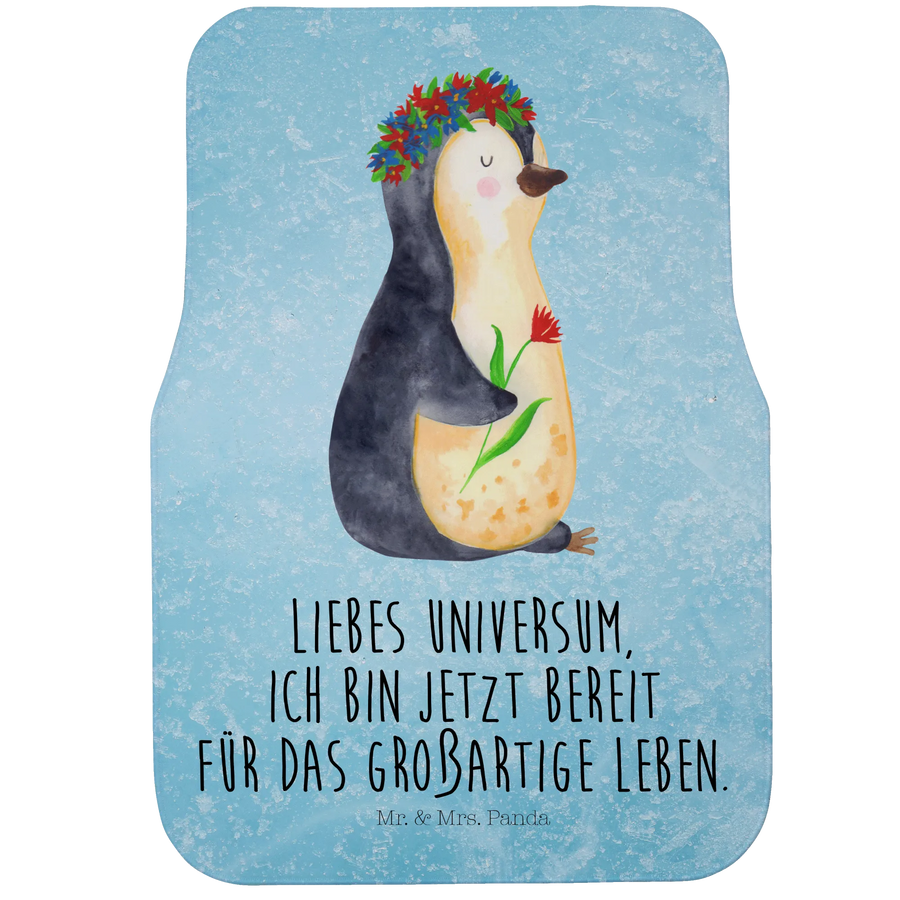 Mata samochodowa dla kierowcy pingwin kwiaty - z napisem - lodowoniebieski