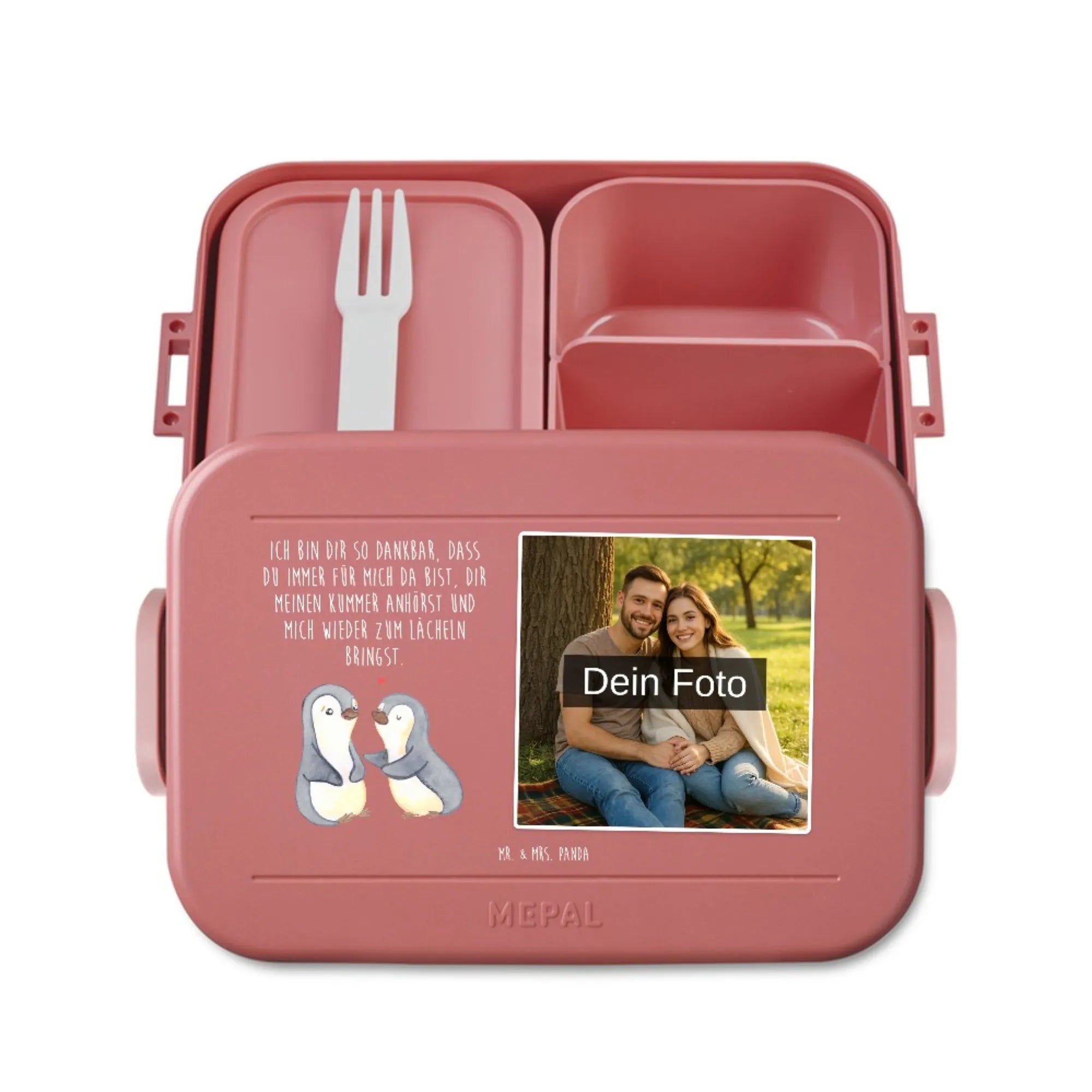 MEPAL Foto Bentobox Pinguine trösten - Rot Pastell