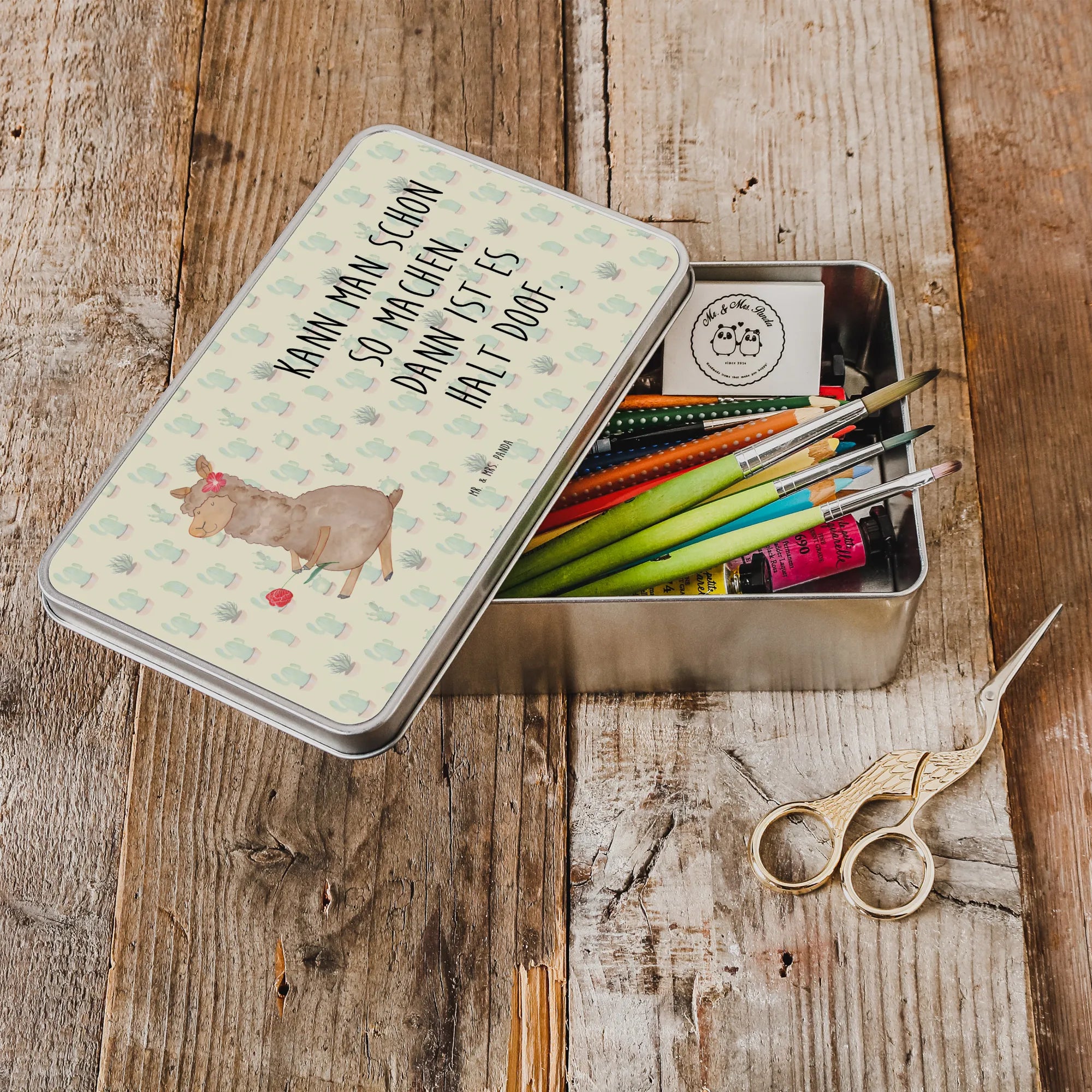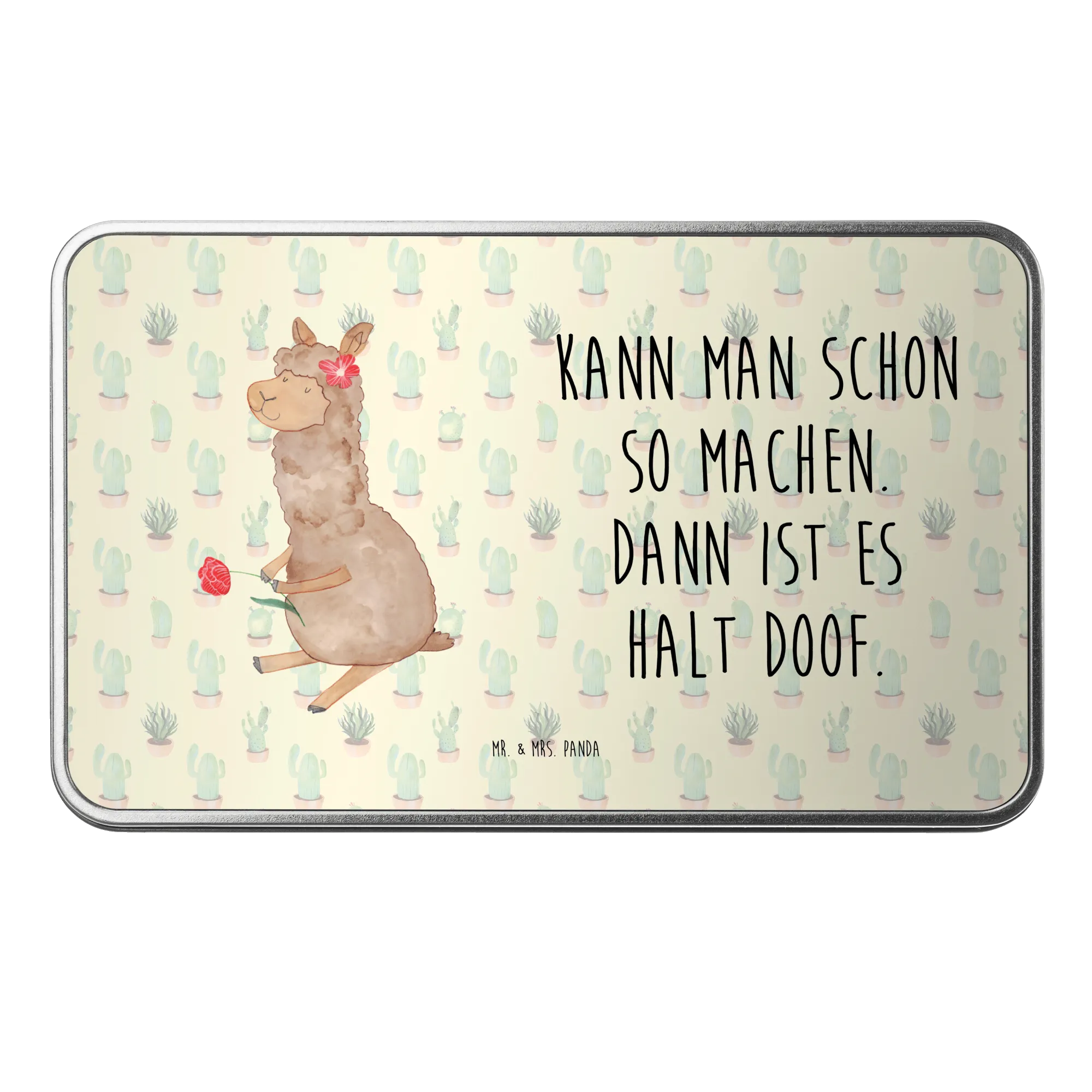Metalowa puszka alpaka kwiat - z napisem