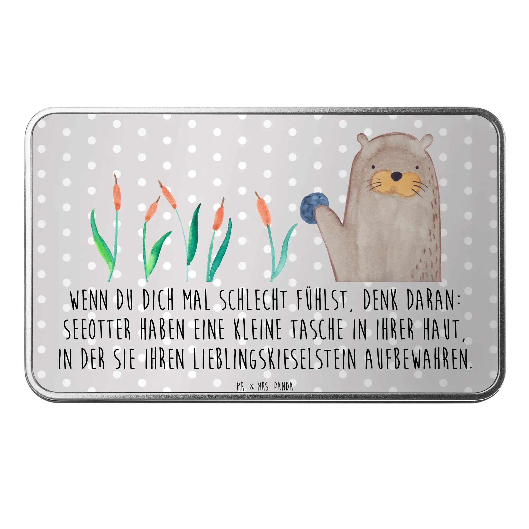Metalowa puszka wydra kamień - z napisem