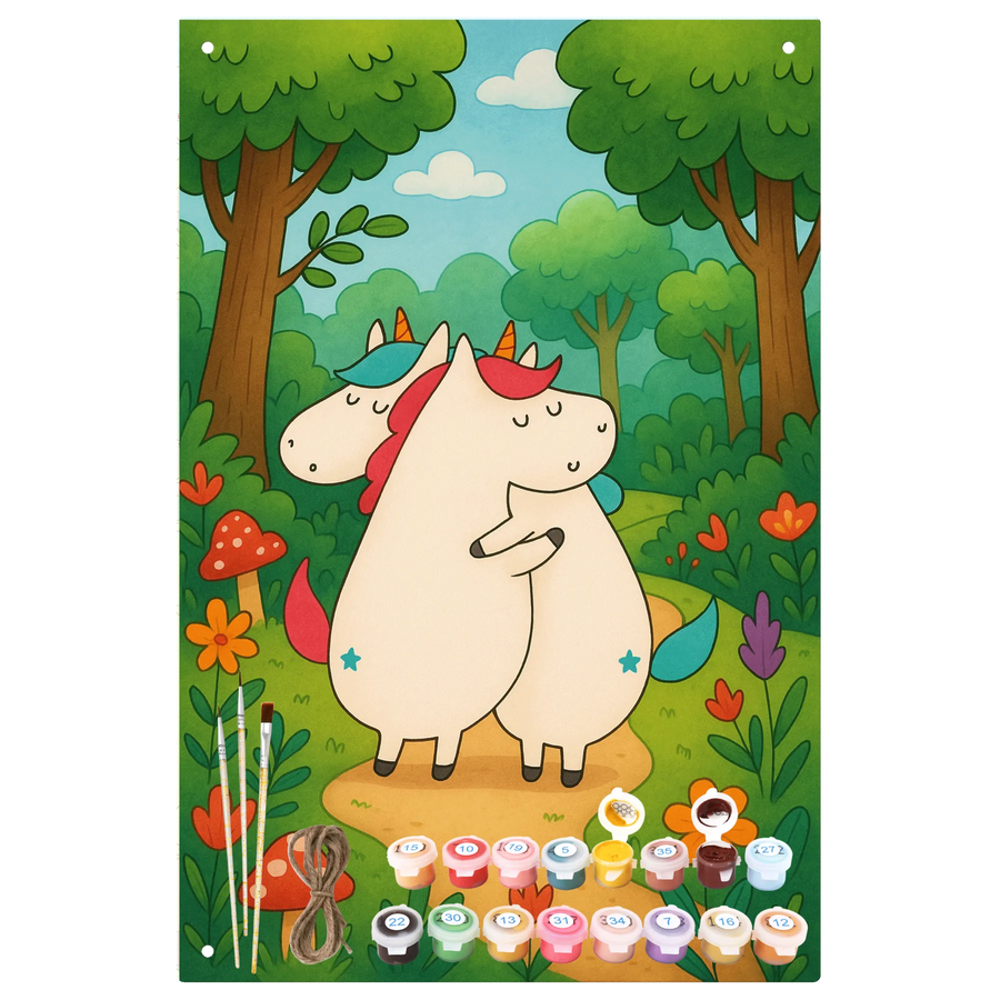 Metalowy szyld do malowania po numerach Jednorożce Przytulanie Design
