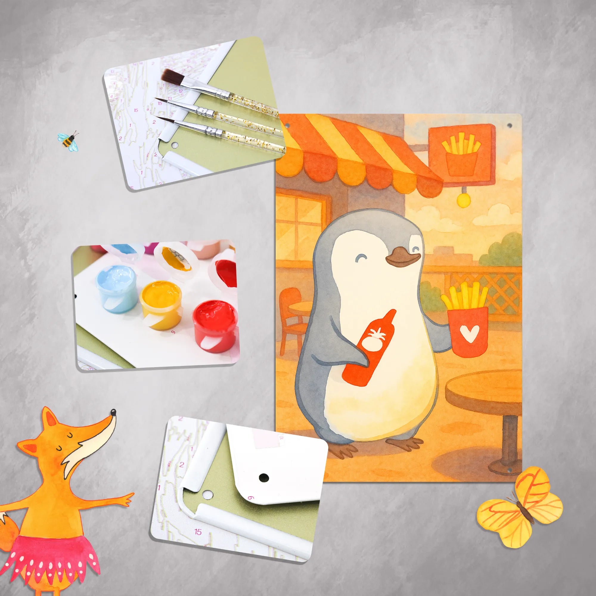 Metalowy szyld do malowania po numerach pingwin frytki Design